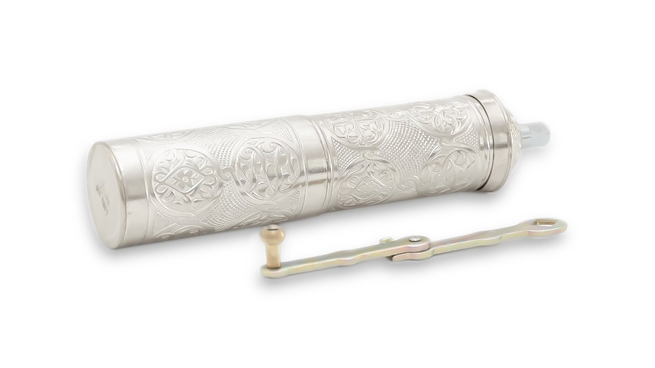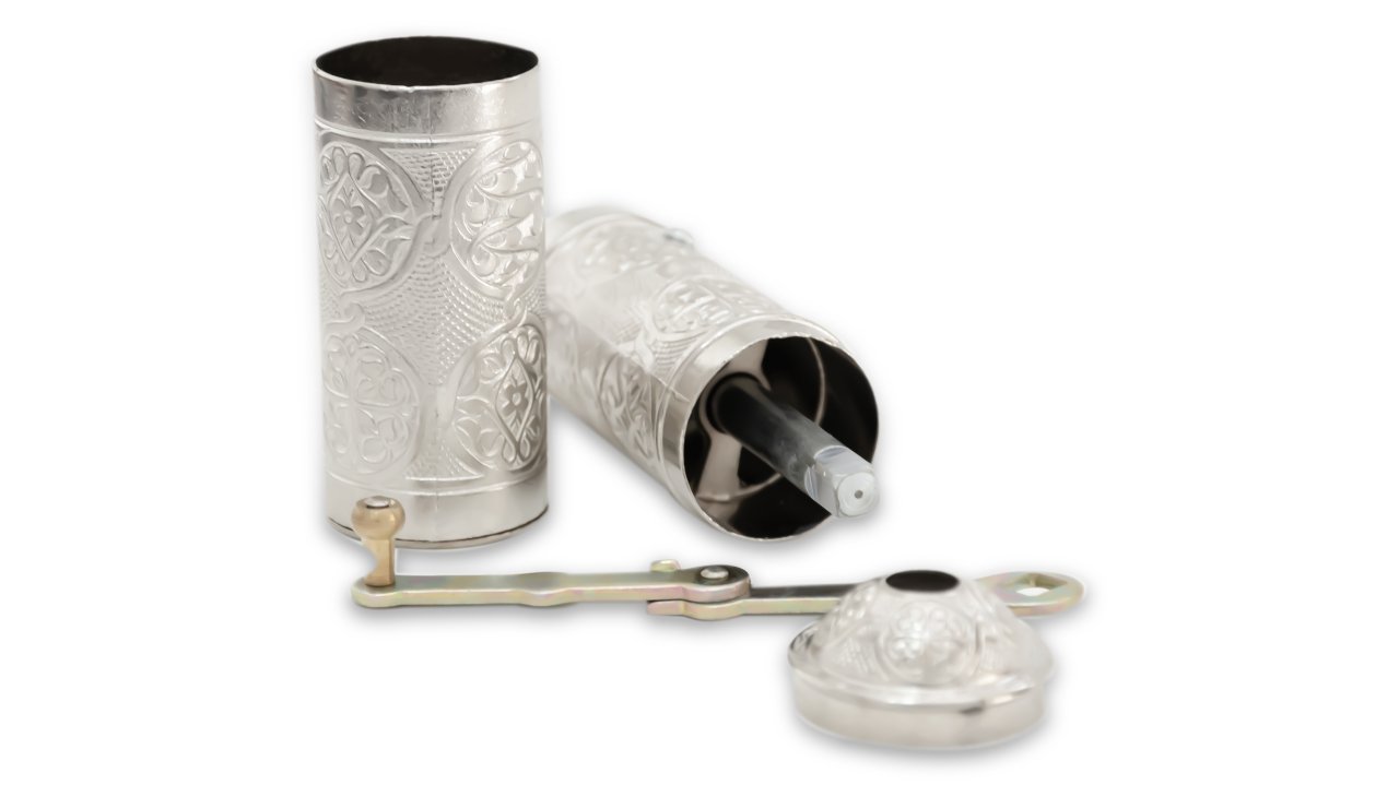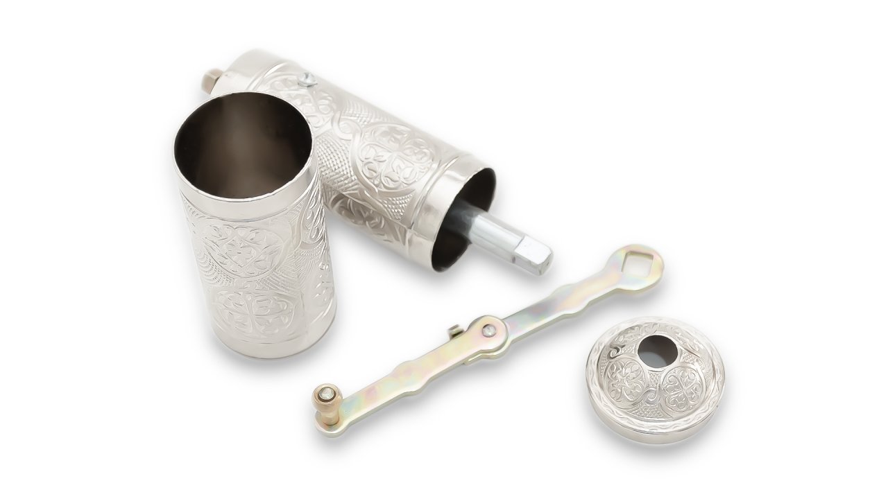 El yapımı ve bakır üzerine baskı metodu kullanılarak üretilmiş olan bakır kahve değirmeni, kendi kahvenizi yada çekirdekli karabiber ve benzeri baharatlarınızı memnun kalacağınız en ideal boyutlarda çekmenizi ve öğütebilmeniz için tasarlanmıştır. 21,5 cm boy ve 4,5 cm çap ölçüsüne sahip kahve değirmeni, çekirdek kahvenizi özellikle Türk kahvesine uygun şekilde çekmektedir. 40 gram öğütülmüş kahve kapasitesine sahip olan ürün, çekme vidası, öğütme haznesi, sap ve kapak parçalarından oluşmaktadır. Değirmeni ayırdığınızda çekme vidası ve öğütme haznesini görebilirsiniz. Geleneksel bir yöntemin vazgeçilmez bir kıymeti olan değirmeni, çekirdek kahvenin öğütülmüş forma geçmesi esnasındaki tüm keyfi size yaşatacağından emin olabilirsiniz. Bakır üretimi olmasından dolayı son derece dayanıklı olup uzun zaman keyifle ve aynı istikrar ile kullanabilirsiniz.