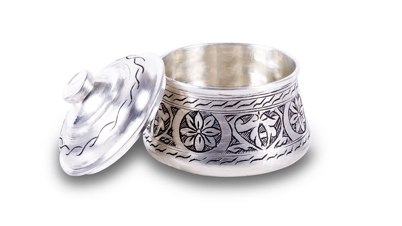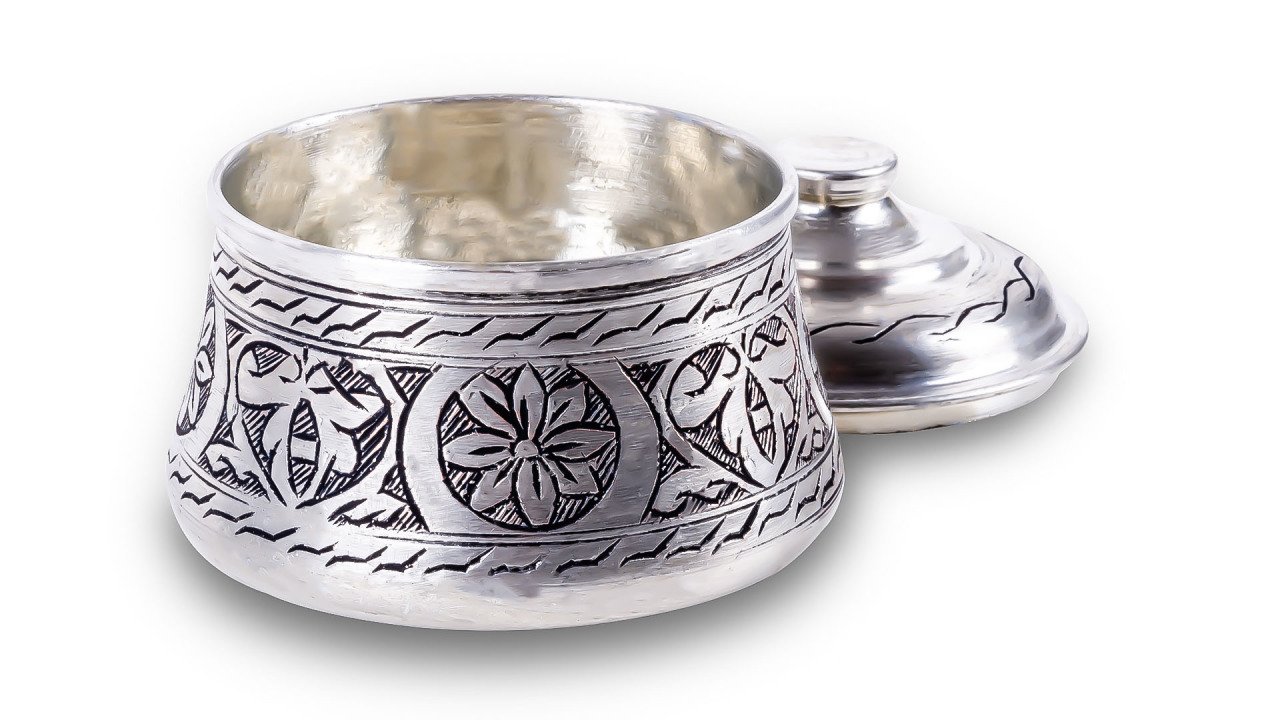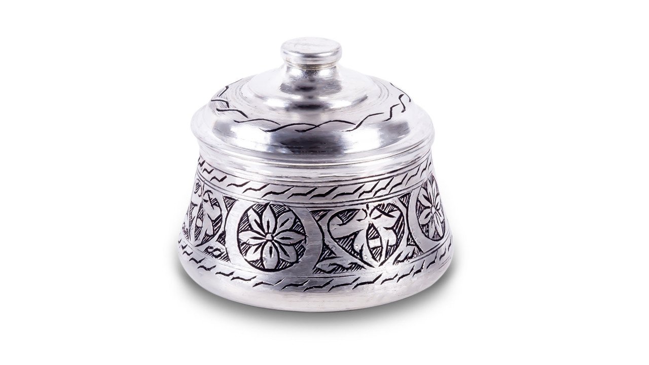 Yep yeni bakır şekerlik ve etkileyici ustalık ile oryantal kültürün esintilerini doyasıya yaşayın. Tüm ürünlerde olduğu üzere; şekerliğiniz üzerinden yıllar geçtikçe, tıpkı insanlar gibi yaşlandıkça daha iyi görünme ve daha fazla karakter kazanma eğilimindedirler. İki parçadan oluşan ürün, yatay alt yüzeyinin üstünde yukarıya doğru hafif kavislidir. Kapak parçası, alt kısmı üzerine uyumlu olarak gelen ince yiv izlerine sahiptir. Alt kısmın yüzeyi oryantal esintileri ile dolu motiflerle süslenmiştir.