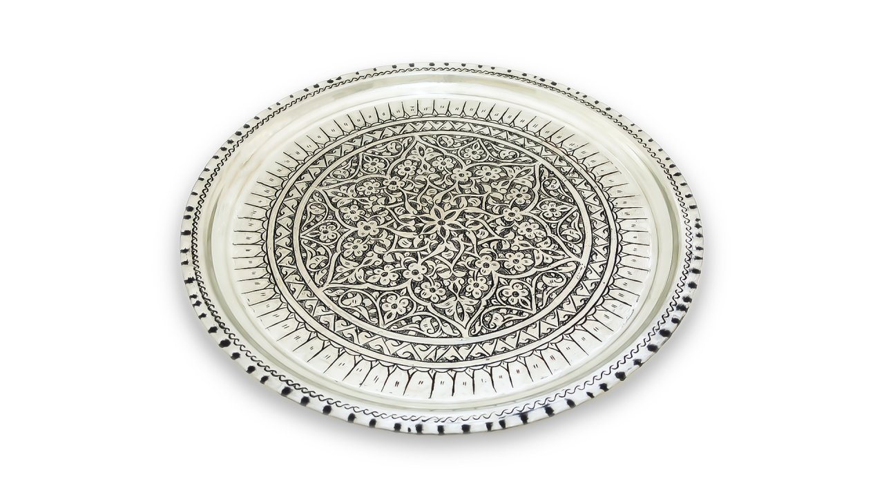 Çiçeklerden doğan bakır tepsi, konuklarınıza yapacağınız ikramlar için yada bir partide kokteyl ve ordöv sunmak için ideal olup, çok yönlüdür. Merkezinden, dış kenarlarına doğru tamamen el yapımı son derece detaylı işlemeler içermektedir. Klasik tarzın önemli örneklerinden olan bu bakır tepsi, ikramlarınız da yada dekoratif olarak kullanmanız durumunda bulunduğu her mekana sıcaklık ve stil katacaktır. Zarif tepsimiz ile bakırın sıcaklığını evinize getirin. Son derece yetenekli bakırcılar öncelikle ham bakıra şeklini verirler, daha sonra bakır dış cepheyi çekiçlerler. Üzerindeki her bir karmaşık desen tasarımı, sabır ve hassasiyetle meydana gelen el işçiliğidir. Geleneksel Türk esintisine sahip tepsi, benzersiz bir sanat eserine dönüşmüştür. El ile dövülmüş bu tasarım sayesinde, ışık yüzeyden yansıyarak bakırın ateşli güzelliğini yansıtır. Süslemeli, ince oyulmuş mobilyalar ile güçlü geometrik şekillere tüm zarifliği ile eşlik etmektedir. El sanatları için materyallerde gerçeği arıyorsanız, bakır tepsi üzerindeki etnik düzeni tam olarak tercih sebebiniz olacaktır. Masa veya duvar dekorundan yada servis tepsisine kadar bir çok farklı amaca hizmet edebilecek uzun ömürlü ve dayanıklı ürün, eviniz, ofisiniz yada vakit geçirdiğiniz tüm mekanlarınız için vazgeçilmez olacaktır. Çapı 38 cm olup, 35 cm lik seçeneği de mevcuttur. Sitemiz üzerinden 35 cm lik seçeneği de tercih edebilir yada her iki boyu kombinleyebilirsiniz.