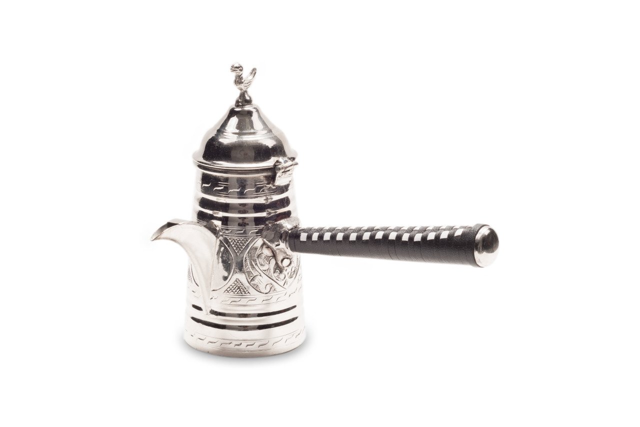 Mırra kahvesi yapmanın en geleneksel ve en şık yolu, El Yapımı Metalik Mırra Cezvesi ile sizlerle buluşuyor. Tamamen el yapımı ve el işlemesi ile donatılmış mırra cezvesi 4 farklı boy seçeneği ile satılmaktadır. Ayrıca sitemizde 4 lü set olarak da satın alabileceğiniz mırra cezvesi, mutfaklarınızda bambaşka bir deneyim yaşamanıza neden olacaktır. Evinizde yada iş yerinizde de dekoratif olarak da kullanabileceğiniz ürün içi kalaylı olarak satılmakta olup günlük kullanıma uygundur. Sap kısmı deri ile kaplanarak son derece ergonomik bir kullanım deneyimi sunmaktadır. Mııra cezve çapları sırası ile 6,5-7,5-8 ve 8,5 cm olup, boy sıralamaları ise 15,5-17,5-19 ve 23 cm dir. İlk iki boyun sap uzunluğu 12,5 cm iken diğer boyların sap uzunlukları ise 15,5 cm dir. El yapımı olmasından dolayı son derece dayanıklıdır.