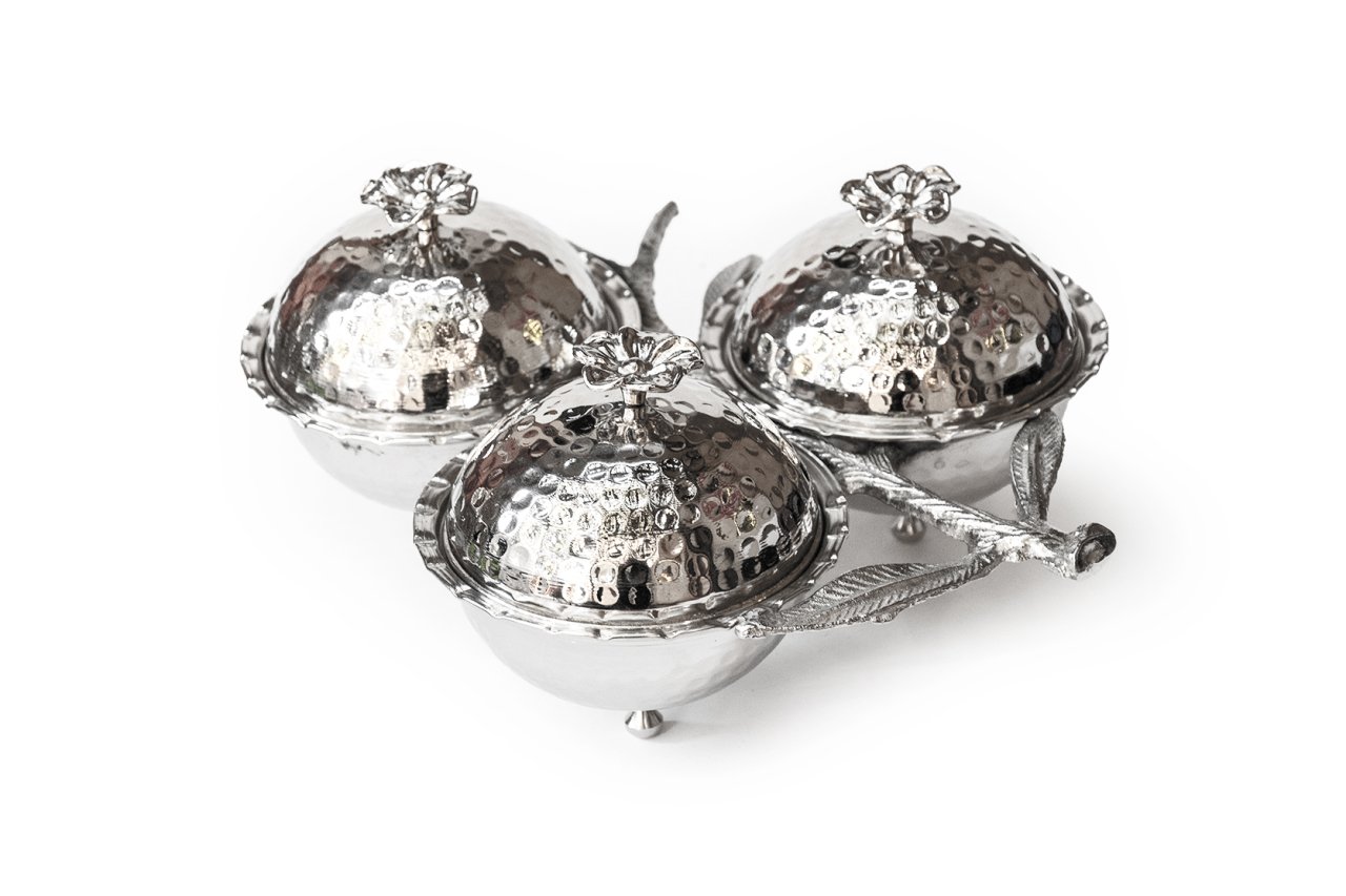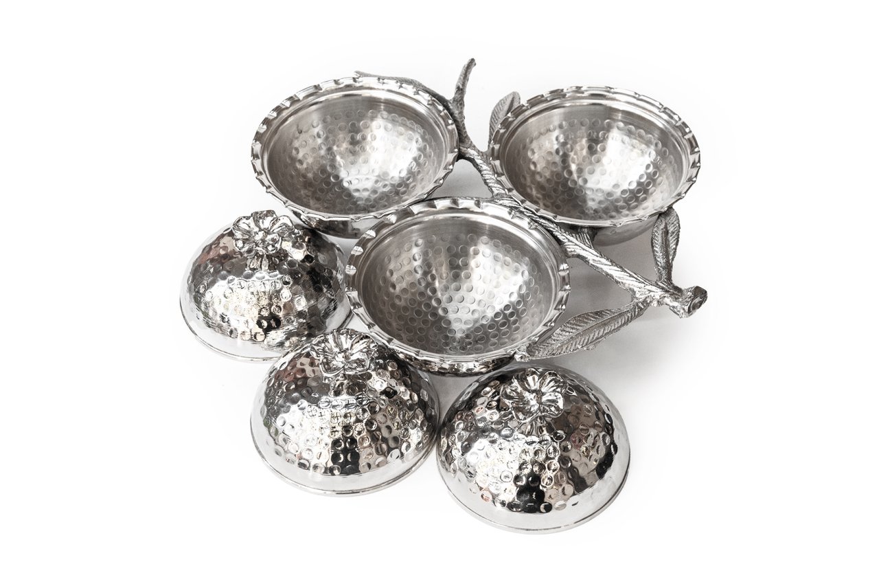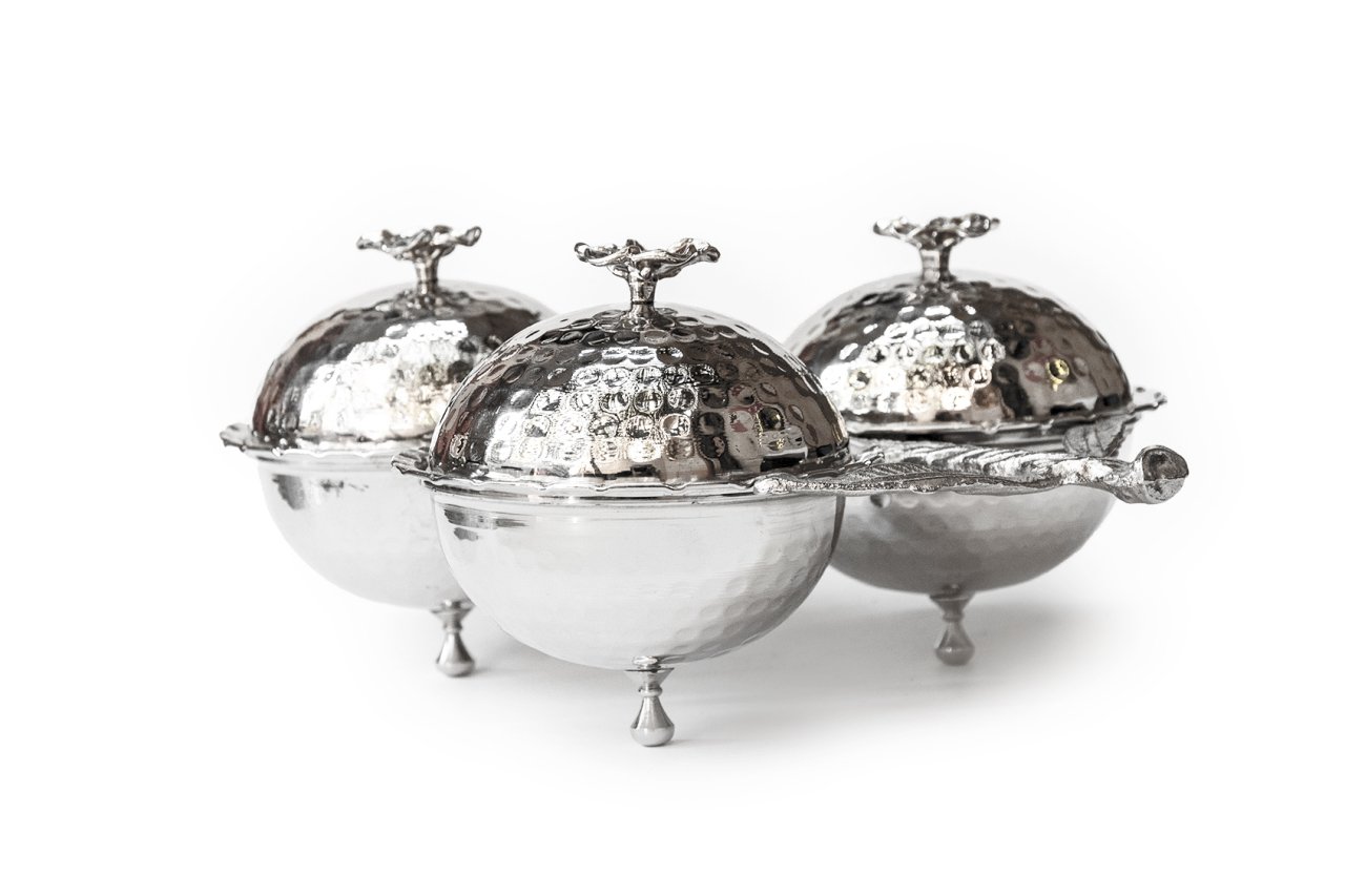 Handygoo Ağaç Dalı Dövme Bakır Çerezlik, sunumlarınız için tasarladığımız bakır çerezlik setimizdir. yepyeni bir tarza sahip olmak isteyenler için tasarladığımız ürünümüz, aynı zamanda şekerlik vb. sunumlarınız içinde kullanılabilir. Dövme bakır çerezlik ürünümüz kalın bakırdan üretilmiştir ve kendi imalatımızdır. Parlak görünümü için nikelajlanmış olup kararma yapmamaktadır. Bakır çerezlik ürünümüzün her bir çerezlik çapı 12 cm, yüksekliği ise 4 cm dir. Ürünümüzün toplam yüksekliği 13 cm olup boyu 27 cm, eni ise 25 cm ölçülerine sahiptir. Sunumlarınız için ideal boyutlarda ürettiğimiz ürünümüzde, çerezlik başlıkları döküm malzemeden üretilmiştir. Ürünümüz, Gaziantep'li bakır ustalarımız tarafından elde dövülmüş olup tamamen el yapımıdır. Sitemizde yer alan diğer tüm bakır ürünlerimiz ile kombin edilebilir. Evinize ve iş yerlerinize bambaşka bir hava getirecek olan ürünümüzü aynı zamanda sevdiklerinize hediye de edebilirsiniz. Tüm kredi karları ile güvenle alışveriş yapabileceğiniz sitemizde tüm ürün kategorilerini incelemenizi tavsiye ederiz.