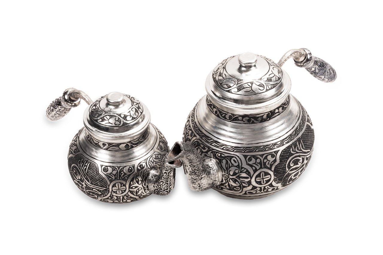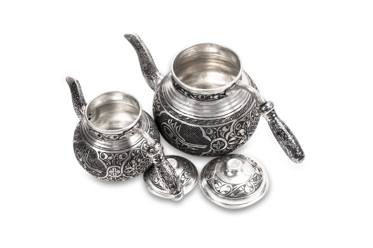 Ortak bir çay demleme yöntemi bulunmamaktadır ancak bilindiği üzere bakır ürünlerde demlenen, servis edilen her içeceğin lezzetinin arttığı bir gerçektir. Çayınızı demlerken, bu ürün, şık ve otantik görüntüsü ile yine fark yaratmanızı sağlayacaktır. Klasik ürün modelinde yani iki ana kısımdan oluşmaktadır. Her iki kısım üzerinde ham bakır üzerine ustaca ve sabırla işlenmiş, ağır el işlemesi ile bezenmiş motif ve tuğra yer almaktadır. Su ve demlik haznelerinin uçlarındaki işlemeler ise daha da detaylandırılmış ancak bu detaylar çaydanlık üzerindeki ana desenler ile son derece uyumlu hale getirilmiştir. Her iki parçanın da birbirinden bağımsız kapakları yer almaktadır. Eskitme olarak tasarlanmış çaydanlığın kulplarıda yine eskitme olarak tasarlanmıştır. Bakır çaydanlık, evinize, ofisinize yada bulunduğunuz herhangi bir mekana zerafet ve şıklık getirecektir. Kendiniz yada hediye ettiğiniz sevdikleriniz çaylarını iki kat kayif ile yudumlayacaklardır. Çaydanlık su haznesi 1,8 litre su almaktadır. Üst demlik ise 0,8 lt su almaktadır.