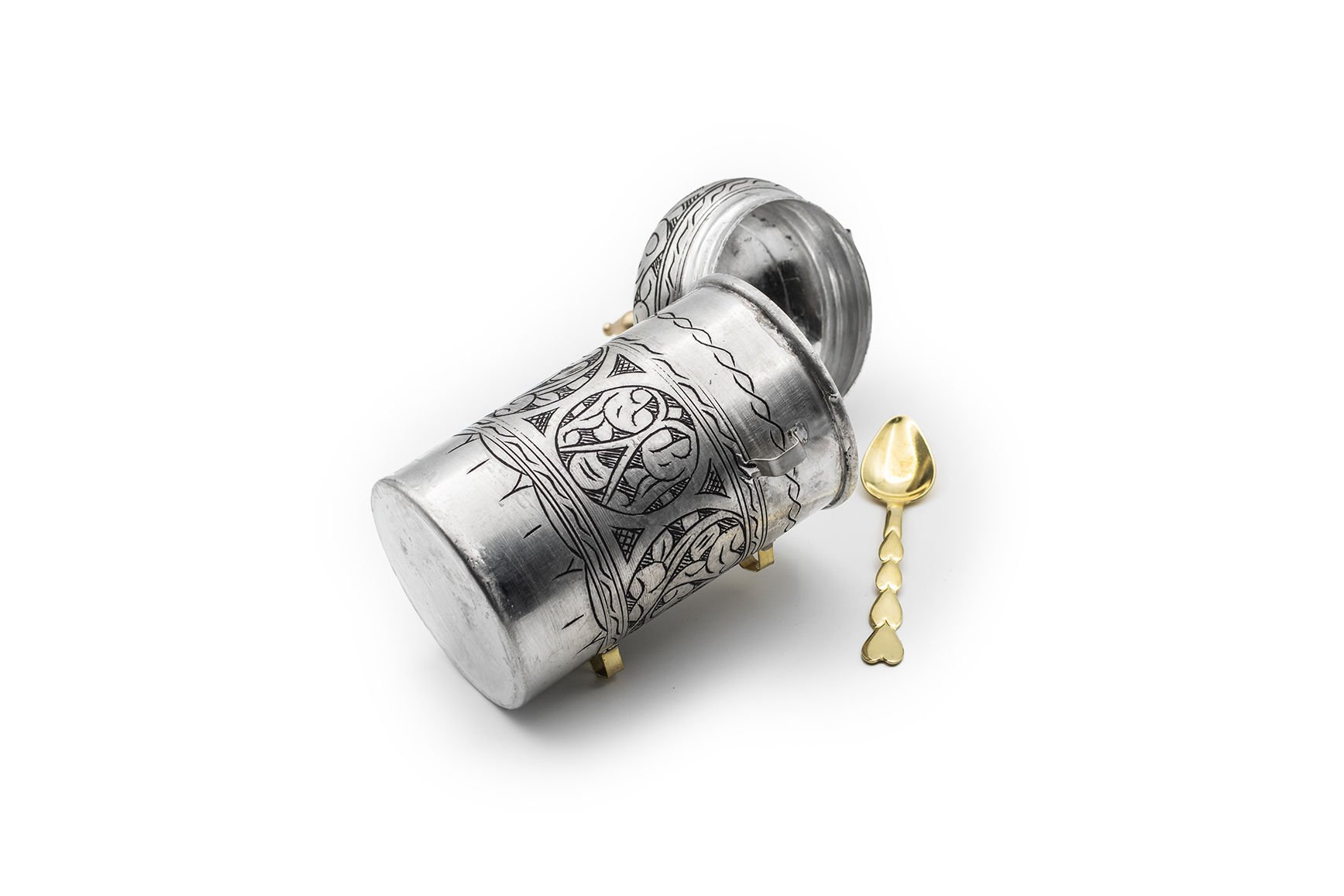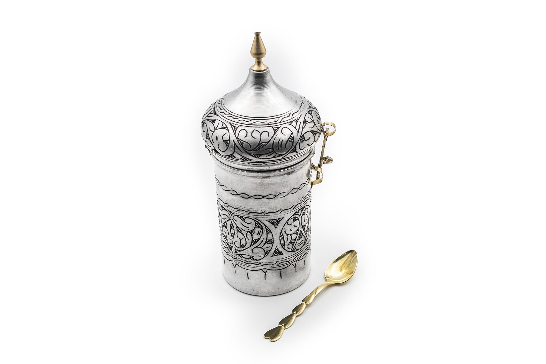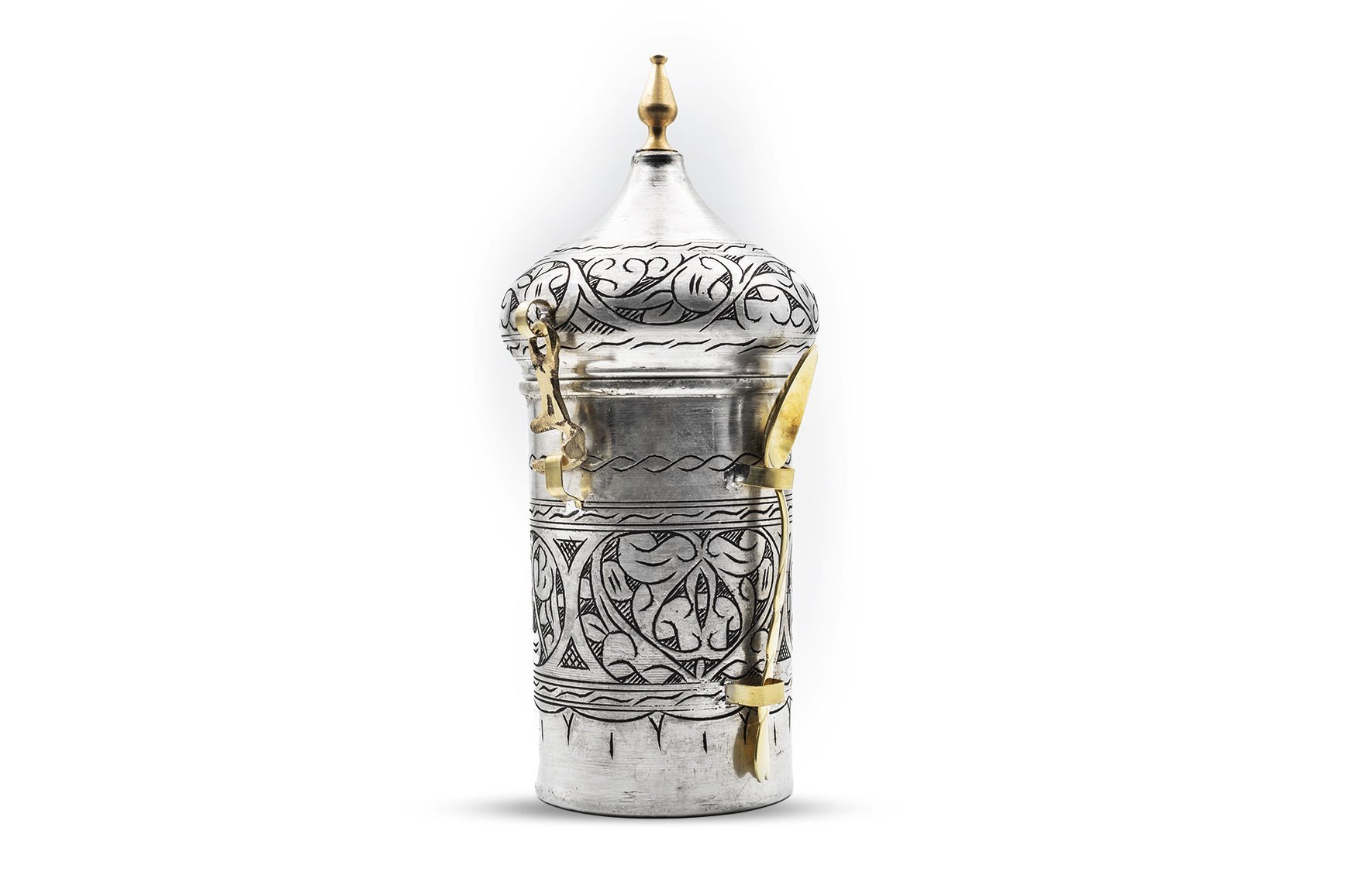 Handygoo Alaaddin Bakır Kahvelik, mutfak ve iş yerlerinizde günlük olarak kullanabileceğiniz yeni modelimizdir. Ürünümüz %100 kalın bakır ve el nakışıdır. Menteşe ve kaşık aparatları döküm değil pirinçtir. 525 gr ağırlığındadır. 25 cm toplam yüksekliğe sahiptir. Hazne çapı 9 cm, hazne yüksekliği ise 14 cm dir. Pirinç kaşığı 14 cm boyunda olup, ürün üzerinde sabitleyeceğiniz aparatı mevcuttur. Görenleri kendisine hayran bırakacak olan bakır kahvelik modelimiz kendi imalatımızdır. Sitemizde bakır kahvelik ürünümüzün eskitme, nikelajlı ve kırmızı orjinal bakır rengi çeşitlerini bulabilirsiniz.