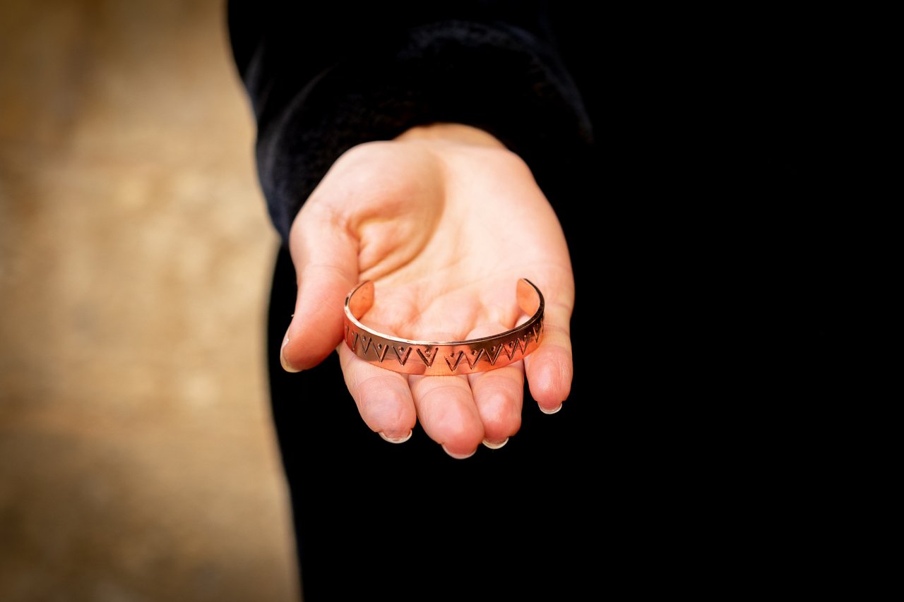 Bakır bilezik modelimiz, 1 cm en ve 0,2 cm kalınlığa sahiptir. %100 orjinal bakırdır ve kalın bakırdan üretilmiştir. Enerji akışının dengeli olmasını sağlamak için, iki ucu açık olarak tasarlanmıştır.