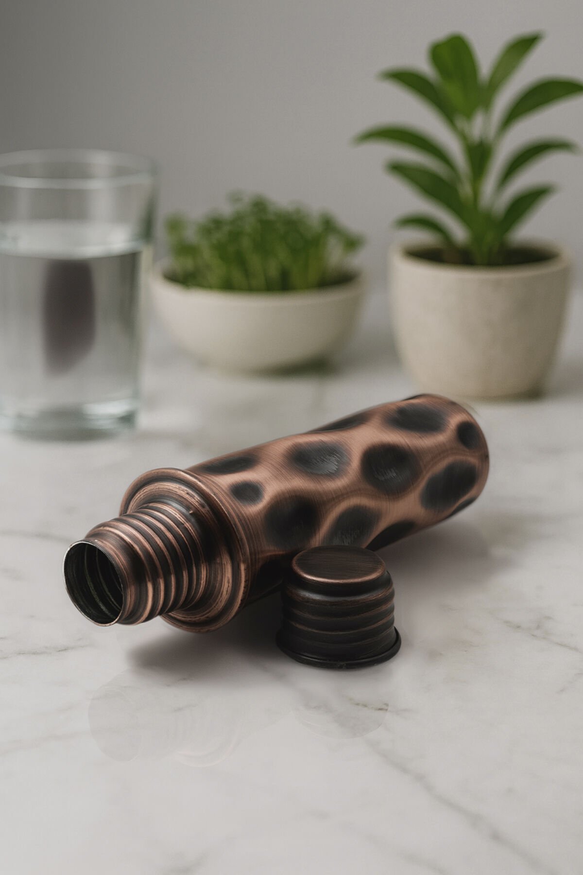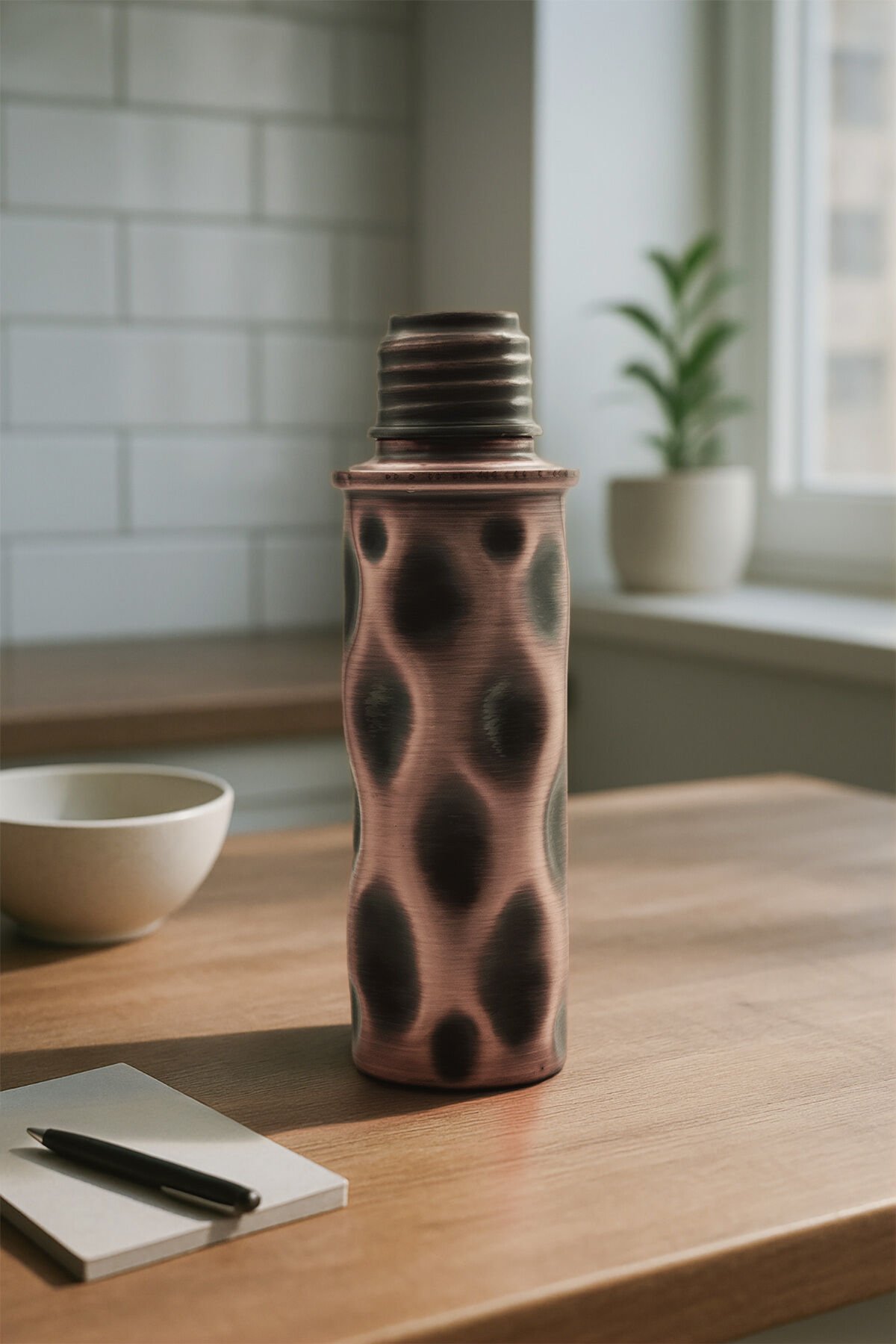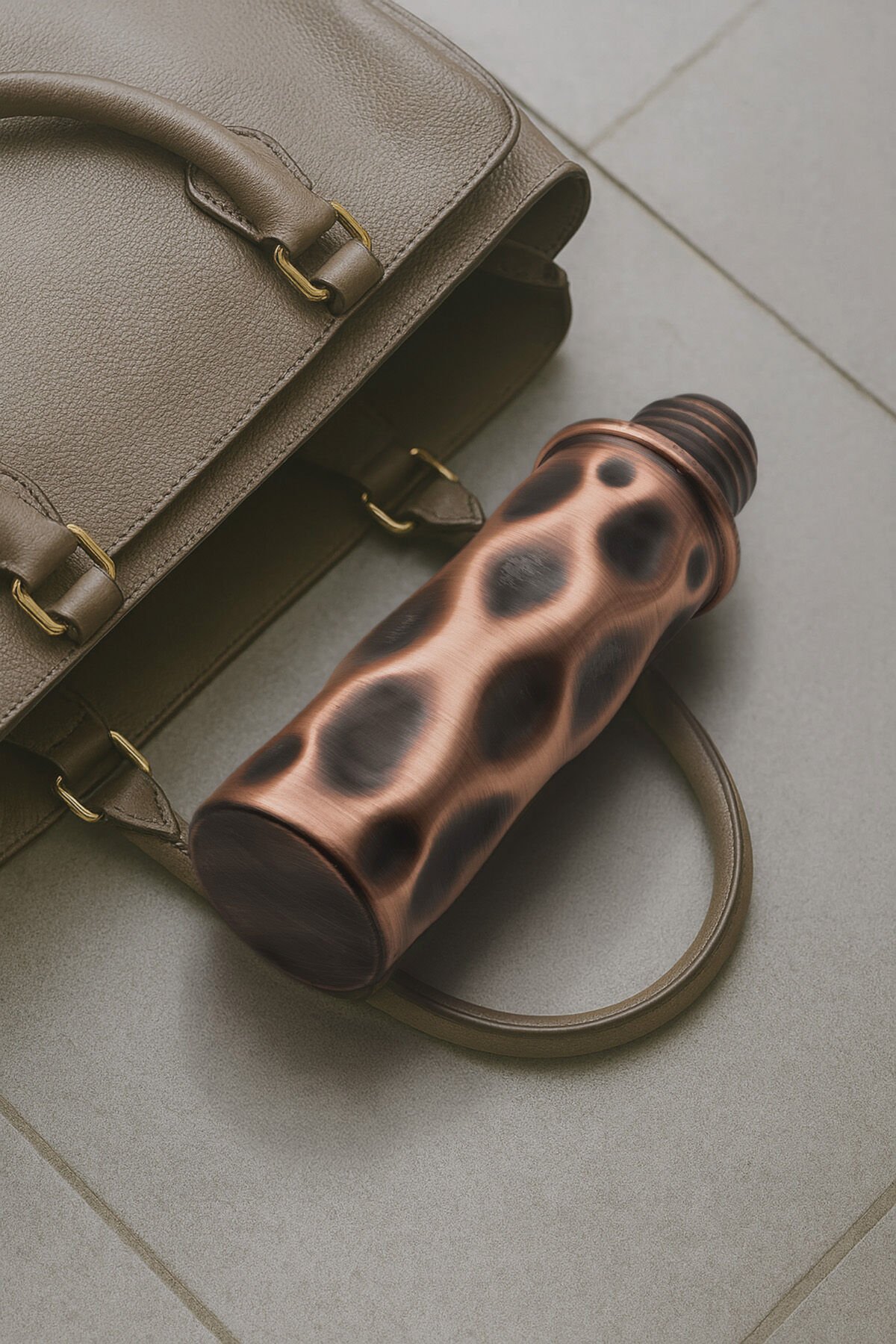 Handygoo AURA Bakır Su Matarası, %100 saf bakırdan üretilmiş, iç yüzeyi kalay kaplama ile güçlendirilmiş özel bir su matarasıdır.