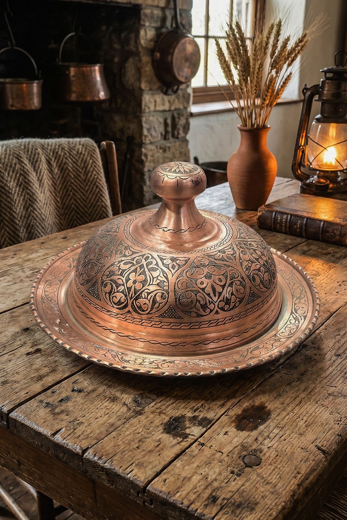 Kapaklı bakır tabak tasarımı sadece estetik değil, aynı zamanda son derece işlevseldir. Bakırın mükemmel ısı iletkenliği ve kapağı sayesinde, kebaplardan pilavlara, güveç yemeklerinden özel spesiyallere kadar tüm sıcak servisleriniz uzun süre ısısını korur. İçi gıda temasına uygun şekilde kalaylanmış olup, sağlıklı bir kullanım sunar.