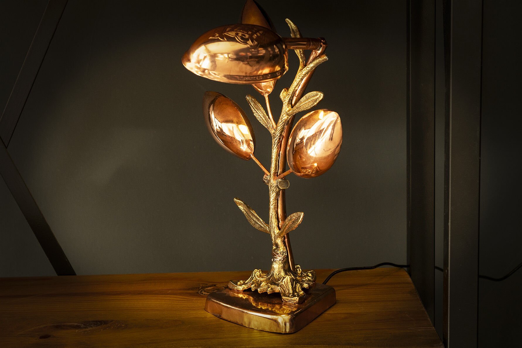 Handygoo Bakır Masa Lambası, Gaziantep in simgelerinden Antep Fıstığından esinlenerek üretimini gerçekleştirdiğimiz yeni ürünümüzdür. Fıstıklar ve kaide %100 kalın bakırdır. Kaide %100 pirinç malzemedir. Bakır masa lambası modelimiz son derece dekoratif olup kendinizi özel hissettirecektir. Hem gece lambası hem de çalışma masası lambası olarak kullanılabilir. Aydınlatma led ile sağlanmaktadır. 34 cm yüksekliğindedir. Üzerindeki fıstıkların her biri 14 cm dir. Orjinal bakır rengindedir. Fıstık üzerinde yer alan nakış, %100 el işlemesidir. Ürünümüz, evinizde , iş yerinizde bambaşka bir hava estirecektir. Ücretsiz kargo fırsatından da yararlanabileceğiniz ürünümüz ayrıca hediyelik özelliği de taşımaktadır.