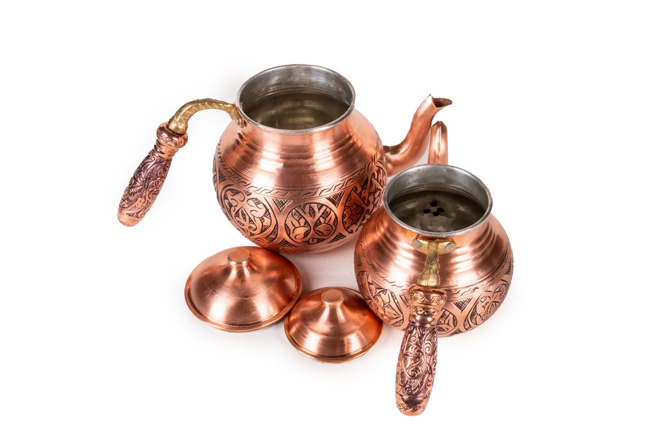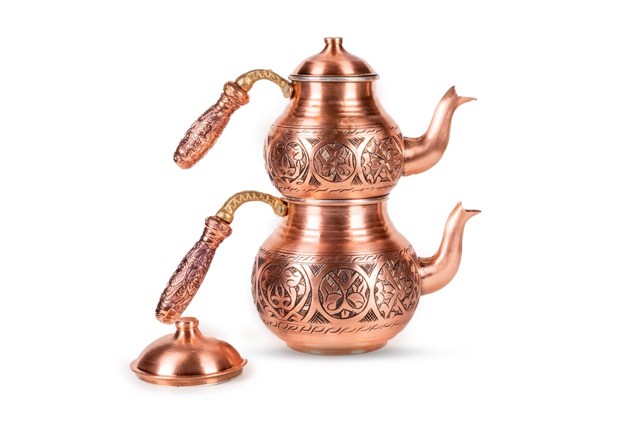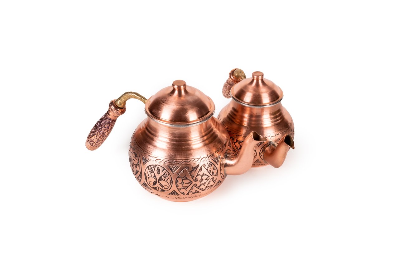 Handygoo Battal Tombul El Yapımı Kırmızı Eskitme Bakır Çaydanlık, üzeri el işçiliği ile donatılmıştır. Tamamen el yapımı eskitme bakır çaydanlık, 2,8 lt lik alt demlik ve 1,8 lt lik üst demlik hacmi ile son derece ideal boyutlardadır. Kalın bakırdan üretilmiştir ve ağırlığı 1,7 kg (+50)(-50) dır. Geniş aileler için son derece kullanışlıdır. Kendi imalatımız olup içi tamamen kalaylanmıştır. Sitemizden çaydanlık modelimize uygun balkon sefası yada çaydanlık ısıtıcı modellerimizi ayrı olarak da satın almayı tercih edebilirsiniz. Ürün, hem dekoratif, hem ergonomik hem de şık görüntüsü ile kullanmaktan zevk alacağınız aynı zamanda sevdiklerinize de mutlaka hediye etmek isteyeceğiniz bir üründür. Ürünümüze ücretsiz kargo fırsatı ile sahip olabilirsiniz.