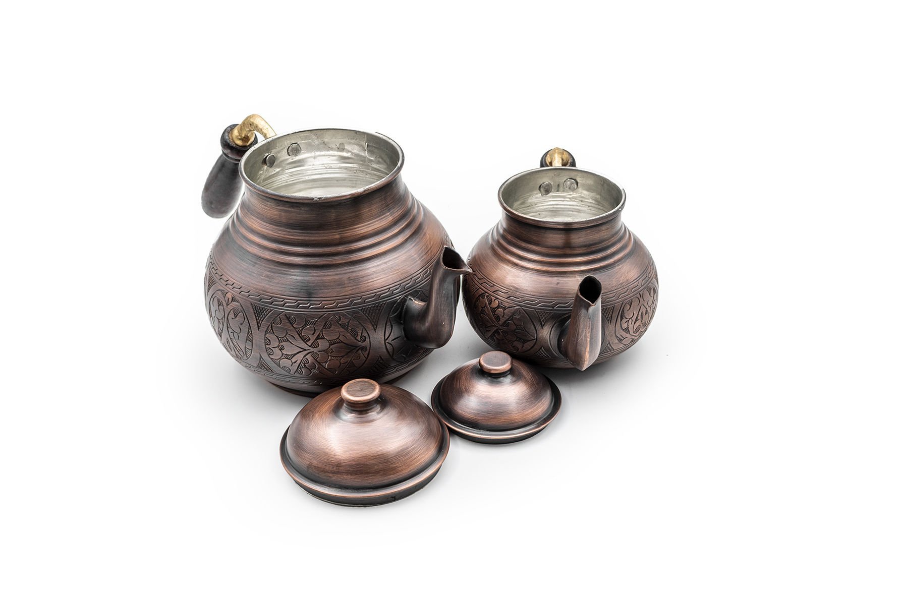 Handygoo Beholder Bakır Çaydanlık, dövme bakır sanatının tüm güzelliğini üzerinde taşımaktadır. 1,8 lt lik alt demlik ve 0,8 lt lik üst demlik hacmi ile son derece ideal boyutlardadır. Kalın bakırdan üretilmiştir ve ağırlığı 1 kg (+50)(-50) dır. 4-6 kişi için son derece kullanışlıdır. Ürünün içi tamamen kalaylanmış olup ürünün kulpları ise ahşap malzemedir.Hem dekoratif, hem ergonomik hem de şık görüntüsü ile kullanmaktan zevk alacağınız aynı zamanda sevdiklerinize de mutlaka hediye etmek isteyeceğiniz bir üründür. Sitemizde nikelajlı ve kırmızı bakır modeli olmak üzere 2 farklı seçeneği daha olan bakır çaydanlık ürününe ücretsiz kargo fırsatı ile sahip olabilirsiniz.