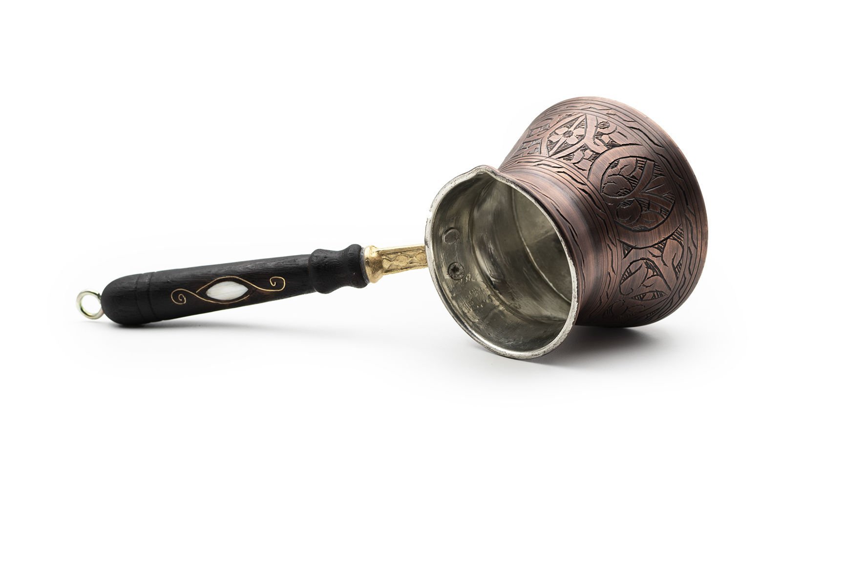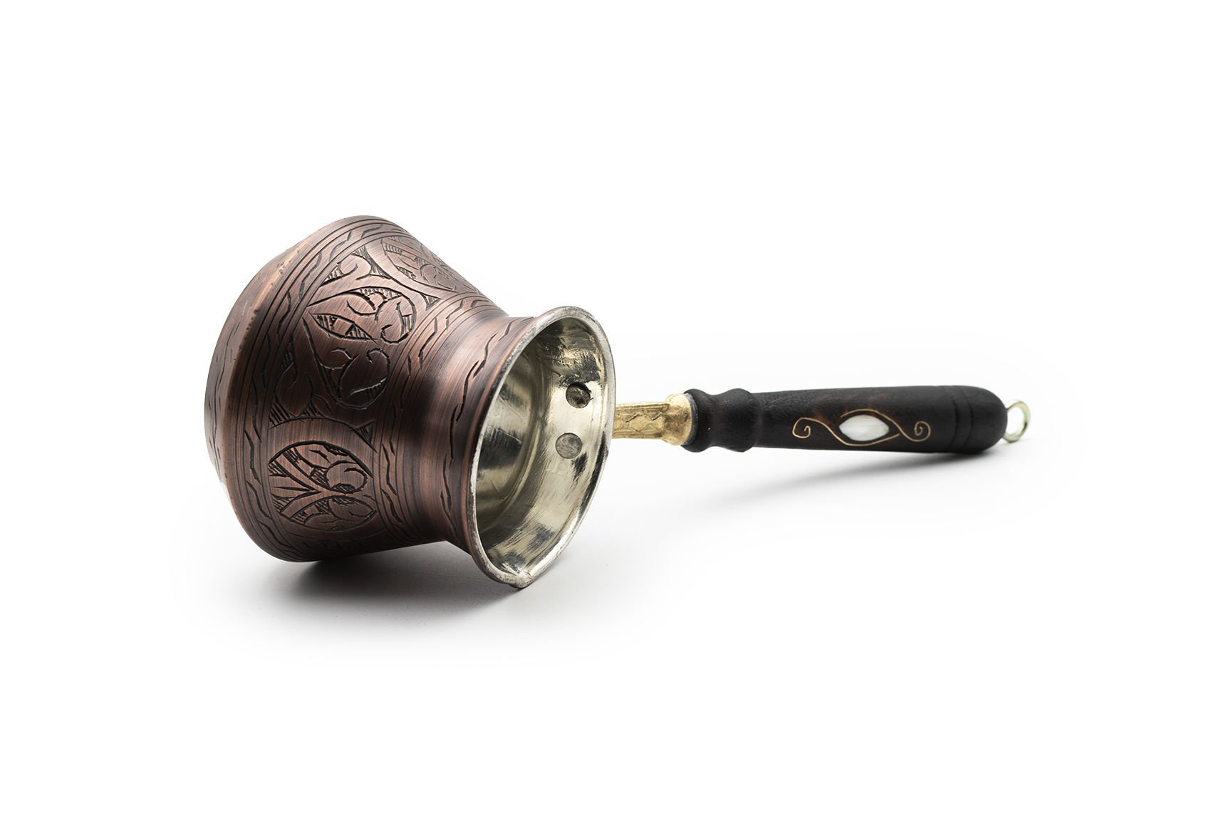 Handygoo Black Pot Bakır Cezve, Türk kahvesi yapmak, kendiniz, aileniz, komşularınız ve dostlarınız ile birlikte keyif ile içmeniz için tasarlanmıştır. Türk Kahvesi en sevilen sıcak içeceklerden birisidir. Yalnızca lezzet için değil, sunum şeklinden, sohbetlerine kadar pek çok sebepten dolayı bir çok insanın hayatında önemli bir yeri bulunmaktadır. Ancak, kullandığınız cezvenin özenle seçilmesi gerekmektedir. Son yıllarda teknolojinin gelişmesi ile birlikte elektrikli olanlar ön plana çıksa da, bakır cezvede pişirilenin lezzetine doyum olmadığını düşünen kişilerin sayısı son derece fazladır. Bilindiği üzere bu ürünler uygun şekilde kullanılır ise çok uzun süre kullanılabilirler. Ayrıca bakır cezvenizi, sitemizde yer alan diğer kahve setleri ve ürünler ile de kombinleyebilirsiniz. Bu setler içerisindeki fincanlar ile kahvenizi keyif içerisinde yudumlarken, ikramlıklar ile sevdiklerinizi lokum vb. ile mutlu edebilirsiniz. Temelde iki parça olarak düşünebileceğiniz ürünün sap kısmı ısıya dayanıklı ve ahşap olup özenle hazırlanmış sedef desenler içermektedir. Kullanılan sedefler gerçek sedeftir. Hazne kısmı ise bakırcı ustalarının marifetli ellerinden çıkan ve bakır üzerine işlenmiş desenlere sahiptir. Haznenin içi kalaylanmış olup güven içerisinde pişirmenize olanak sağlamaktadır. Dış kısım ise, oksitlendirilerek özelbir renk tasarlanmıştır. Kaliteli ve zarif dekoratif ürünleri tercih edenler kullanıcılar içinde tercih sebebidir. Ürünün, sitemizde 2-4-6 ve 12 kişilik seçenekleri bulunmaktadır.