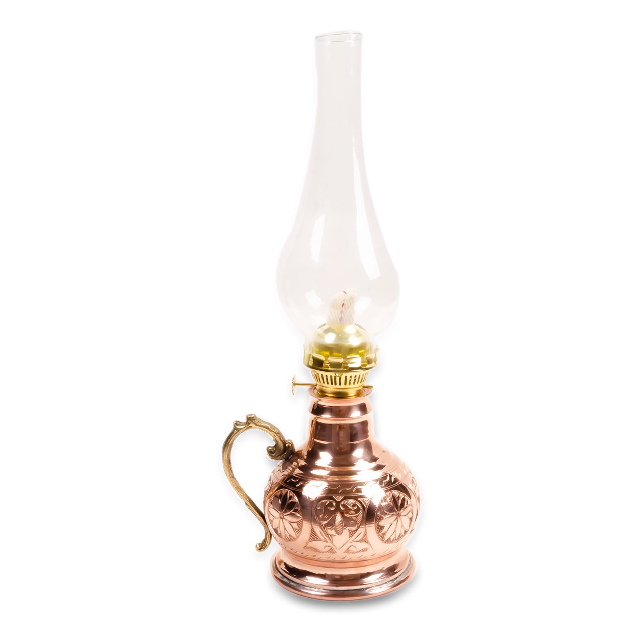 Handygoo Boru Camlı El Yapımı Bakır Gaz Lambası, tamamen el yapımı olup üzerindeki işlemeler Gaziantep bakır işleme ustaları tarafından işlenmiştir. Bakır gaz lambası boyu 19 cm olup, cam yüksekliği 22 cm ve ürün taban çapı 10 cm dir. Günlük kullanıma, ev ve iş yerlerinizin dekorasyonuna uygun olarak tasarlanmış ve üretilmiştir. Sitemizde ürünün nikelajlı, kırmızı nikelajlı, eskitme ve sizler için özel olarak tasarlanmış olan bronz renk seçenekleri ile satışa sunulmuş olup hediye olarak da düşünebileceğiniz bir üründür.