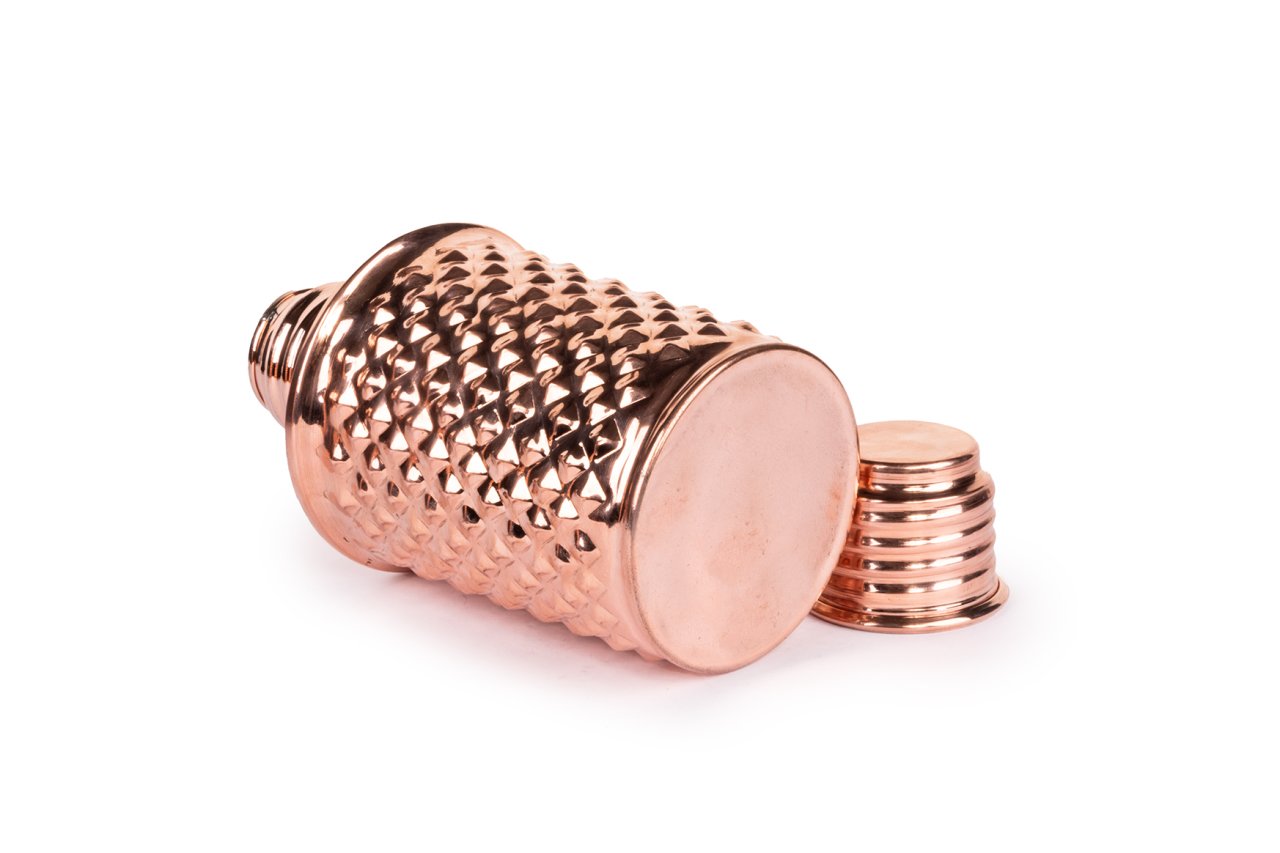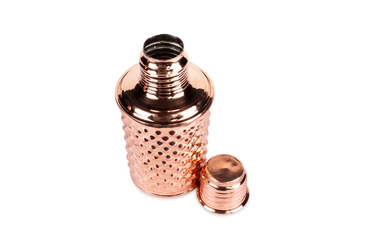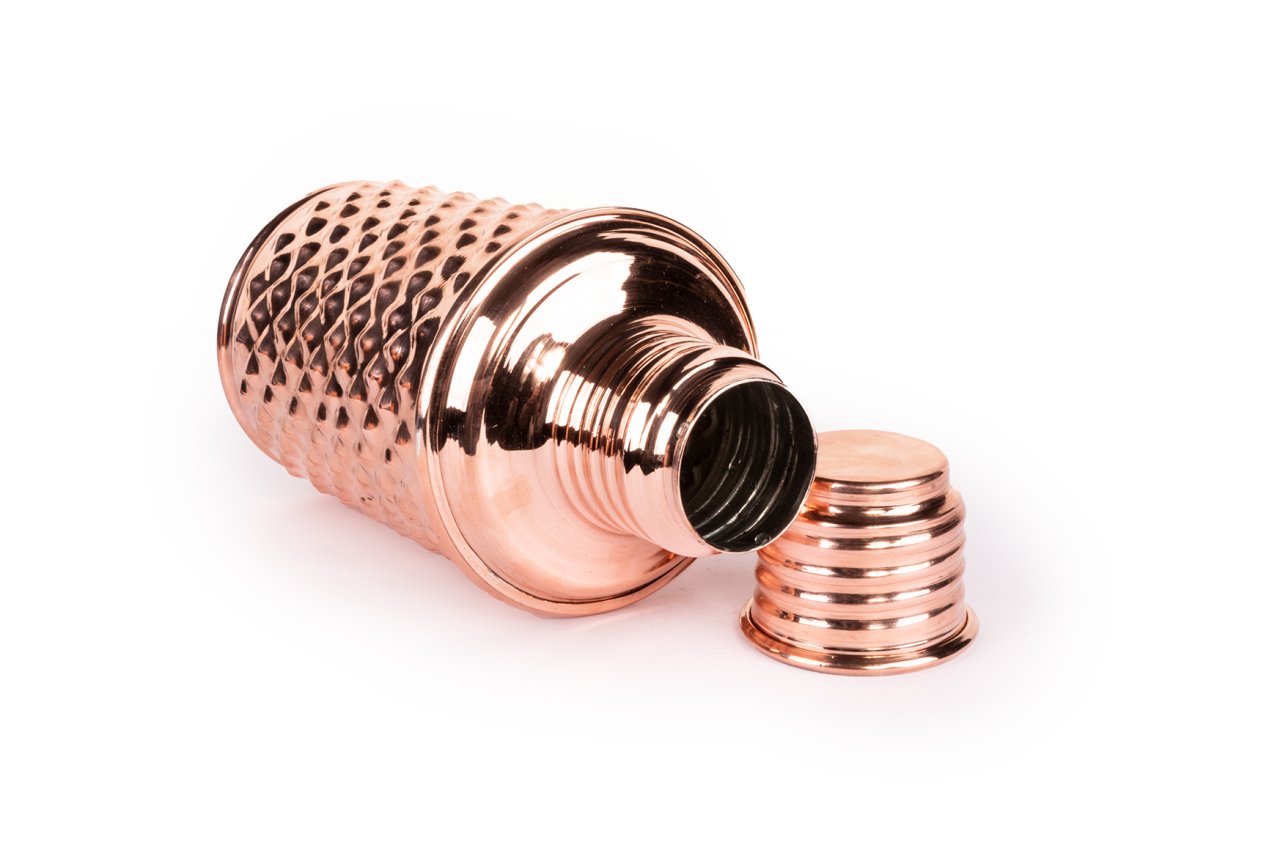 Handygoo Bottle Life Bakır Matara, su, meyve suyu, kokteyl ve benzeri tüm soğuk içeceklerinizi muhafaza etmenin, çantanızda taşımanın ve içmenin en yeni, en havalı yoludur. Kendi imalatımız olup %100 bakırdan üretilmiştir. İçi kalaylıdır. Sızdırma yapmaz. Sadece soğuk içecekler için tasarlanmıştır ve termos özelliği bulunmamaktadır. 750 ml hacminde olup, üzerindeki piramit desenleri ve gövdesi tamamen el yapımıdır. Bakır matara ürünümüzü, 8 cm taban çapı ve 18.5 cm boy ölçüsü ile el çantanızda, sırt çantanızda kolayca taşıyabilirsiniz.