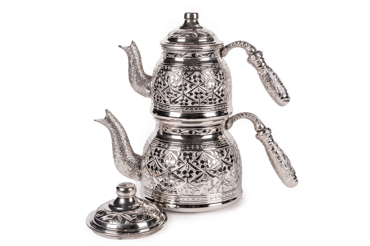 Handygoo Bright Papatya Bahçesi Bakır Çaydanlık, lezzetli çaylar demlemeniz için tasarlandı. Bakır çaydanlık, kahvaltıda, ara öğünlerde, yemekten sonra, tatlının yanında...Hiç şüphesiz çay içmenin yeri ve zamanı yoktur. Bu doğrultuda da çay, pek çok insan için önem verilen içeceklerin başında gelir. Gün içerisinde kimi zaman bir bardak, kimi zaman ise bir demlik çay içilebilmektedir. Ortak bir çay demleme yöntemi bulunmamaktadır ancak bilindiği üzere bakır ürünlerde demlenen, servis edilen her içeceğin lezzetinin arttığı bir gerçektir. Çayınızı demlerken, bu ürün, şık ve otantik görüntüsü ile yine fark yaratmanızı sağlayacaktır. Klasik ürün modelinde yani iki ana kısımdan oluşmaktadır. Her iki kısım üzerinde ham bakır üzerine ustaca ve sabırla işlenmiş, harmoni oluşturan çiçek desen ve işlemeleri bulunmaktadır. Su ve demlik haznelerinin uçlarındaki işlemeler ise daha da detaylandırılmış ancak bu detaylar çaydanlık üzerindeki ana desenler ile son derece uyumlu hale getirilmiştir. Her iki parçanın da birbirinden bağımsız kapakları yer almaktadır. Eskitme olarak tasarlanmış çaydanlığın kulplarıda yine eskitme olarak tasarlanmıştır. Bakır çaydanlık, evinize, ofisinize yada bulunduğunuz herhangi bir mekana zerafet ve şıklık getirecektir. Kendiniz yada hediye ettiğiniz sevdikleriniz çaylarını iki kat kayif ile yudumlayacaklardır. Çaydanlık su haznesi 1,8 litre su almaktadır. Üst demlik ise 0,8 lt su almaktadır.4-6 kişilik kullanım için son derece idealdir. Kalın bakırdan üretilmiştir ve ağırlığı 1 kg (+50)(-50) dır. Bakır çaydanlık, parlak görünümü için nikelajlanmıştır.