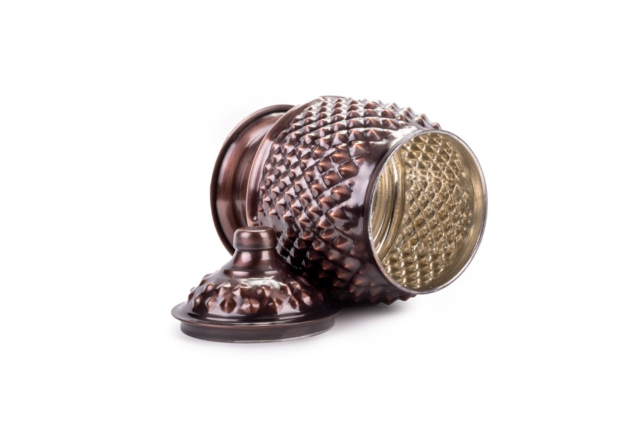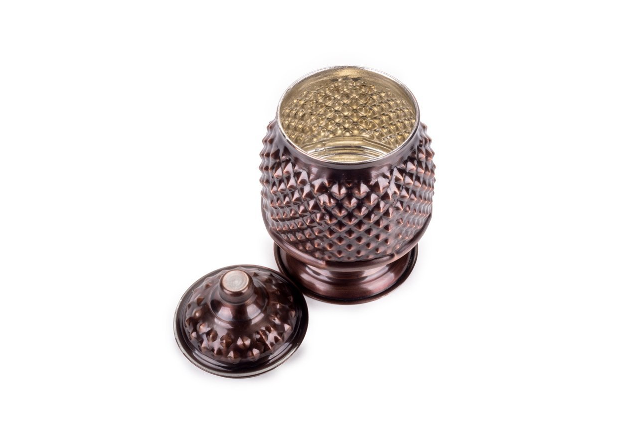 Handygoo Bronz Piramitli Bakır Şekerlik, çok özel bir tasarım. Çay ve benzeri servisleriniz için tasarlandı. Bakır Şekerlik el yapımı olup üzerindeki piramitlerin tamamı el yapımıdır. Ürünün ağız çapı 8,5 cm, taban çapı 12 cm dir. Ürün yüksekliği 17 cm dir. Şekerlik ayaklığının çapı ise 10 cm dir. Ürünün içi kalaylanmıştır. Hem dekoratif hem de şık görüntüsü ile evinizde ve iş yerinizde günlük olarak kullanmaktan büyük zevk duyacağınız ürün, sitemizdeki diğer tüm bakır ürünler ile konbinlenebilmektedir.