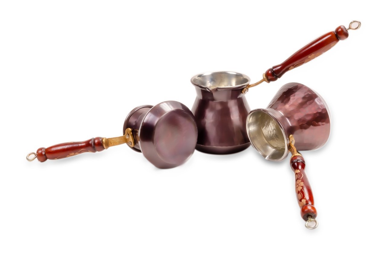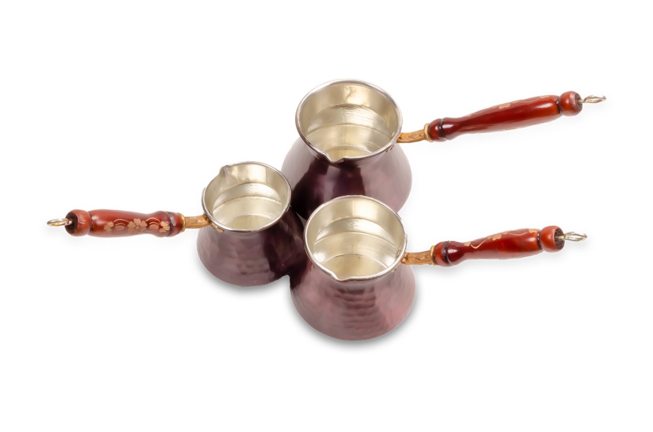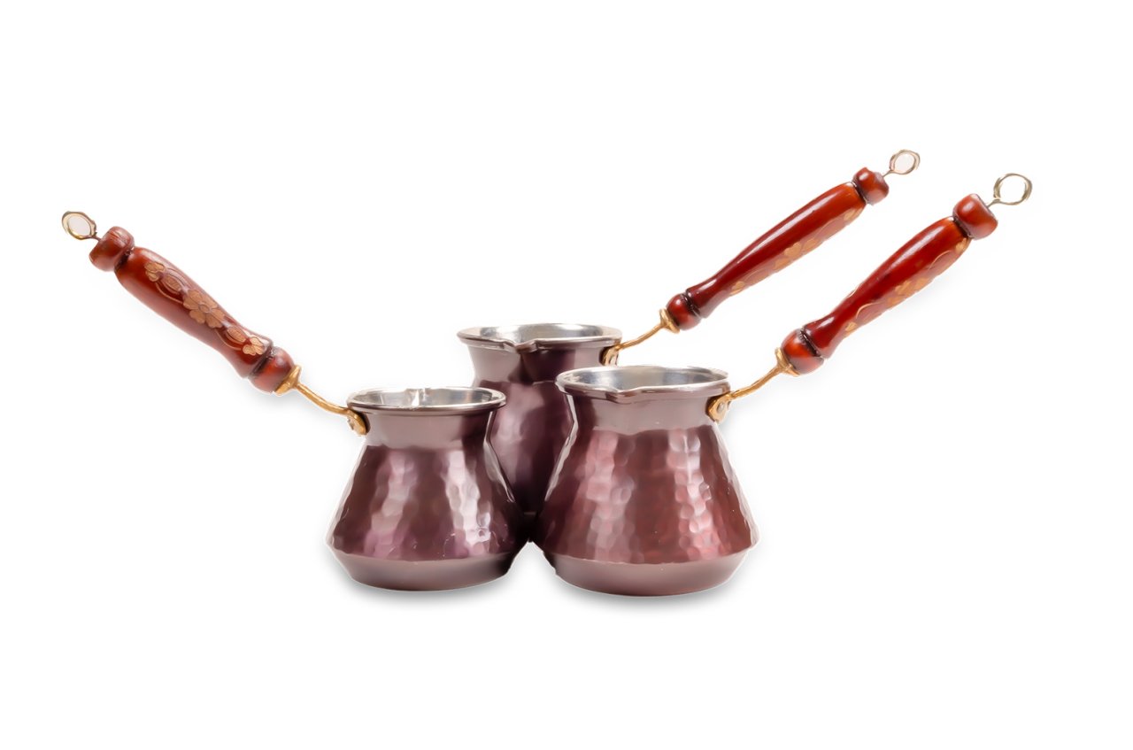 Handygoo Bronz Renkli Bakır Cezve Takımı , sizler için özel olarak tasarlandı. Tamamen el yapımı olarak dövme bakırdan üretilen bakır cezve takımı, bronz rengi ile alışılmışın dışında son derece modern ve dekoratif bir görüntüye sahiptir. Ürün, 2-4 ve 6 kişilik cezvelerden oluşmaktadır. 2 kişilk cezve 7 cm, 4 kişilik cezve 8 cm, 6 kişilik cezve 9 cm çapa sahiptir. Ürün yükseklikleri sırası ile 8-9 ve 10 cm dir. Sap uzunlukları ise sırası ile 13-13 ve 15 cm dir. Ürün, mutfağınızda vazgeçmek istemeyeceğiniz parçalardan biri olacak.