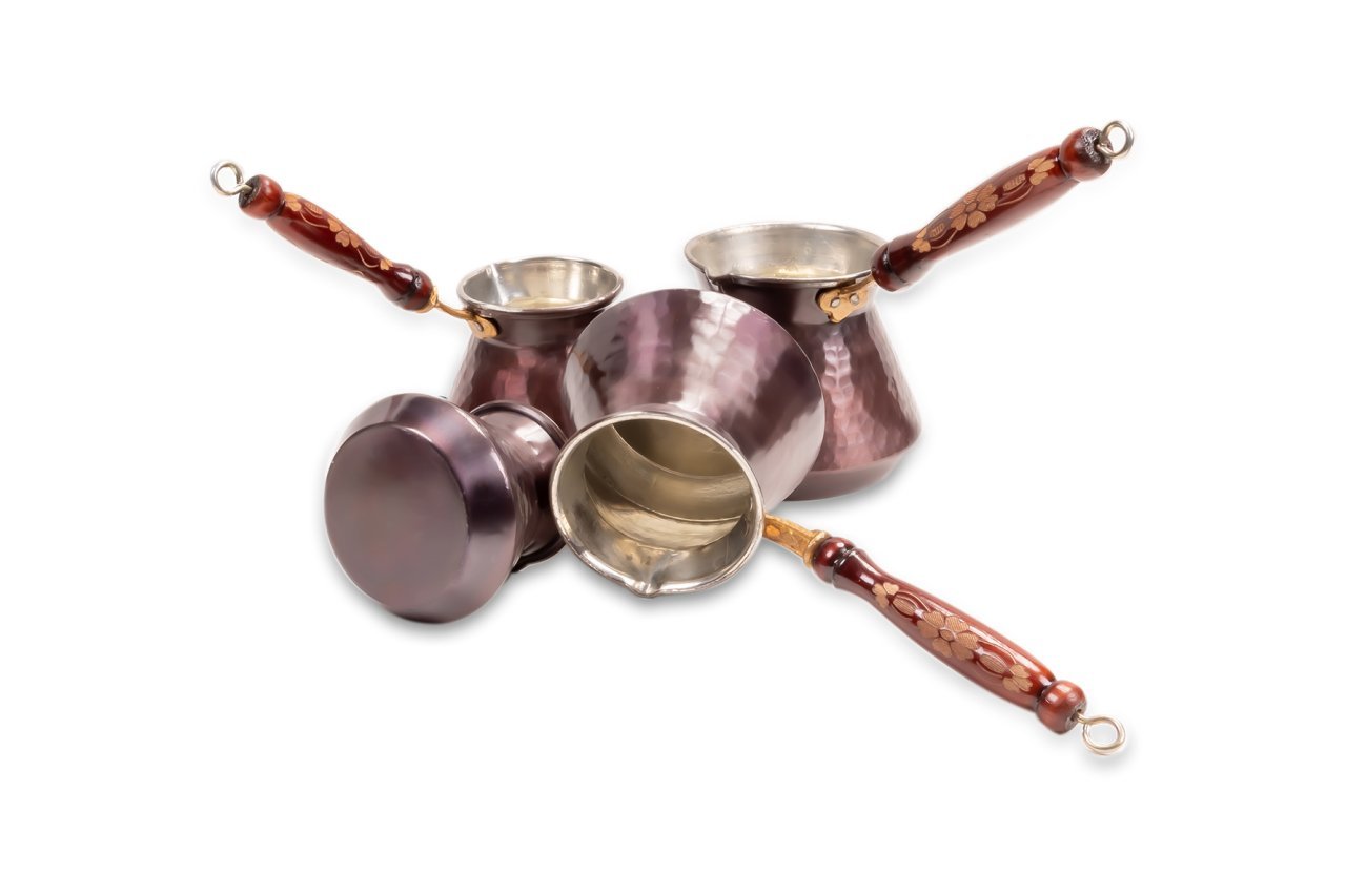 Handygoo Bronz Renkli Bakır Cezve Takımı , sizler için özel olarak tasarlandı. Tamamen el yapımı olarak dövme bakırdan üretilen bakır cezve takımı, bronz rengi ile alışılmışın dışında son derece modern ve dekoratif bir görüntüye sahiptir. Ürün, 2-4-6 ve 12 kişilik cezvelerden oluşmaktadır. 2 kişilk cezve 7 cm, 4 kişilik cezve 8 cm, 6 kişilik cezve 9 cm ve 12 kişilik cezve 10 cm çapa sahiptir. Ürün yükseklikleri sırası ile 8-9-10 ve 11 cm dir. Sap uzunlukları ise sırası ile 13-13-15 ce 17 cm dir. Ürün, mutfağınızda vazgeçmek istemeyeceğiniz parçalardan biri olacak.