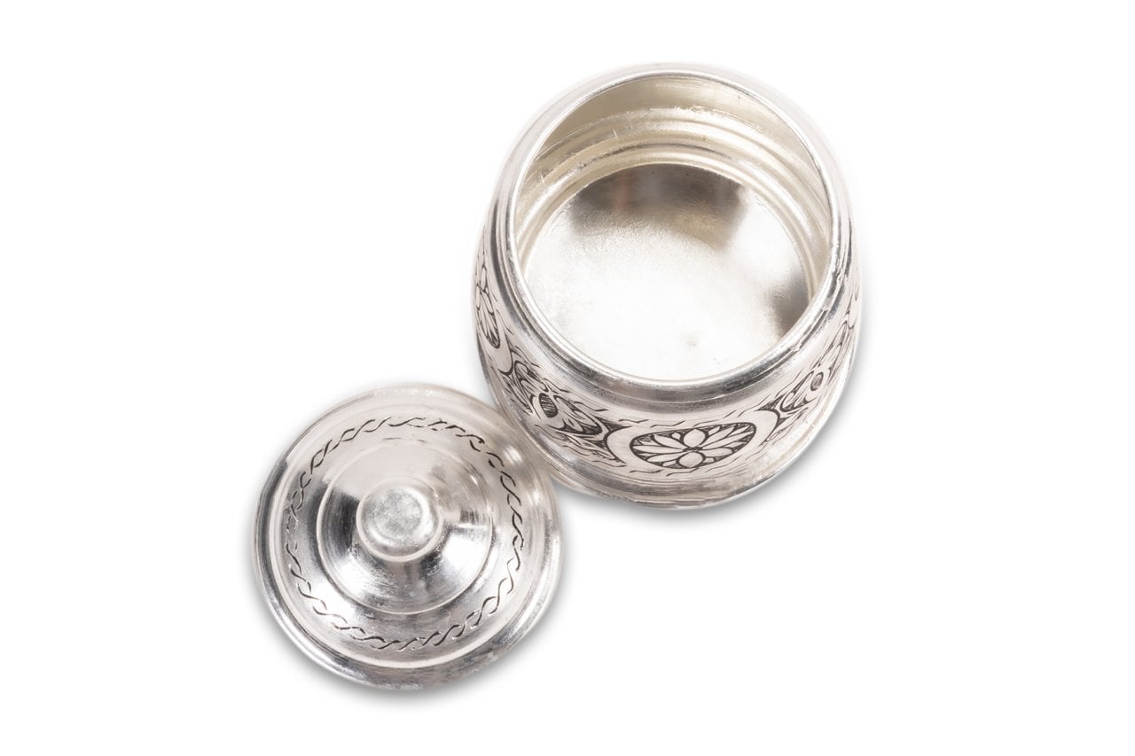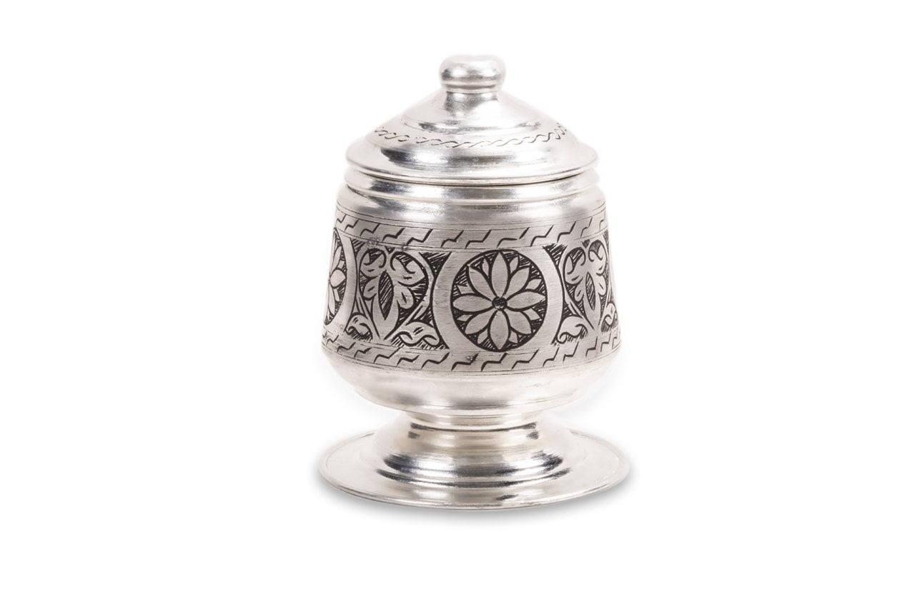 Handygoo Candy El İşlemesi Bakır Şekerlik, çay ve benzeri servisleriniz için tasarlandı. Bakır Şekerlik el yapımı olup üzerindeki işlemelerin tamamı el işlemesidir. Ürünün çapı 8 cm iken, yüksekliği 15 cm dir. Şekerlik ayaklığının çapı ise 10,5 cm dir. Ürün, eskitme olarak tasarlanmış olup içi kalaylanmıştır. Hem dekoratif hem de şık görüntüsü ile evinizde ve iş yerinizde günlük olarak kullanmaktan büyük zevk duyacağınız ürün, sitemizdeki diğer tüm bakır ürünler ile konbinlenebilmektedir.
