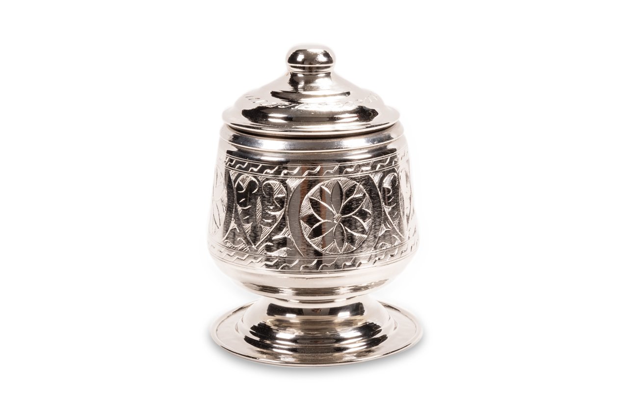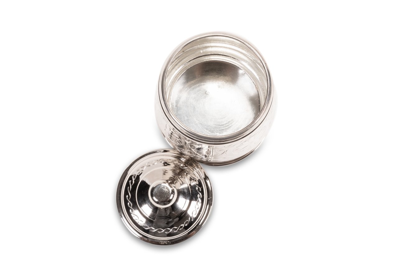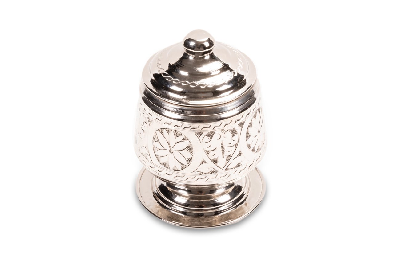 Handygoo Candy Nikelajlı El İşlemesi Bakır Şekerlik, çay ve benzeri servisleriniz için tasarlandı. Bakır Şekerlik el yapımı olup üzerindeki işlemelerin tamamı el işlemesidir. Ürünün çapı 8 cm iken, yüksekliği 15 cm dir. Şekerlik ayaklığının çapı ise 10,5 cm dir. Ürün, nikelajlı olarak tasarlanmış olup içi kalaylanmıştır. Hem dekoratif hem de şık görüntüsü ile evinizde ve iş yerinizde günlük olarak kullanmaktan büyük zevk duyacağınız ürün, sitemizdeki diğer tüm bakır ürünler ile konbinlenebilmektedir.