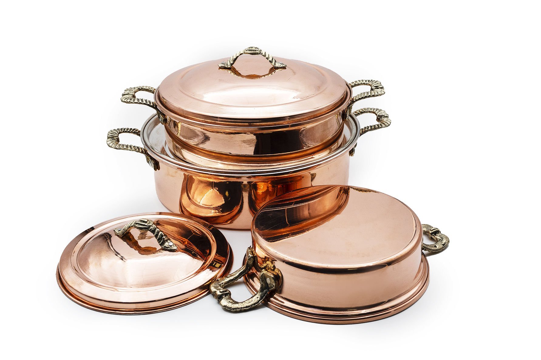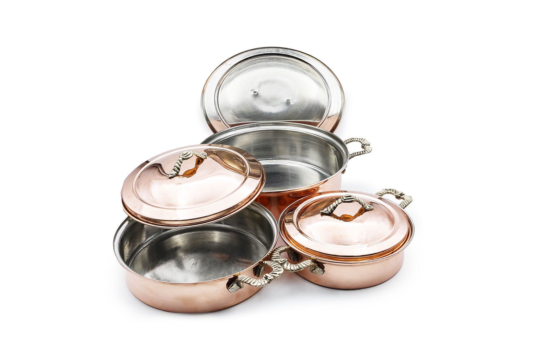Handygoo Copper Age Bakır Tencere Seti, bakırın orjinal rengi ve soft çizgileri ile sizlerle buluşuyor. Tamamen el yapımı olan ürünlerimiz %100 kalın bakırdan tarafımızca üretilmiştir. Bakır kaplama değildir. Üç farklı boy seçeneği ile sizlerle buluşan bakır tencere seti modelimizin en ufak boyu 22,5 cm çap, 6,5 cm derinlik ölçüsüne sahiptir. Kulptan kulba çapı 31,5 cm olan ürünümüzün toplam yüksekliği ise 12 cm dir. Ağırlığı ise 1,3 kg dır. Orta boy tenceremiz ise 27,5 cm çap, 7 cm derinlik ölçüsüne sahiptir. Kulptan kulba çapı 36 cm olan ürünümüzün toplam yüksekliği ise 14 cm dir. Ağırlığı ise 1,8 kg dır. Büyük boy tenceremiz, 30,5 cm çap, 9,5 cm derinlik ölçüsüne sahiptir. Kulptan kulba çapı 40 cm olan ürünümüzün toplam yüksekliği ise 16 cm dir. Ağırlığı ise 2,2 kg dır. Bakır tencere modellerimizin içi kalaylanmıştır. Günlük kullanıma uygundur. Kapağındaki özel tasarımımız ile birlikte, kapak kenarları dövme bakır tencere dışına damlatma yapmamaktadır.