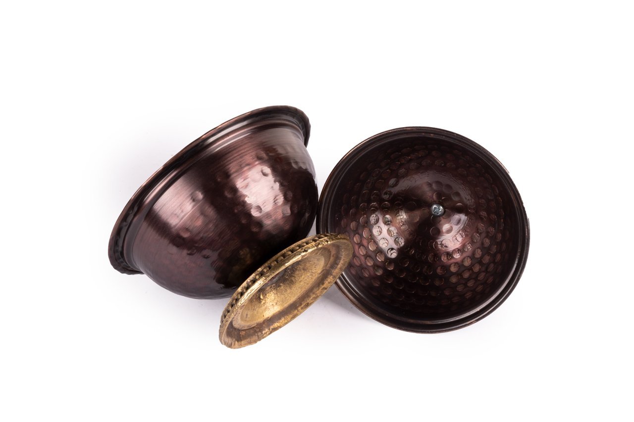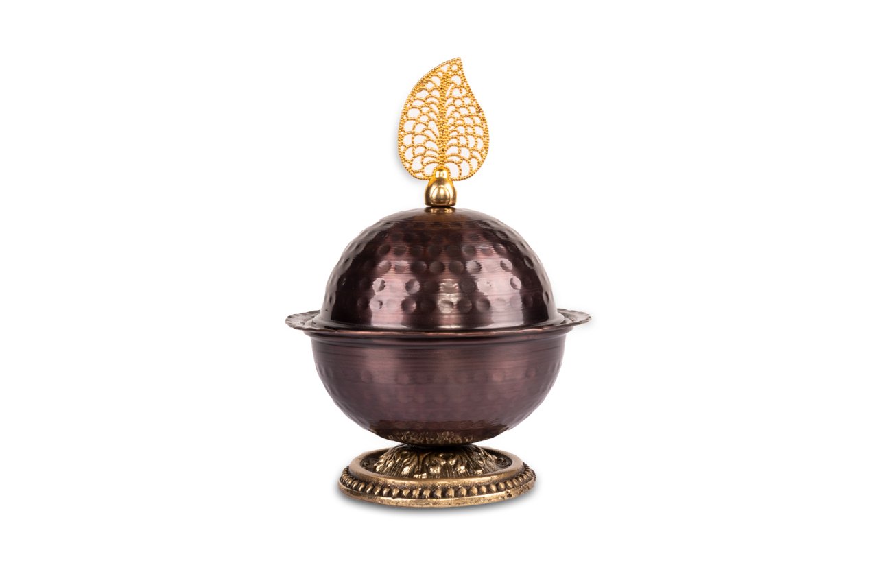 Handygoo Dark Fine Dövme Bakır Şekerlik, hem şekerlik hem çerezlik hem de baharatlık olarak kullanabileceğiniz çok amaçlı modelimizdir. Kendi imalatımız olup kalın bakırdan üretilmiş ve tamamen el yapımıdır. Bakır şekerlik modelimiz 11,5 cm çap ve toplam 18 cm yüksekliğe sahiptir. Dövme bakırın eşsiz güzelliğini üzerinde taşıyan ürünümüzün kapak başlığı döküm malzeme kullanılarak üretilmiştir. Günlük kullanıma uygun olup, içi kalaylanmıştır. Ücretsiz kargo fırsatı ile sahip olabileceğiniz ürünümüzü sevdiklerinize hediye olarak da gönderebilirsiniz.