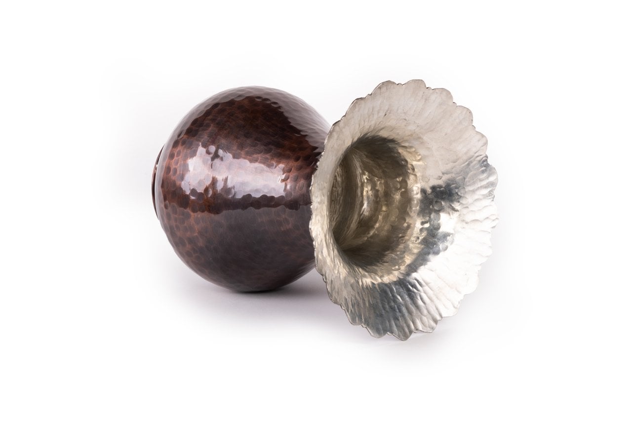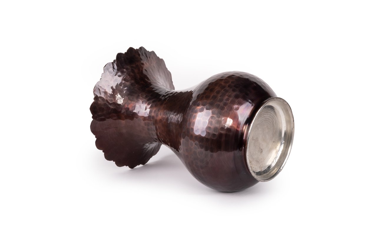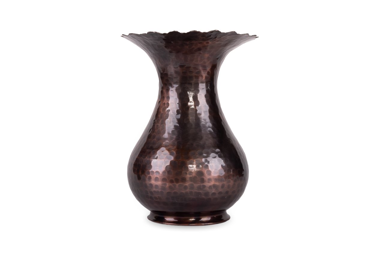 Handygoo Dark Hammer Bakır Vazo, kendi imalatımız olup kalın bakırdan üretilmiştir. Üzerindeki çekiç işçiliği dahil olmak üzere el yapımıdır. Taban çapı 9,5 cm, ağız çapı 16,5 cm ve boyu 23 cm dir. Hem dekoratif hem de günlük kullanıma çok uygun olan bakır vazo modelimiz kullanıldığı her ortamda, mekana ayrı bir hava katacaktır. Ürünümüzün ağız kısmında özel kesim işçiliği uygulanmıştır. Her türlü canlı çiçek, yapma çiçek ile kullanıma uygundur.