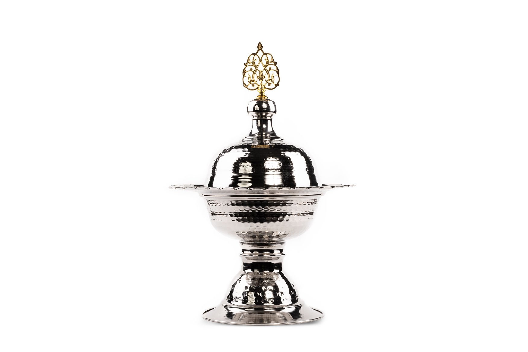 Handygoo Dekoratif  Nikelajlı Bakır Baharatlık, tarihi paşa mangallarımızdan esinlenerek tasarladığımız ve kullanıldığı her alanda dekoratif görüntüsü ile ön planda olacak ürünümüzdür. Tamamen el yapımı ve %100 bakırdır. Parlak görünümü için nikel ile kaplanmıştır.  Günlük kullanıma uygun olması bir yandan, estetik ve nostaljik görüntüsü ile çok kullanışlı olan bakır baharatlık ürünümüz toplam 30 cm yüksekliğindedir. Çapı 19,5 cm olup, baharatlık hazne çapı 13 cm, hazne derinliği ise 5 cm dir. Alt kısmında ayak çapı 13 cm dir. Sadece baharatlık olarak değil, şekerlik, lokumluk vb. sunumlarınızda da rahatlıkla kullanabilirsiniz.