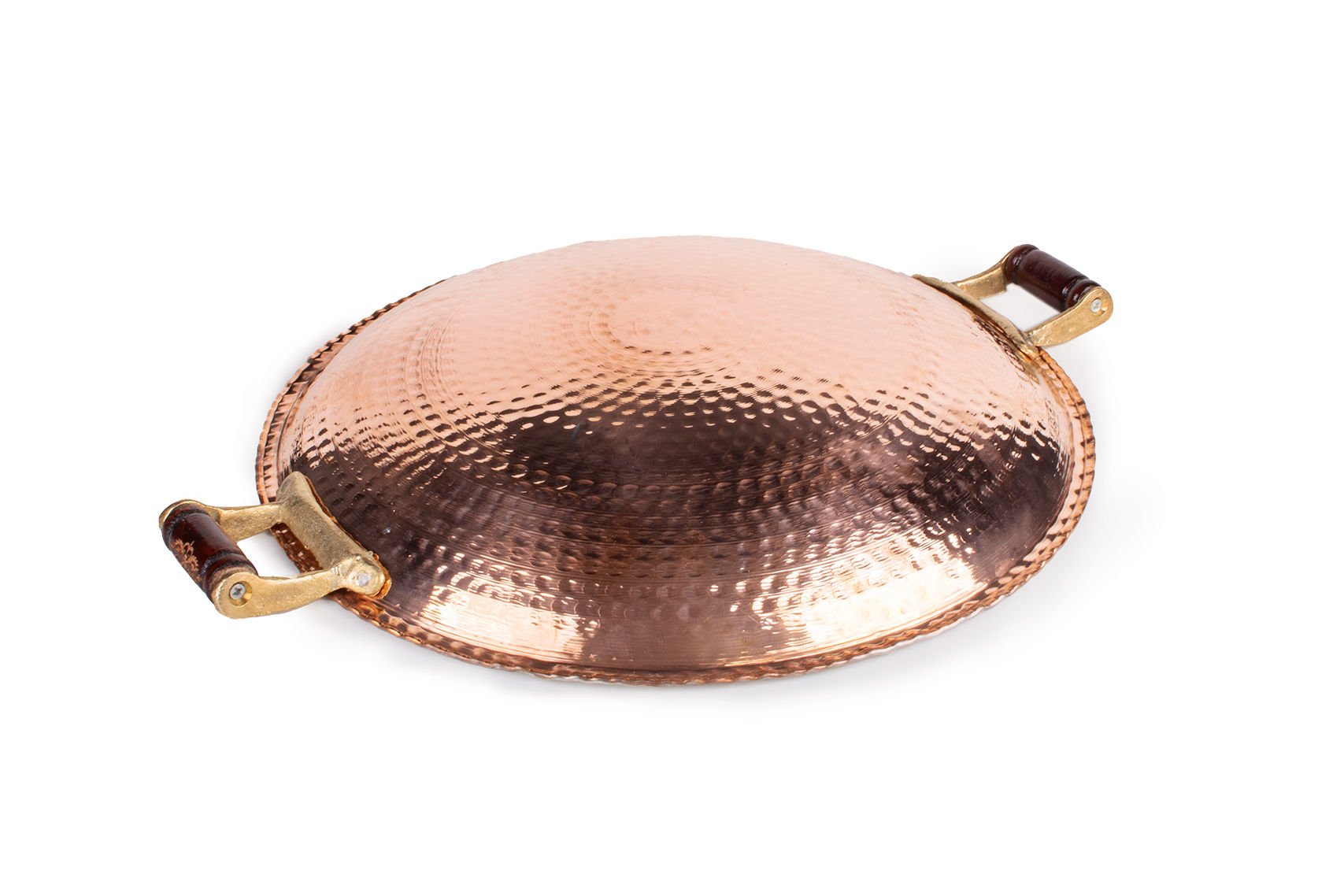 Handygoo Dövme Bakır Wok Tava, mutfaklarınıza son derece şık görünümü ile hem kullanışlı hem de dekoratif bir hava katıyor. Sitemizdeki tüm diğer bakır ürünler ile kombinde yapabileceğiniz ürünümüz, dekoratif ve günlük kullanıma uygun bakır ürün seven herkesin dikkatini üzerinde topluyor. 34-36 ve 40 cm çap seçenekleri mevcut olup,9 cm derinliği ile bir wok tavada aradığınız her şey bu modelimizde. Modelimiz kendi imalatımız olup kalın bakırdan üretilmiştir. Tamamen elde çekiç ile dövülerek üretilmiştir ve tamamen size özeldir. İç kısmı kalaylanmış olan dövme bakır modelimizin uzun yıllar boyunca mutfağınızda ve sofralarınızda yer alacağından emin olabilirsiniz.