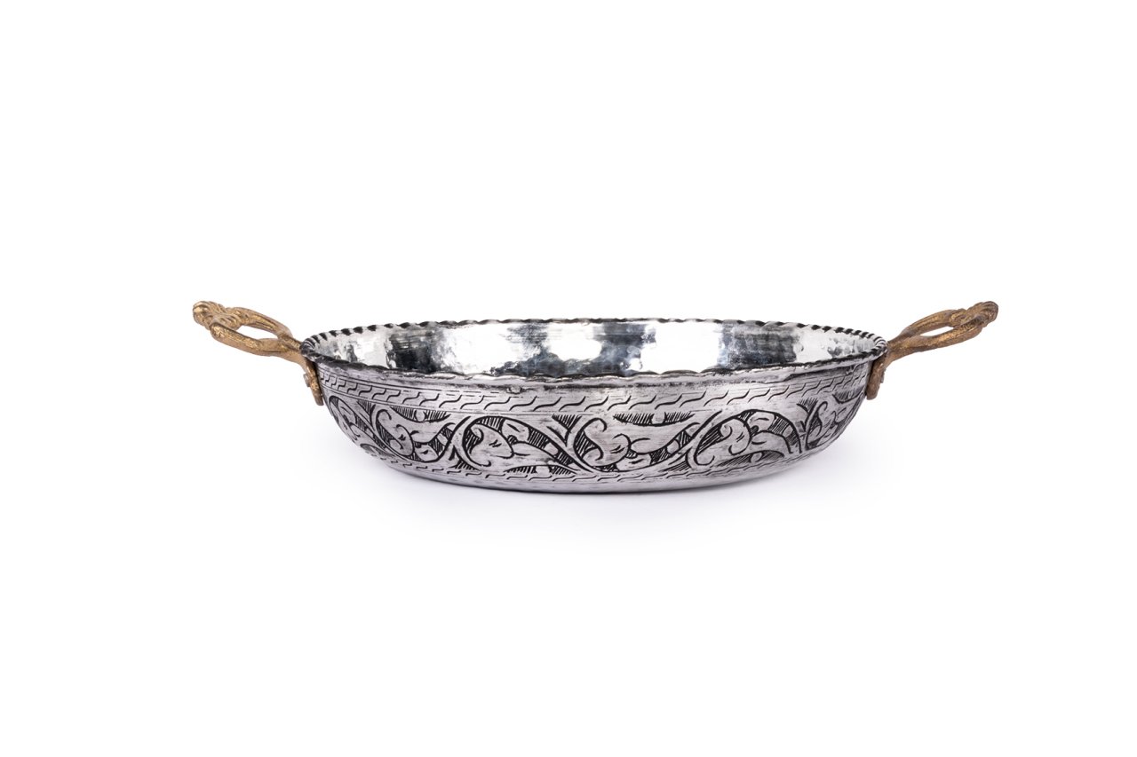 Handygoo El İşlemesi Bakır Sahan, Gaziantep bakır el işlemesi örneklerini üzerinde taşımaktadır. %100 bakır kullanılarak tarafımızca üretilmiştir. İçi kalaylıdır ve günlük kullanıma uygundur. Kalın olduğu için yapışma yapmamaktadır. Bakır sahan modelimizin kulpları pirinç döküm malzemeden yapılmıştır. Sitemizde ürünümüzün üç farklı boy seçeneği mevcuttur.