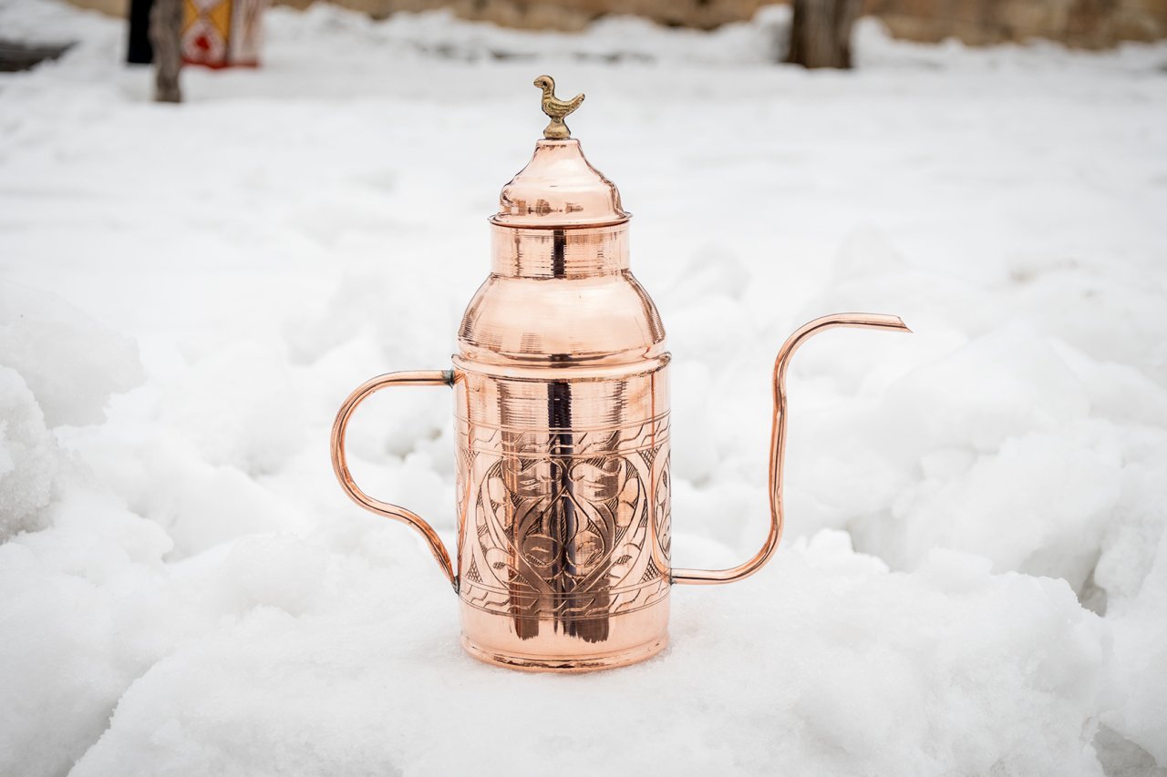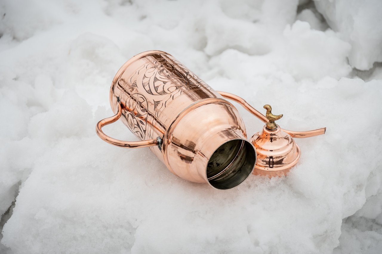 Handygoo El İşlemesi Battal Boy Bakır Yağdanlık, elinizin altındaki en yeni ve en şık parçalardan biri olacak. Yağ servisi yapacağınız her ortamda, başka hiç bir yerde bulamayacağınız görüntüsü ve tasarımı ile göz dolduracağından emin olabilirsiniz. Ürünümüzün tamamı elde işlenmiştir. Ürünümüz 1,5 lt hacmindedir. Taban çapı 10,5 cm, boy ölçüsü ise 28 cm dir. Bakır yağdanlık modellerimizin içi kalaylanmış olup sızdırma yapmamaktadır. Kapak tasarımı doldurma ve servis için özel olarak tasarlanmıştır. Zeytinyağı, ay çiçek ve benzeri tüm yağ servislerinizde rahatlıkla kullanabilirsiniz.