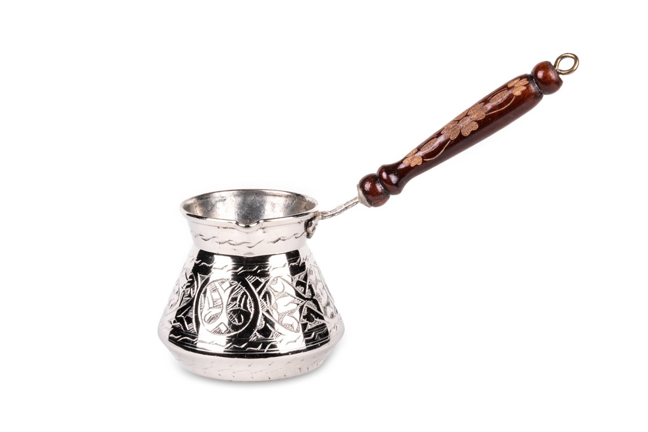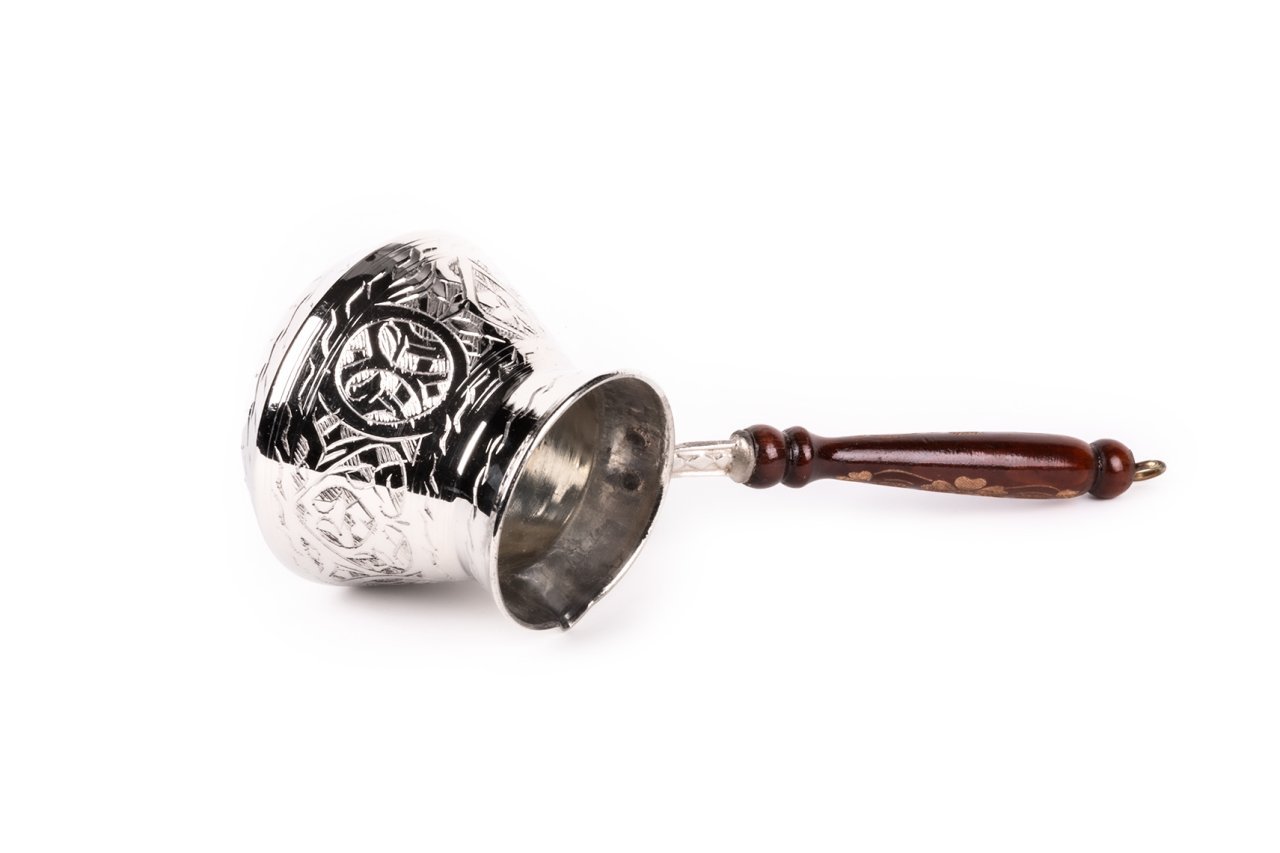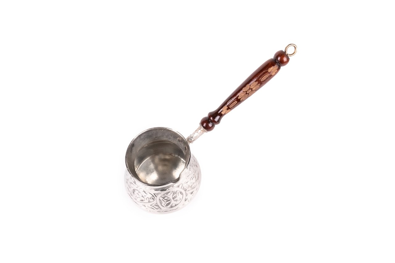 Handygoo El İşlemesi Nikelajlı Bakır Cezve, Türk kahvesi yapmak, kendiniz, aileniz, komşularınız ve dostlarınız ile birlikte keyif ile içmeniz için tasarlanmıştır. Türk Kahvesi en sevilen sıcak içeceklerden birisidir. Yalnızca lezzet için değil, sunum şeklinden, sohbetlerine kadar pek çok sebepten dolayı bir çok insanın hayatında önemli bir yeri bulunmaktadır. Ancak, kullandığınız cezvenin özenle seçilmesi gerekmektedir. Son yıllarda teknolojinin gelişmesi ile birlikte elektrikli olanlar ön plana çıksa da, bakır cezvede pişirilenin lezzetine doyum olmadığını düşünen kişilerin sayısı son derece fazladır. Bilindiği üzere bu ürünler uygun şekilde kullanılır ise çok uzun süre kullanılabilirler. Ayrıca bakır cezvenizi, sitemizde yer alan diğer kahve setleri ve ürünler ile de kombinleyebilirsiniz. Bu setler içerisindeki fincanlar ile kahvenizi keyif içerisinde yudumlarken, ikramlıklar ile sevdiklerinizi lokum vb. ile mutlu edebilirsiniz. Temelde iki parça olarak düşünebileceğiniz ürünün sap kısmı ısıya dayanıklı ve ahşap olup özenle hazırlanmış desenler içermektedir. Hazne kısmı ise bakırcı ustalarının marifetli ellerinden çıkan ve bakır üzerine işlenmiş desenlere sahiptir. Haznenin içi kalaylanmış olup güven içerisinde pişirmenize olanak sağlamaktadır. Dış kısım ise, parlak görünümü için nikelajlanmıştır. Kaliteli ve zarif dekoratif ürünleri tercih edenler kullanıcılar içinde tercih sebebidir. Ürünün, sitemizde 2-4-6 ve 12 kişilik seçenekleri bulunmaktadır. 2 kişilik cezve 7 cm, 4 kişilik cezve 8 cm, 6 kişilik cezve 9 cm ve 12 kişilik cezve 10 cm çapa sahiptir. Ürün yükseklikleri sırası ile 8-9-10 ve 11 cm dir. Sap uzunlukları ise sırası ile 13-13-15 ce 17 cm dir. Ürün, mutfağınızda vazgeçmek istemeyeceğiniz parçalardan biri olacaktır. Yepyeni bir kahve pişirme deneyimi için ayrıca sevdiklerinize hediye edebilmek için ücretsiz kargo fırsatı ile ürünü satın alabilirsiniz.