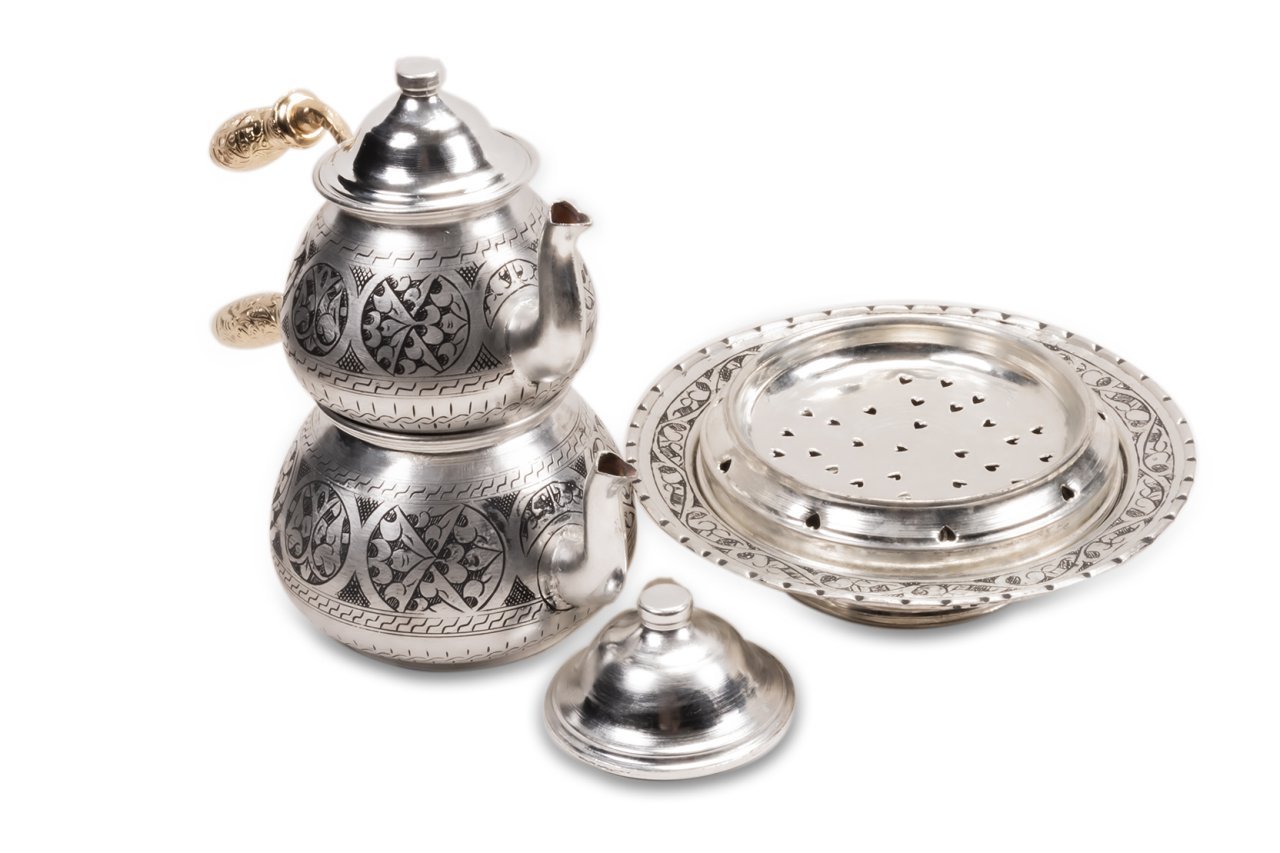 Handygoo El Yapımı Bakır Çaydanlık ve Balkon Sefası, çay keyfinizin komple bir tanımı adeta. 1,8 lt lik alt demlik hacmi ile son derece ideal boyutlarda olan bakır çaydanlık, balkon sefası ile tamamlanan şık, estetik ve dekoratif görüntüsü ile tam bir sanat eseri haline dönüşmüş durumda. Balkon sefasında kullanabileceğiniz tea light mumlarınız ile çay servislerinizde ısı kaybı yaşamazken, sunumlarınıza son derece şık bir hava katacaksınız. Balkon sefası, özellikle bakır çaydanlık ürünleri ile bir bütün oluştururken dilerseniz porselen yada emaye demlik ve çaydanlıklarınız ile de rahatlıkla kullanabilirsiniz. İç kaide çapı 16 cm, dış çapı 25 cm ve toplam yüksekliği 7 cm dir.Başından sonuna kadar bakır işleme sanatının en güzel örnekleri ile bezenmiş durumda olan ürünümüz tamamen el yapımıdır. İçi kalaylı olan Handygoo El Yapımı Bakır Çaydanlık ve Balkon Sefası kendi imalatımız olup set olarak satılmaktadır. Günlük kullanıma uygun olan ürünümüzü ve diğer tüm bakır ürünlerimizi ücretsiz kargo fırsatı ile güvenle satın alabilirsiniz. Hediye olarak da sipariş verebileceğiniz ürünümüz için, satın alma ekranında hediye paketi ve hediye notu seçeneklerimizi de kullanabilirsiniz. Tüm kredi kartları ile taksit imkanlarından da yararlanabilirsiniz.