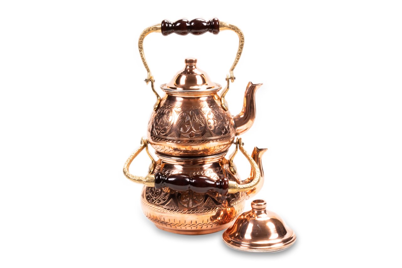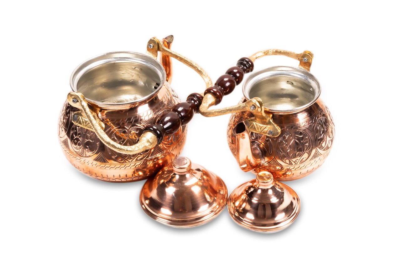 Handygoo El Yapımı Yukarıdan Kulplu Kırmızı Bakır Çaydanlık , çaydanlık tasarımına yepyeni bir soluk getirmektedir. Klasik çizgiler, kulp pozisyonu ve üzerindeki el işlemesi bakır desenleri ile son derece farklı bir görünüme sahiptir. 1,8 lt lik alt demlik ve 0,8 lt hacmi ile son derece ideal boyutlarda olan bakır çaydanlık, başından sonuna kadar bakır işleme sanatının en güzel örnekleri ile bezenmiş durumdadır. Ürünümüz tamamen el yapımıdır. İçi kalaylı olan Handygoo El Yapımı Yukarıdan Kulplu Kırmızı Bakır Çaydanlık modelinin ayrıca sitemizde balkon sefası ile set halinde olan modeli de yer almaktadır. Balkon sefası yada çaydanlık ısıtıcı modellerimizi ayrı olarak da satın almayı tercih edebilirsiniz. Günlük kullanıma uygun olan ürünümüzü ve diğer tüm bakır ürünlerimizi ücretsiz kargo fırsatı ile güvenle satın alabilirsiniz. Hediye olarak da sipariş verebileceğiniz ürünümüz için, satın alma ekranında hediye paketi ve hediye notu seçeneklerimizi de kullanabilirsiniz. Tüm kredi kartları ile taksit imkanlarından da yararlanabilirsiniz.