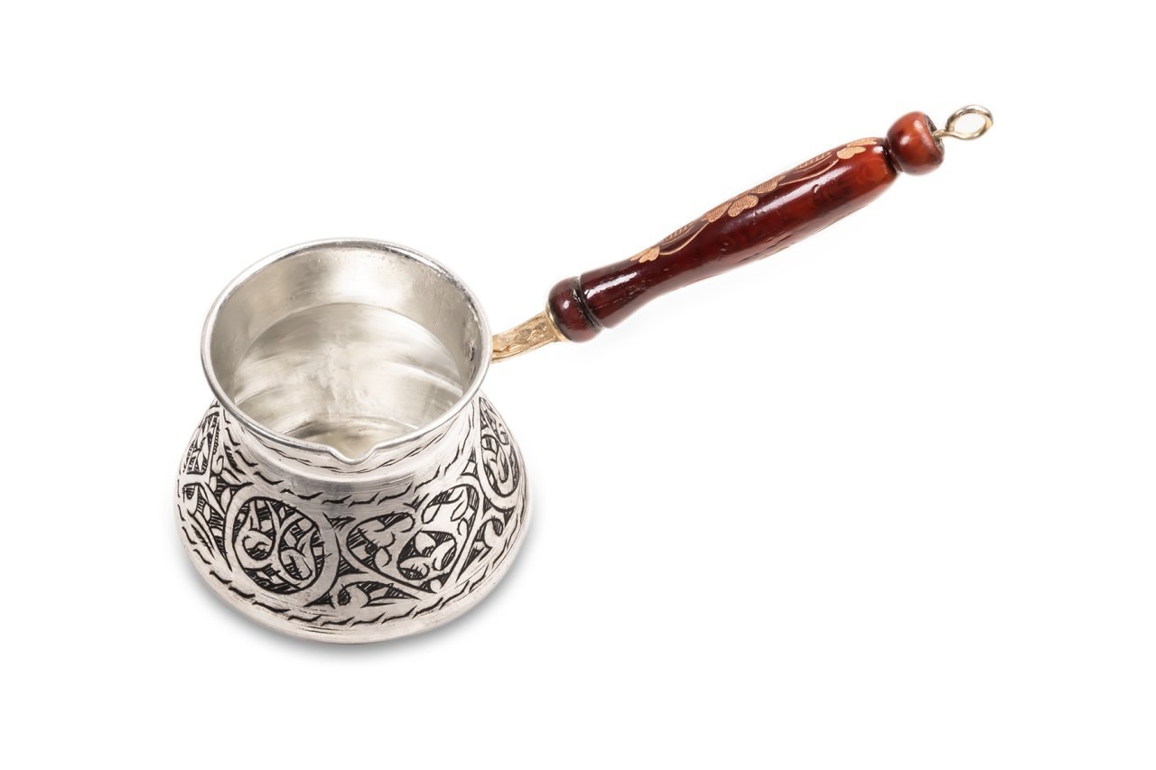 Handygoo Eskitme Bakır Cezve, Türk kahvesi yapmak, kendiniz, aileniz, komşularınız ve dostlarınız ile birlikte keyif ile içmeniz için tasarlanmıştır. Türk Kahvesi en sevilen sıcak içeceklerden birisidir. Yalnızca lezzet için değil, sunum şeklinden, sohbetlerine kadar pek çok sebepten dolayı bir çok insanın hayatında önemli bir yeri bulunmaktadır. Ancak, kullandığınız cezvenin özenle seçilmesi gerekmektedir. Son yıllarda teknolojinin gelişmesi ile birlikte elektrikli olanlar ön plana çıksa da, bakır cezvede pişirilenin lezzetine doyum olmadığını düşünen kişilerin sayısı son derece fazladır. Bilindiği üzere bu ürünler uygun şekilde kullanılır ise çok uzun süre kullanılabilirler. Ayrıca bakır cezvenizi, sitemizde yer alan diğer kahve setleri ve ürünler ile de kombinleyebilirsiniz. Bu setler içerisindeki fincanlar ile kahvenizi keyif içerisinde yudumlarken, ikramlıklar ile sevdiklerinizi lokum vb. ile mutlu edebilirsiniz. Temelde iki parça olarak düşünebileceğiniz ürünün sap kısmı ısıya dayanıklı ve ahşap olup özenle hazırlanmış desenler içermektedir. Hazne kısmı ise bakırcı ustalarının marifetli ellerinden çıkan ve bakır üzerine işlenmiş desenlere sahiptir. Haznenin içi kalaylanmış olup güven içerisinde pişirmenize olanak sağlamaktadır. Kaliteli ve zarif dekoratif ürünleri tercih edenler kullanıcılar içinde tercih sebebidir. Ürünün, sitemizde 2-4-6 ve 12 kişilik seçenekleri bulunmaktadır. 2 kişilik cezve 7 cm, 4 kişilik cezve 8 cm, 6 kişilik cezve 9 cm ve 12 kişilik cezve 10 cm çapa sahiptir. Ürün yükseklikleri sırası ile 8-9-10 ve 11 cm dir. Sap uzunlukları ise sırası ile 13-13-15 ce 17 cm dir. Ürün, mutfağınızda vazgeçmek istemeyeceğiniz parçalardan biri olacaktır. Yepyeni bir kahve pişirme deneyimi için ayrıca sevdiklerinize hediye edebilmek için ücretsiz kargo fırsatı ile ürünü satın alabilirsiniz.