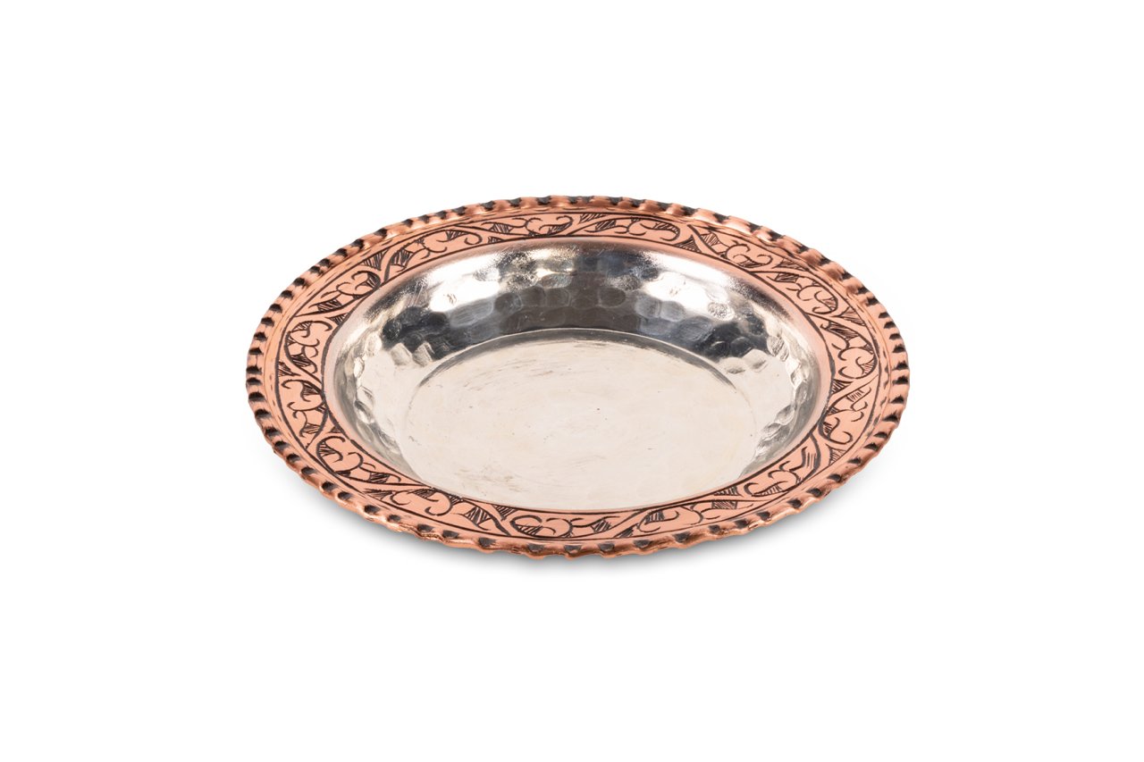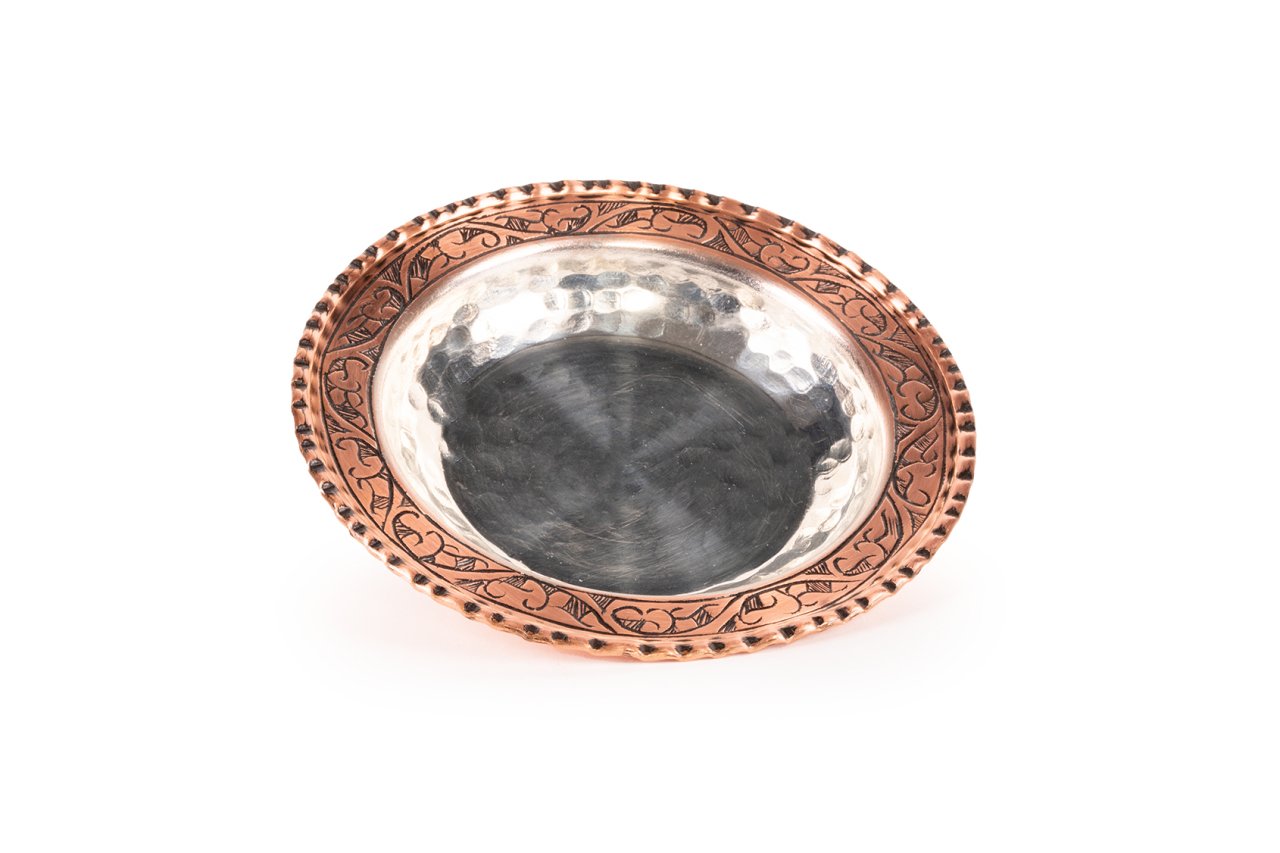 Handygoo Eskitme El işlemesi Kahvaltılık Bakır Tabak, kahvaltılıklarınızı daha önceki sunumlarınızdan bambaşka bir şekilde servis etmek için özen ile tasarlandı. Üzerindeki el işlemeleri ve ürünün tamamı el yapımıdır. Çapı 16,5 cm, derinliği 2 cm dir. Sadece kahvaltılarınızda değil dilediğiniz farklı servislerinizde de son derece kullanışlı bulacağınız ürünün içi kalaylanmıştır. Bu sebep ile güvenle de kullanabilirsiniz.