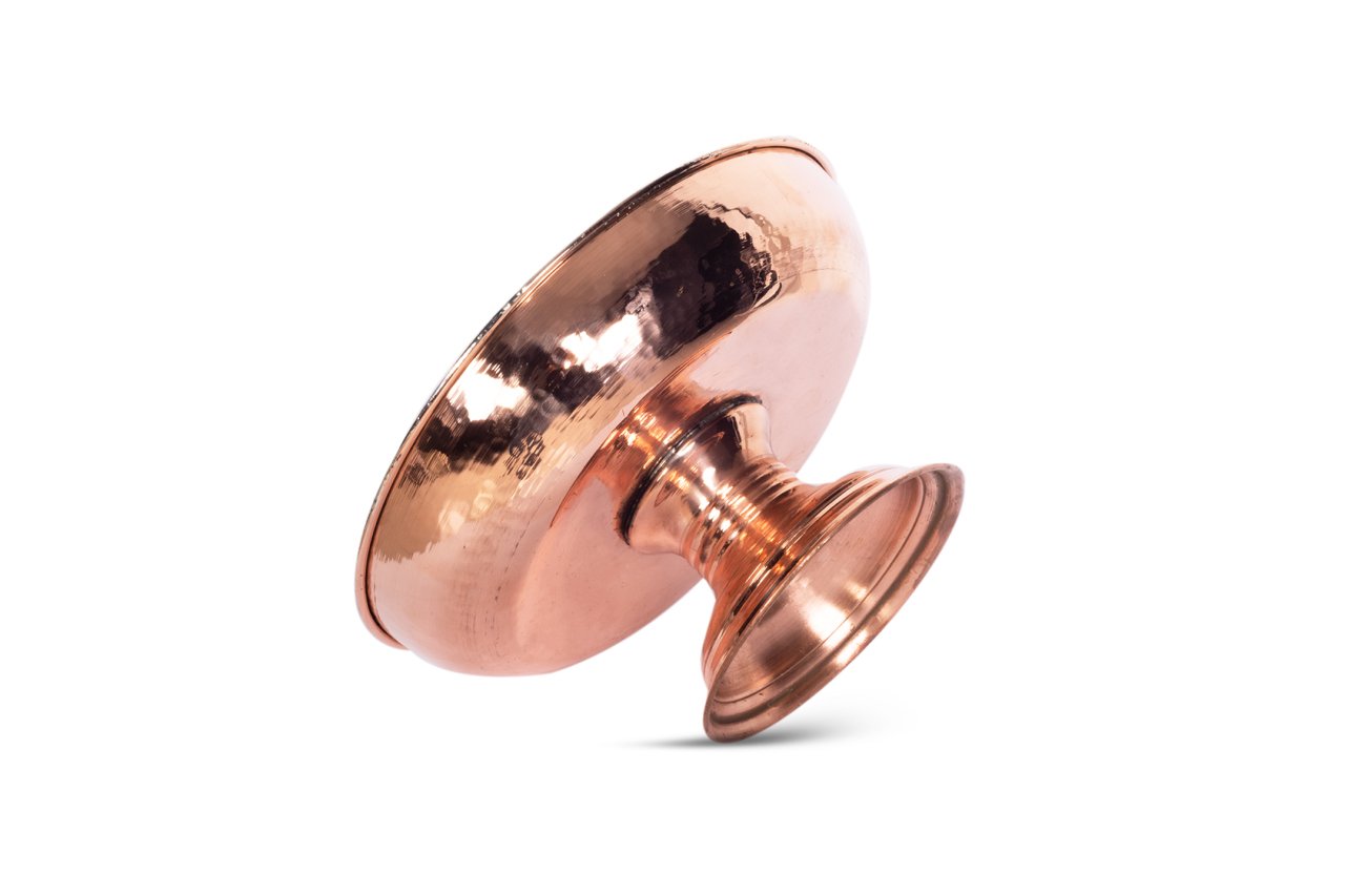 Handygoo Grace Dövme Bakır Tabak, şekerlik, lokumluk, çerezlik, meyve tabağı, sunumluk ve benzeri şekilde çok amaçlı olarak gündelik kullanımda her an elinizin altında olması için tasarlanıp üretilmiştir. El yapımı dövme bakır tabak , tamamen el yapımı ve kendi imalatımızdır. Kalın bakırdan üretilmiştir. Üzerindeki dövmeler Gaziantep bakır işleme ustaları tarafından yapılmıştır. Ürün, 23 cm çapa sahip olup, tabak derinliği 5 cm, toplam yükseklik ise 12 cm dir. Evinizde ve işyerleriniz de sofra ve sunumlarınıza yeni bir tarz eklerken, geleneksel olarak da son derece göze hoş gelen ürünümüzü sitemizden güvenli bir şekilde, ücretsiz kargo ile satın alabilir, diğer bakır ürünlerimiz ile de kombinleyebilirsiniz. Ürün kalaylanmış olup güven ile kullanabilirsiniz.