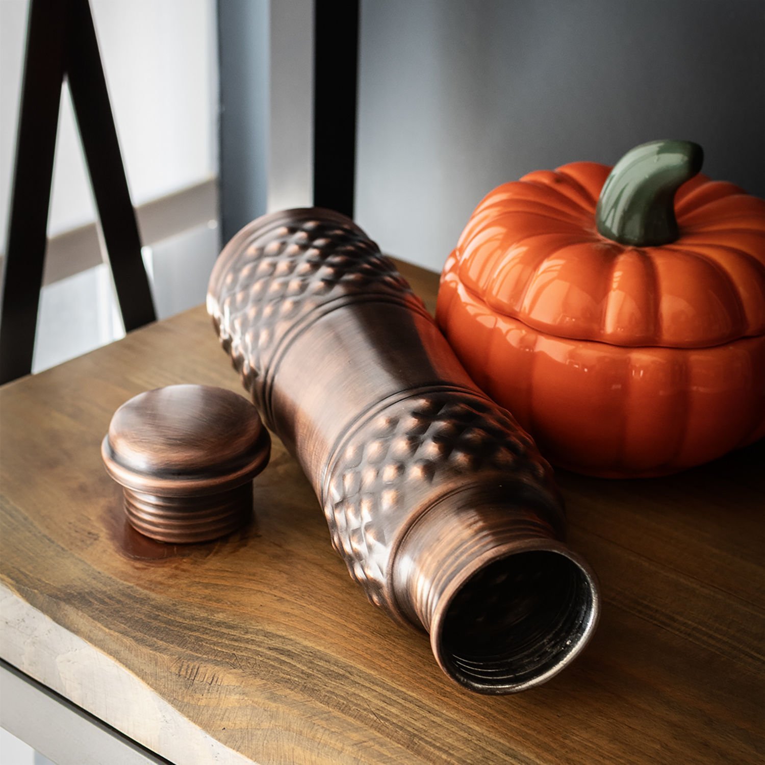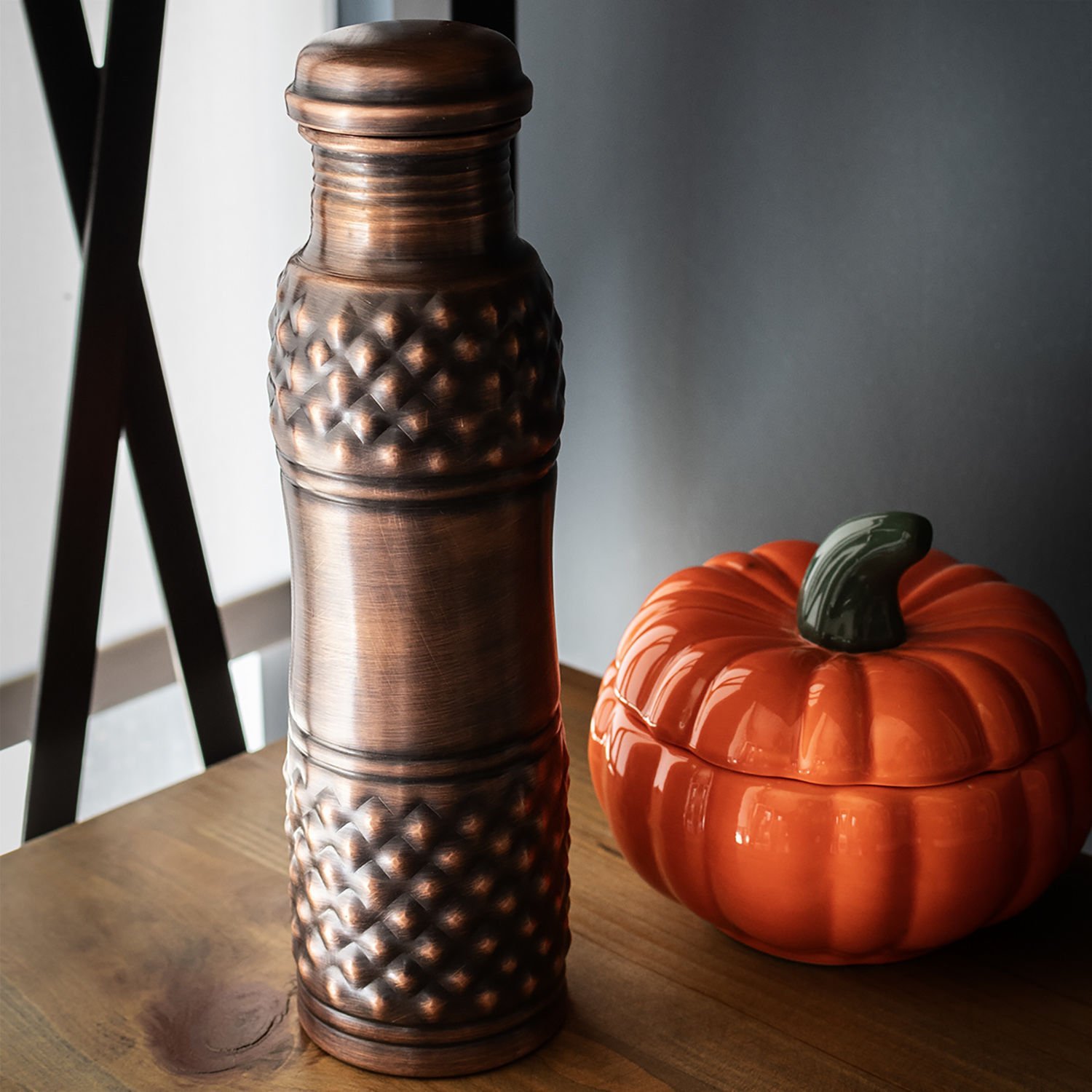 Handygoo Hand Keops Bakır Matara, su, meyve suyu, kokteyl ve benzeri tüm soğuk içeceklerinizi muhafaza etmenin, çantanızda taşımanın ve içmenin en yeni ve güzel yoludur. Kendi imalatımız olup kalın bakırdır ve %100 bakırdan üretilmiştir. İçi kalaylıdır. Sızdırma yapmaz. Sadece soğuk içecekler için tasarlanmıştır ve termos özelliği bulunmamaktadır. 800 ml hacminde olup, gövdesi ve üzerindeki piramit desenleri tamamen el yapımıdır. Bakır matara ürünümüzü, el çantanızda, sırt çantanızda vb. kolayca taşıyabilirsiniz.Bakır su içerisindeki bakteri, maktar vb. yaşam formlarını azaltarak daha sağlıklı su içme olanağı sağlamaktadır. Sizin için özel olarak tasarladığımız bakır matara ürünümüzü ücretsiz kargo fırsatı ile satın alabilir yada sevdiklerinize hediye edebilirsiniz.