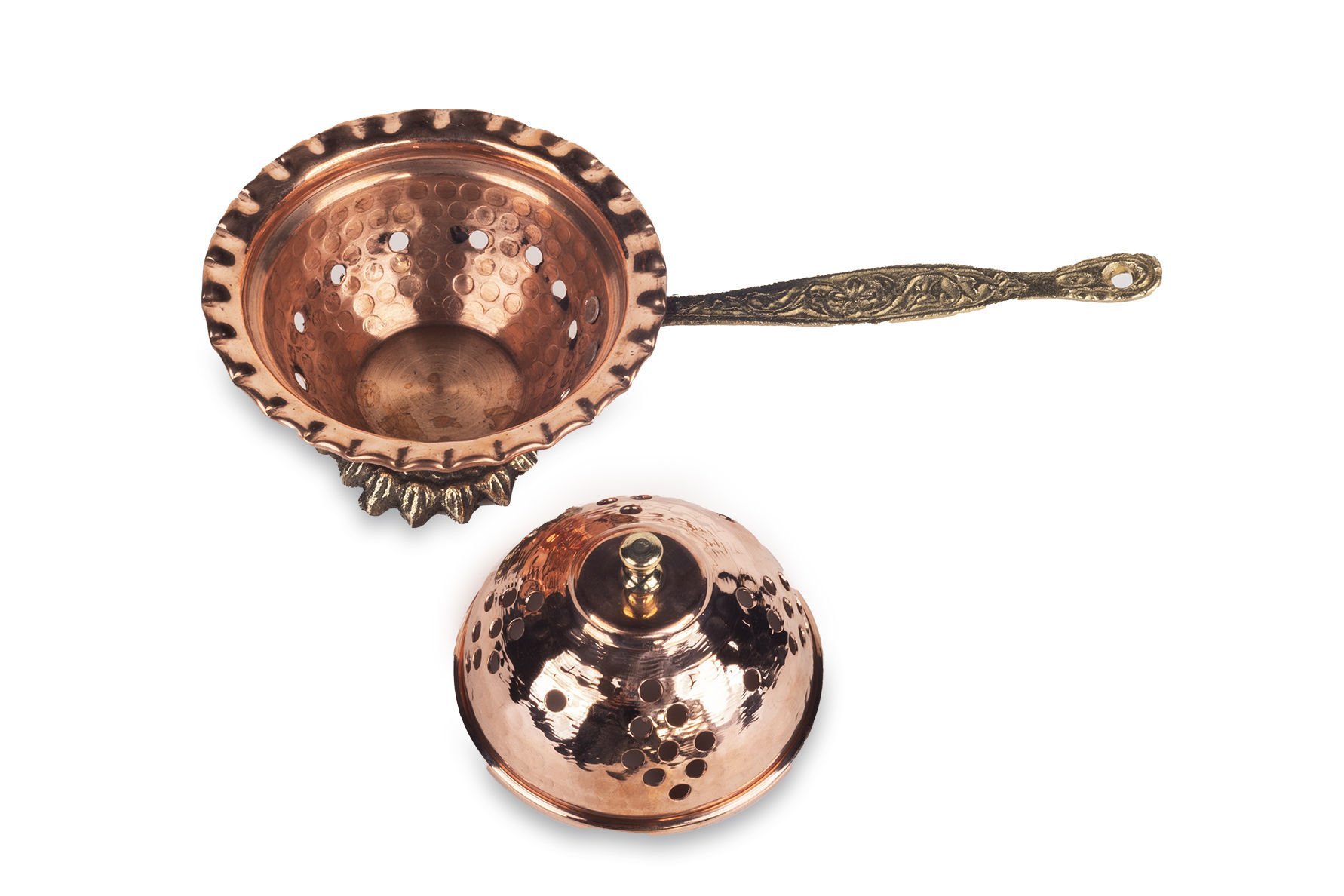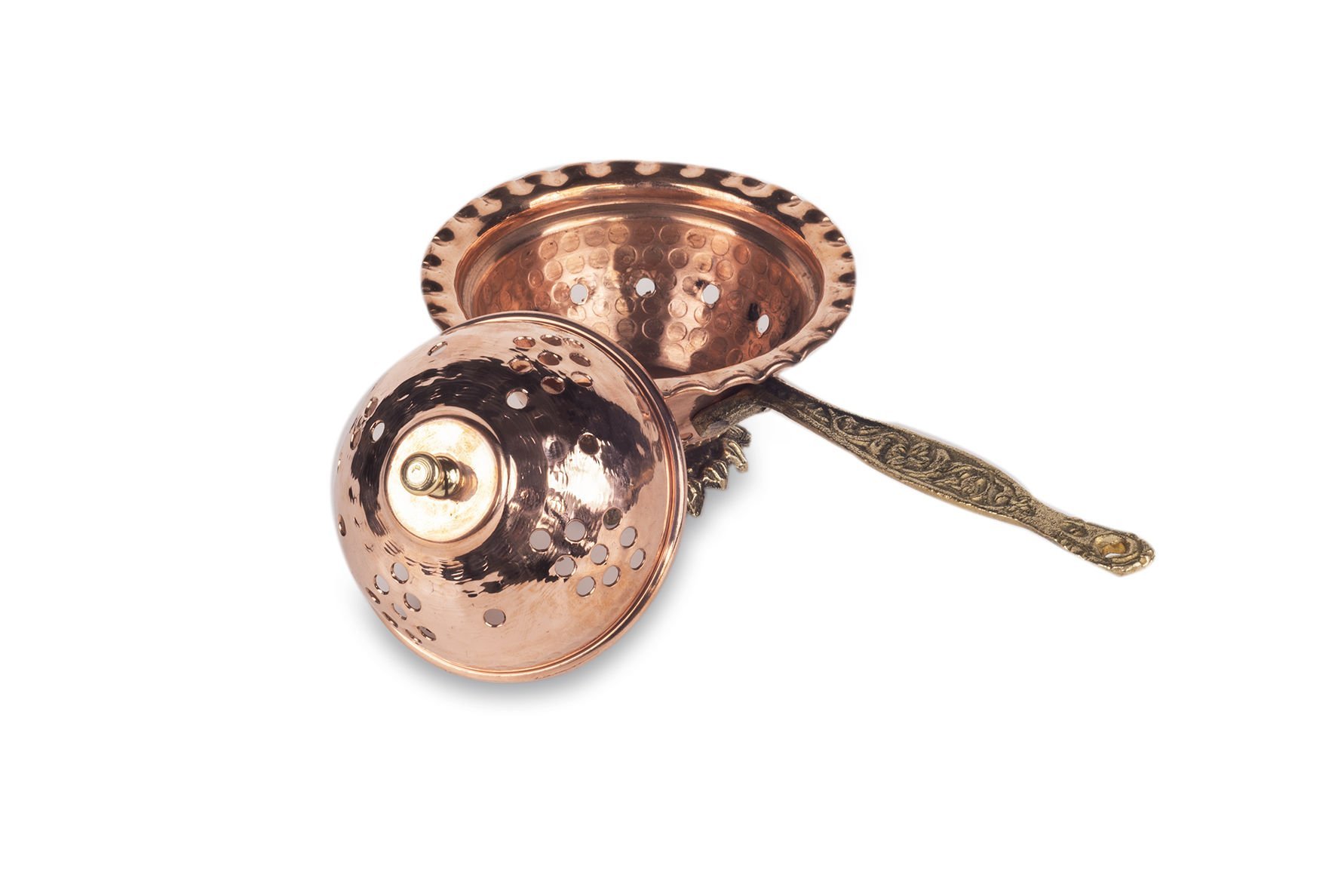 Handygoo Insence Bakır Tütsülük, reçine ve demet tütsülerinizi rahat bir şekilde kullanmanız ve kokularının ortama en güzel şekilde yayılmasını sağlamak için tasarlandı. Ayrıca zarif ve dekoratif görünümü ile görenleri kendisine hayran bırakmaktadır. Reçine ve demet tütsüler diğer tütsü türlerine göre daha uzun zamanda yanarlar. Ancak bir o kadar da keyifli, farklı duygular barındıran kokulara sahiptirler. Bakır tütsülük modelimizi kullanmanız bu tip tütsülerinizin kokularının her bir tınısını hissetmenizi sağlayacaktır. Buhur, sığla reçinesi, bereket tütsüsü, yedi dükkan süprüntüsü gibi demet ve reçine tütsülerinizi kolay bir şekilde yakabilir, istediğiniz her ortamda kullanabilirsiniz. Üzerindeki işlemeler G.Antep bakır işleme ustalarımız tarafından tamamen elde yapılan bakır tütsülük modelimiz ile çok farklı his ve deneyimler yaşayacak, tütsüleriniz ile negatif enerjiden kurtulacak ve kendinizi dingin ve huzurlu hissedeceksiniz.