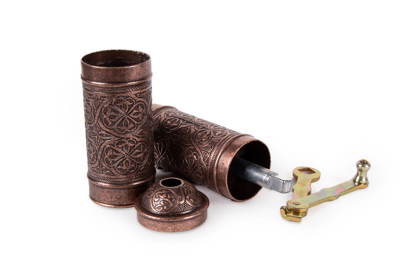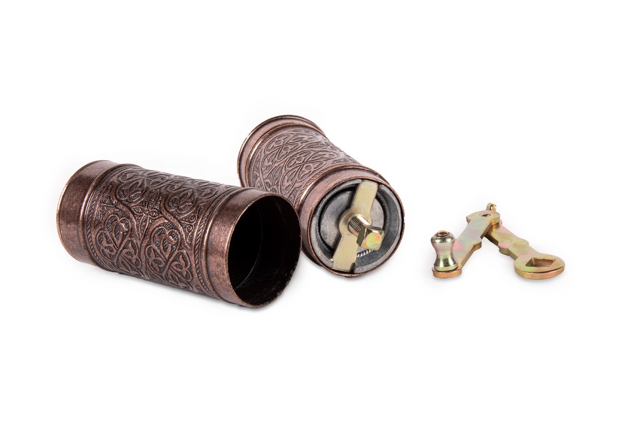 El yapımı ve olarak üretilmiş olan kahve değirmeni, kendi kahvenizi yada çekirdekli karabiber ve benzeri baharatlarınızı memnun kalacağınız en ideal boyutlarda çekmenizi ve öğütebilmeniz için tasarlanmıştır. 21,5 cm boy ve 4,5 cm çap ölçüsüne sahip kahve değirmeni, çekirdek kahvenizi özellikle Türk kahvesine uygun şekilde çekmektedir. 40 gram öğütülmüş kahve kapasitesine sahip olan ürün, çekme vidası, öğütme haznesi, sap ve kapak parçalarından oluşmaktadır. Değirmeni ayırdığınızda çekme vidası ve öğütme haznesini görebilirsiniz. Geleneksel bir yöntemin vazgeçilmez bir kıymeti olan değirmeni, çekirdek kahvenin öğütülmüş forma geçmesi esnasındaki tüm keyfi size yaşatacağından emin olabilirsiniz. Bakır üretimi olmasından dolayı son derece dayanıklı olup uzun zaman keyifle ve aynı istikrar ile kullanabilirsiniz.