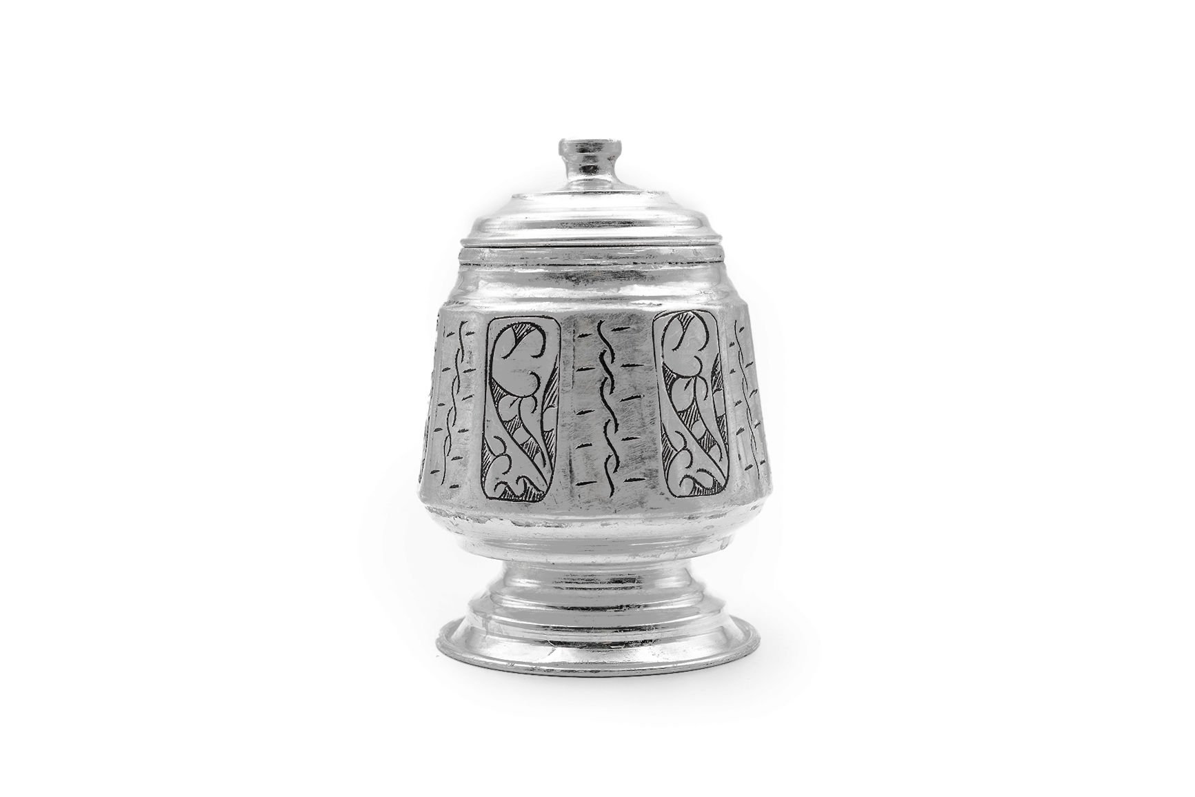 Handygoo Kalaylı Dilimli Bakır Şekerlik, %100 bakır ve üzerindeki nakışlar el işlemesidir. Dekoratif görünümü ile çay ve benzeri servis ve sunumlarınız için tasarlanmıştır. Kendi imalatımız olan bakır şekerlik modelimiz, 10 cm çap,9 cm derinlik ve toplam 12 cm yükseklie sahiptir. Toz ve küp şeker kullanımına uygundur. Ücretsiz kargo fırsatı ile satın alabileceğiniz ürünümüzü, sevdiklerinize hediye olarak da düşünebilirsiniz.