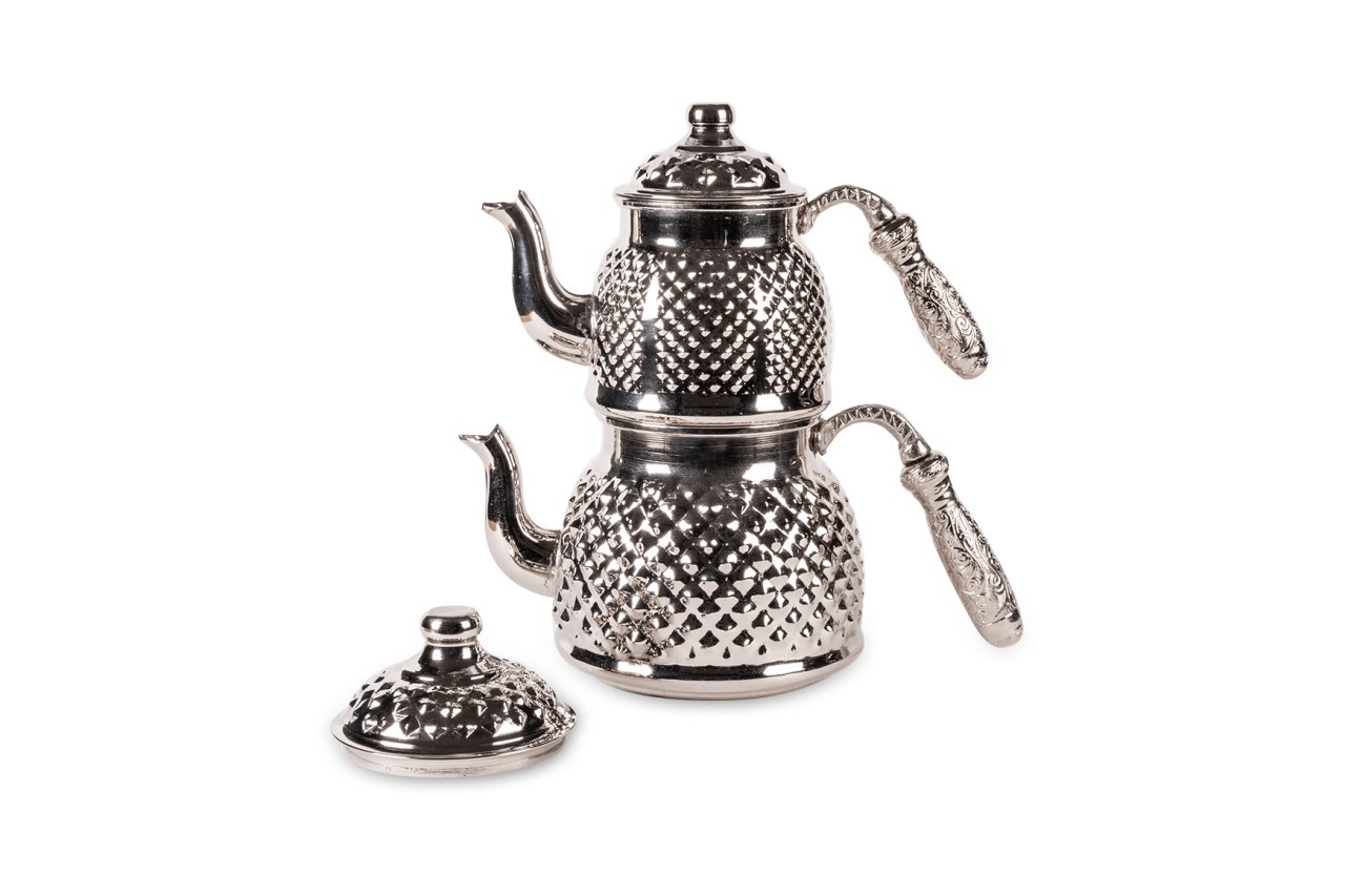 Handygoo Keops Bakır Çaydanlık, bakır çaydanlık modellerinde yeni bir nefes, farklı bir tarz. Lezzetli çaylar demlemeniz için tasarlandı. Kahvaltıda, ara öğünlerde, yemekten sonra, tatlının yanında...Hiç şüphesiz çay içmenin yeri ve zamanı yoktur. Bu doğrultuda da çay, pek çok insan için önem verilen içeceklerin başında gelir. Gün içerisinde kimi zaman bir bardak, kimi zaman ise bir demlik çay içilebilmektedir. Ortak bir çay demleme yöntemi bulunmamaktadır ancak bilindiği üzere bakır ürünlerde demlenen, servis edilen her içeceğin lezzetinin arttığı bir gerçektir. Çayınızı demlerken, bu ürün, şık ve otantik görüntüsü ile yine fark yaratmanızı sağlayacaktır. Klasik ürün modelinde yani iki ana kısımdan oluşmaktadır. Her iki kısım üzerinde ham bakır üzerine ustaca ve sabırla işlenmiş, piramit şekilleri yer almaktadır. Her iki parçanın da birbirinden bağımsız kapakları yer almaktadır. Kulplar son derece şık ve göz alıcıdır. Bakır çaydanlık, evinize, ofisinize yada bulunduğunuz herhangi bir mekana zerafet ve şıklık getirecektir. Kendiniz yada hediye ettiğiniz sevdikleriniz çaylarını iki kat kayif ile yudumlayacaklardır. Çaydanlık su haznesi 1,8 litre su almaktadır. Üst demlik ise 0,8 lt su almaktadır. Kalın bakırdan üretilmiştir ve ağırlığı 1 kg (+50)(-50) dır. Parlak görünümü için nikelajlanmıştır.
