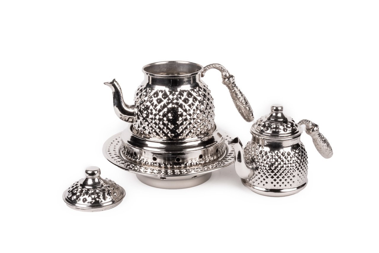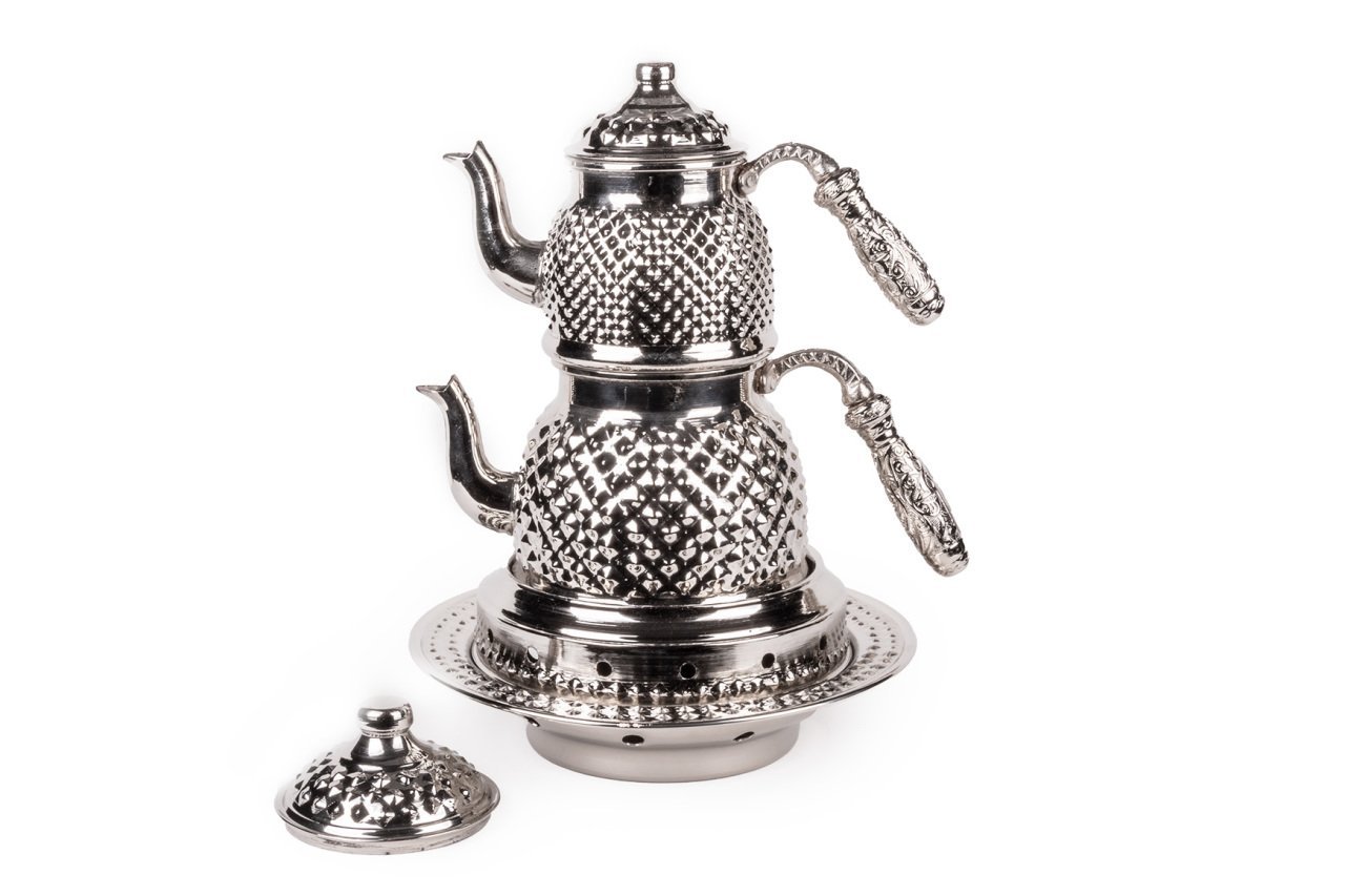 Handygoo Dark Keops Bakır Çaydanlık ve Balkon Sefası, bakır çaydanlık modellerinde yeni bir nefes, farklı bir tarz. Lezzetli çaylar demlemeniz için tasarlandı. Kahvaltıda, ara öğünlerde, yemekten sonra, tatlının yanında...Hiç şüphesiz çay içmenin yeri ve zamanı yoktur. Bu doğrultuda da çay, pek çok insan için önem verilen içeceklerin başında gelir. Gün içerisinde kimi zaman bir bardak, kimi zaman ise bir demlik çay içilebilmektedir. Ortak bir çay demleme yöntemi bulunmamaktadır ancak bilindiği üzere bakır ürünlerde demlenen, servis edilen her içeceğin lezzetinin arttığı bir gerçektir. Çayınızı demlerken, bu ürün, şık ve otantik görüntüsü ile yine fark yaratmanızı sağlayacaktır. Ürün bakır çaydanlık ve kendisi ile takım balkon sefası ile birlikte satılmaktadır. Bakır çaydanlık iki ana kısımdan oluşmaktadır. Her iki kısım üzerinde ham bakır üzerine ustaca ve sabırla işlenmiş, piramit şekilleri yer almaktadır. Her iki parçanın da birbirinden bağımsız kapakları yer almaktadır. Kulplar son derece şık ve göz alıcıdır. Bakır çaydanlık, evinize, ofisinize yada bulunduğunuz herhangi bir mekana zerafet ve şıklık getirecektir. Kendiniz yada hediye ettiğiniz sevdikleriniz çaylarını iki kat keyif ile yudumlayacaklardır. Çaydanlık su haznesi 1,8 litre su almaktadır. Üst demlik ise 0,8 lt su almaktadır. Kalın bakırdan üretilmiştir ve ağırlığı 1 kg (+50)(-50) dır. Balkon sefası iç çapı 16 cm iken, dış çapı 24 cm dir. Bakır balkon sefası yüksekliği 11 cm dir. Bakır balkon sefası, özellikle çay servisiniz esnasında çaydanlıklarınızın ısısını kaybetmemesi için tasarlandı. Özellikle bakır çaydanlık ürünleri ile bir bütün oluştururken dilerseniz porselen yada emaye demlik ve çaydanlıklarınız ile de rahatlıkla kullanabilirsiniz. Altında mumluk alanı yer alan ürün sayesinde tea light mumlarınız yada jel ile size hem romantik bir ortam sağlayacak, hem de enfes çay ve benzeri içecek ikramlarınız her daim sıcak kalacak.