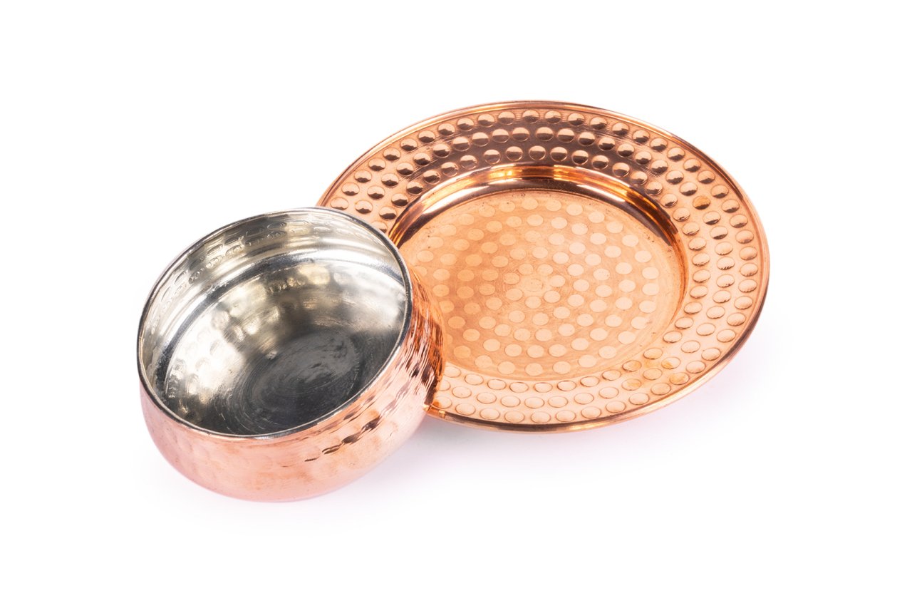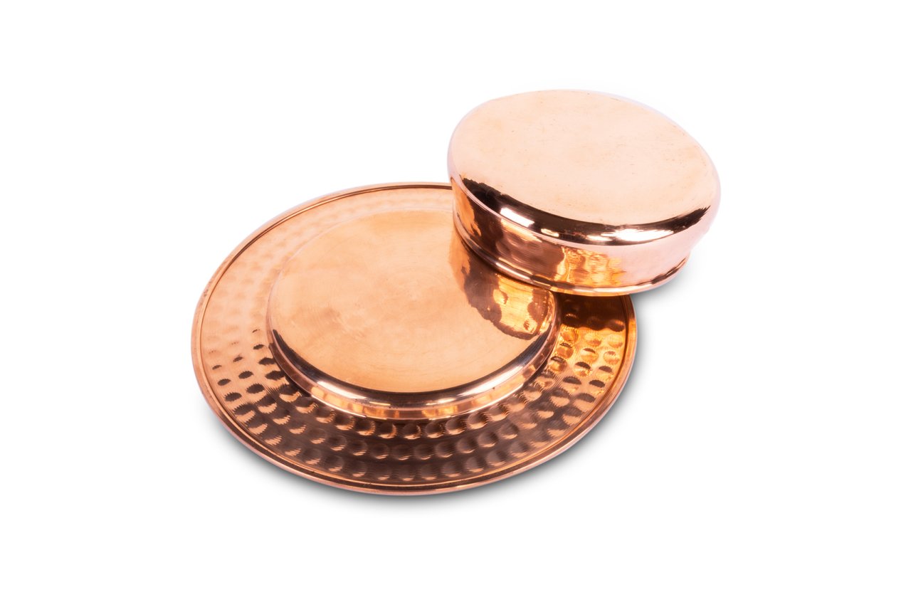 Handygoo Kırmızı Dövme Bakır Çerezlik, çerez başta olmak üzere tüm küçük çaplı servisleriniz için ürettiğimiz yeni modelimizdir. Elde çekiçleme ile tamamen el yapımı olarak ürettiğimiz dövme bakır çerezliğimiz tabak ve çerezlik kısmı olarak iki bölümden oluşmaktadır. Tabak kısmı çapı 16,5 cm çapındadır. Çerezlik kısmının çapı 9,5 cm iken yüksekliği 3 cm'dir. Ürünün toplam yüksekliği 4,5 cm'dir. Dövme bakır çerezlik modelimiz kalın bakırdan üretilmiş olup sunum ve servislerinizde son derece şık görüntüsü ile fark yaratacaktır. Ürünümüz diğer tüm bakır ürünlerimizle uyumludur.