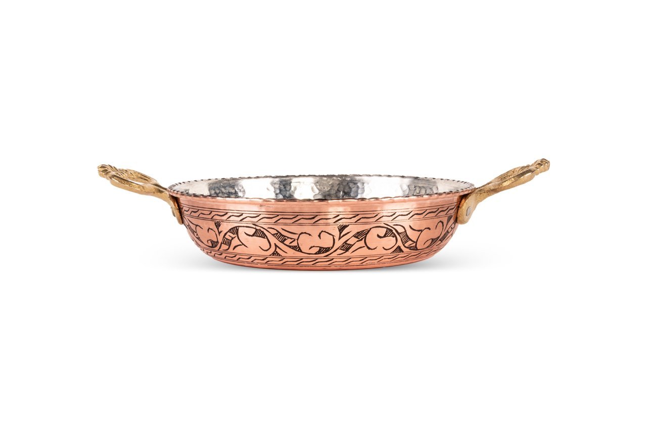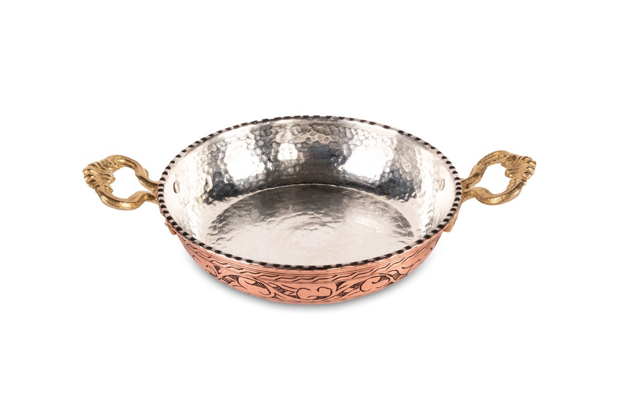 Handygoo Kırmızı Eskitme El İşlemesi Bakır Sahan, Gaziantep bakır el işlemesi örneklerini üzerinde taşımaktadır. %100 bakır kullanılarak tarafımızca üretilmiştir. İçi kalaylıdır ve günlük kullanıma uygundur. Kalın olduğu için yapışma yapmamaktadır. Bakır sahan modelimizin kulpları pirinç döküm malzemeden yapılmıştır. Sitemizde ürünümüzün üç farklı boy seçeneği mevcuttur.