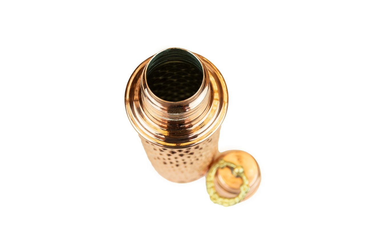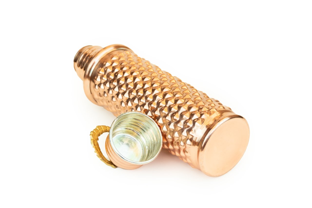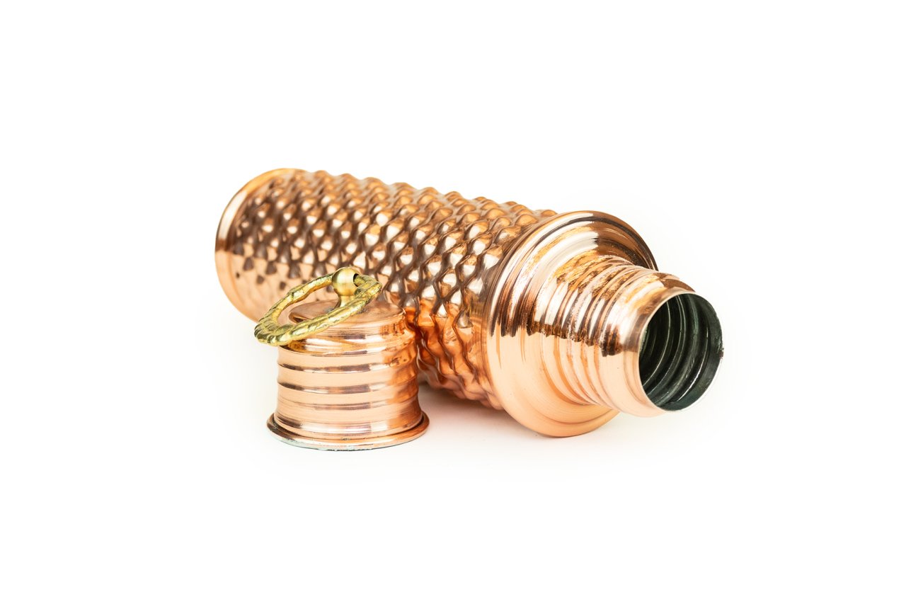 El yapımı olarak üretilmiş olan Handygoo Kırmızı Keops Bakır Su Matarası, evde, ofis de, çantanızda kısacası artık her yerde. Üzerindeki piramit şeklinde kabartmaları sizin için özel olarak tasarlandı. Sağlığımız için günde bol miktarda su tüketmek son derece önemli. Şimdi suyunuzu bu el yapımı bakır su matarası ile tüketmek hem sağlıklı hem de çok havalı. Günümüzde pek çok su arıtma metodu bulunmakta olup herkes tarafından kullanılmamaktadır. Ancak pek çok kaynaktan da erişebileceğiniz ve inceleyebileceğiniz üzere, bakırın su üzerinde pek çok olumlu etkisinden bahsedilmektedir. Bunlar için de en önemlileri su içerisindeki bakteri, küf ve mantar gibi yaşamların bakır kullanımında azalıyor olması ve su içmeyi daha sağlıklı hale getiriyor olmasıdır. El yapımı bakır su matarası boyu kapak kısmı ile 28,5 cm olup, kapaksız 24 cm dir. 750 ml su almaktadır. Çapı 6,5 cm dir. Ağız çapı ise 3,5 cm dir. İç kısmı güvenle kullanmanız için tamamen kalaylanmıştır. El yapımı ürün, pet şişelerin yada plastik ürünler ile kıyaslanamayacak şekilde şık ve ilgi çekici. Kendinizden söz ettirmek isteyenler için tasarlandı ve üretildi.