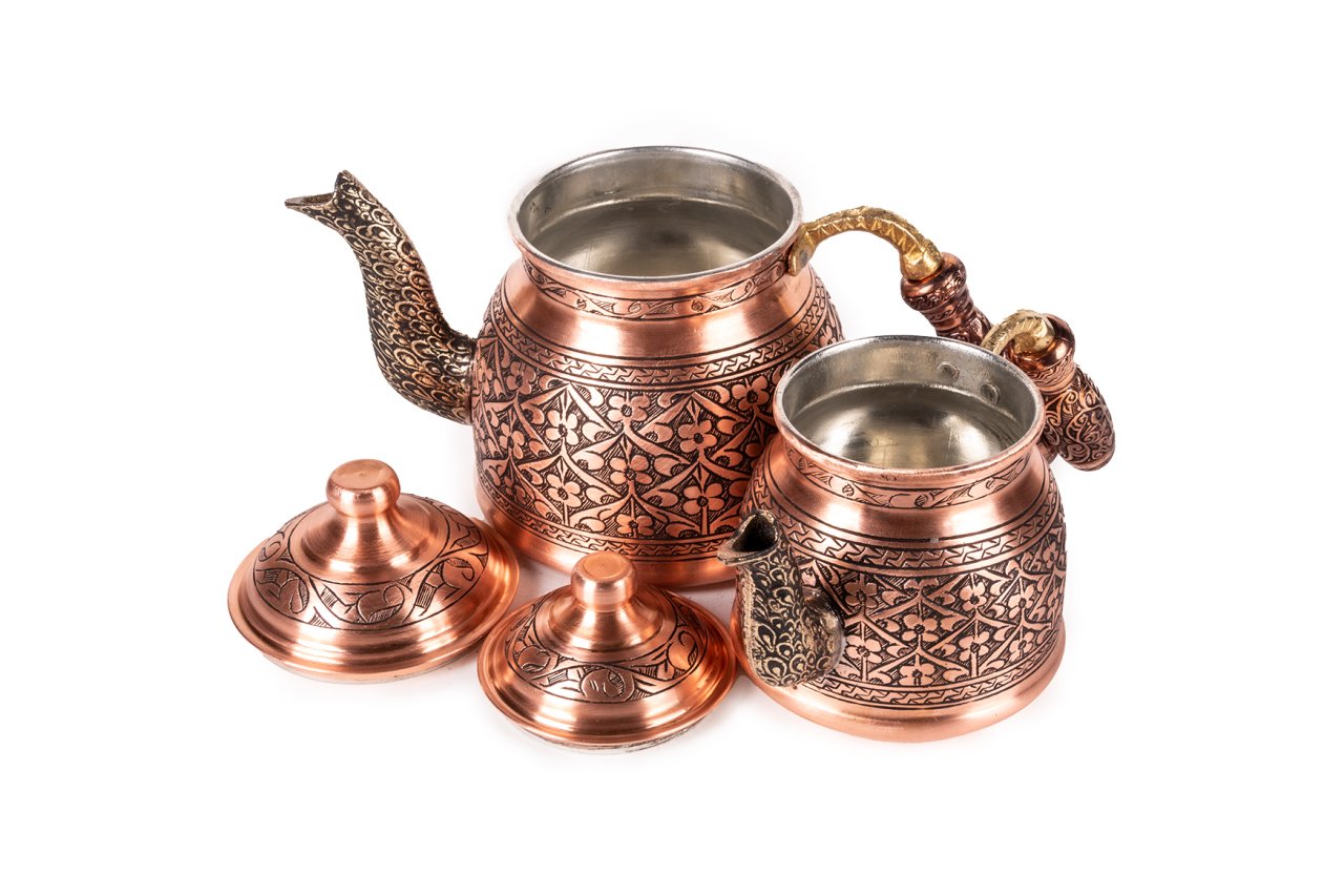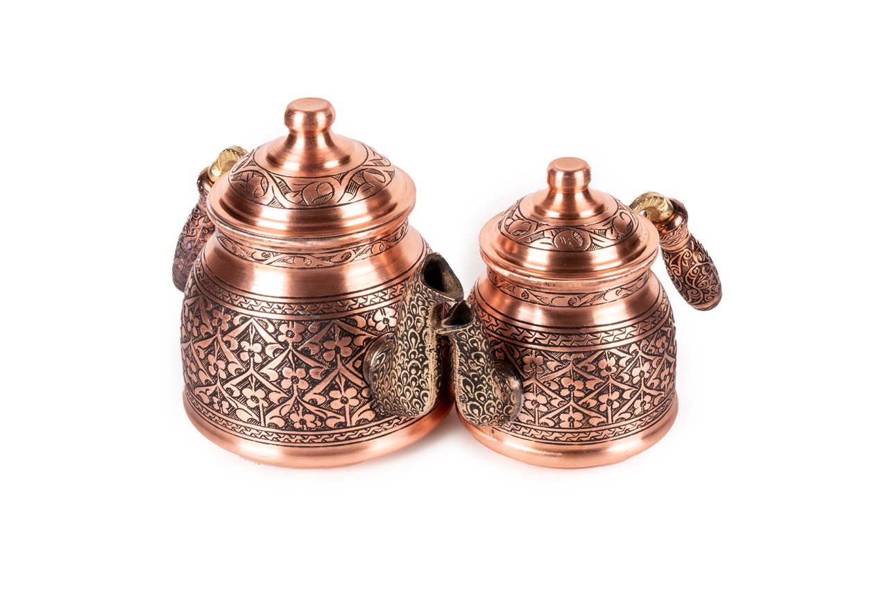 Handygoo Kırmızı Papatya Bahçesi Bakır Çaydanlık, lezzetli çaylar demlemeniz için kırmızı eskitme olarak tasarlandı. Bakır çaydanlık, kahvaltıda, ara öğünlerde, yemekten sonra, tatlının yanında...Hiç şüphesiz çay içmenin yeri ve zamanı yoktur. Bu doğrultuda da çay, pek çok insan için önem verilen içeceklerin başında gelir. Gün içerisinde kimi zaman bir bardak, kimi zaman ise bir demlik çay içilebilmektedir. Ortak bir çay demleme yöntemi bulunmamaktadır ancak bilindiği üzere bakır ürünlerde demlenen, servis edilen her içeceğin lezzetinin arttığı bir gerçektir. Çayınızı demlerken, bu ürün, şık ve otantik görüntüsü ile yine fark yaratmanızı sağlayacaktır. Klasik ürün modelinde yani iki ana kısımdan oluşmaktadır. Her iki kısım üzerinde ham bakır üzerine ustaca ve sabırla işlenmiş, harmoni oluşturan çiçek desen ve işlemeleri bulunmaktadır. Su ve demlik haznelerinin uçlarındaki işlemeler ise daha da detaylandırılmış ancak bu detaylar çaydanlık üzerindeki ana desenler ile son derece uyumlu hale getirilmiştir. Her iki parçanın da birbirinden bağımsız kapakları yer almaktadır. Eskitme olarak tasarlanmış çaydanlığın kulplarıda yine eskitme olarak tasarlanmıştır. Bakır çaydanlık, evinize, ofisinize yada bulunduğunuz herhangi bir mekana zerafet ve şıklık getirecektir. Kendiniz yada hediye ettiğiniz sevdikleriniz çaylarını iki kat kayif ile yudumlayacaklardır. Çaydanlık su haznesi 1,8 litre su almaktadır. Üst demlik ise 0,8 lt su almaktadır.4-6 kişilik kullanım için son derece idealdir. Kalın bakırdan üretilmiştir ve ağırlığı 1 kg (+50)(-50) dır.