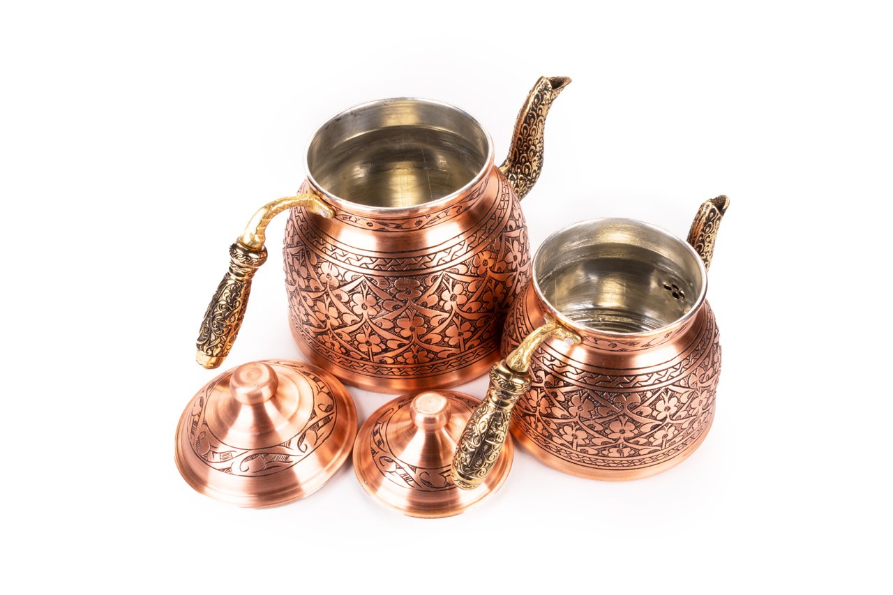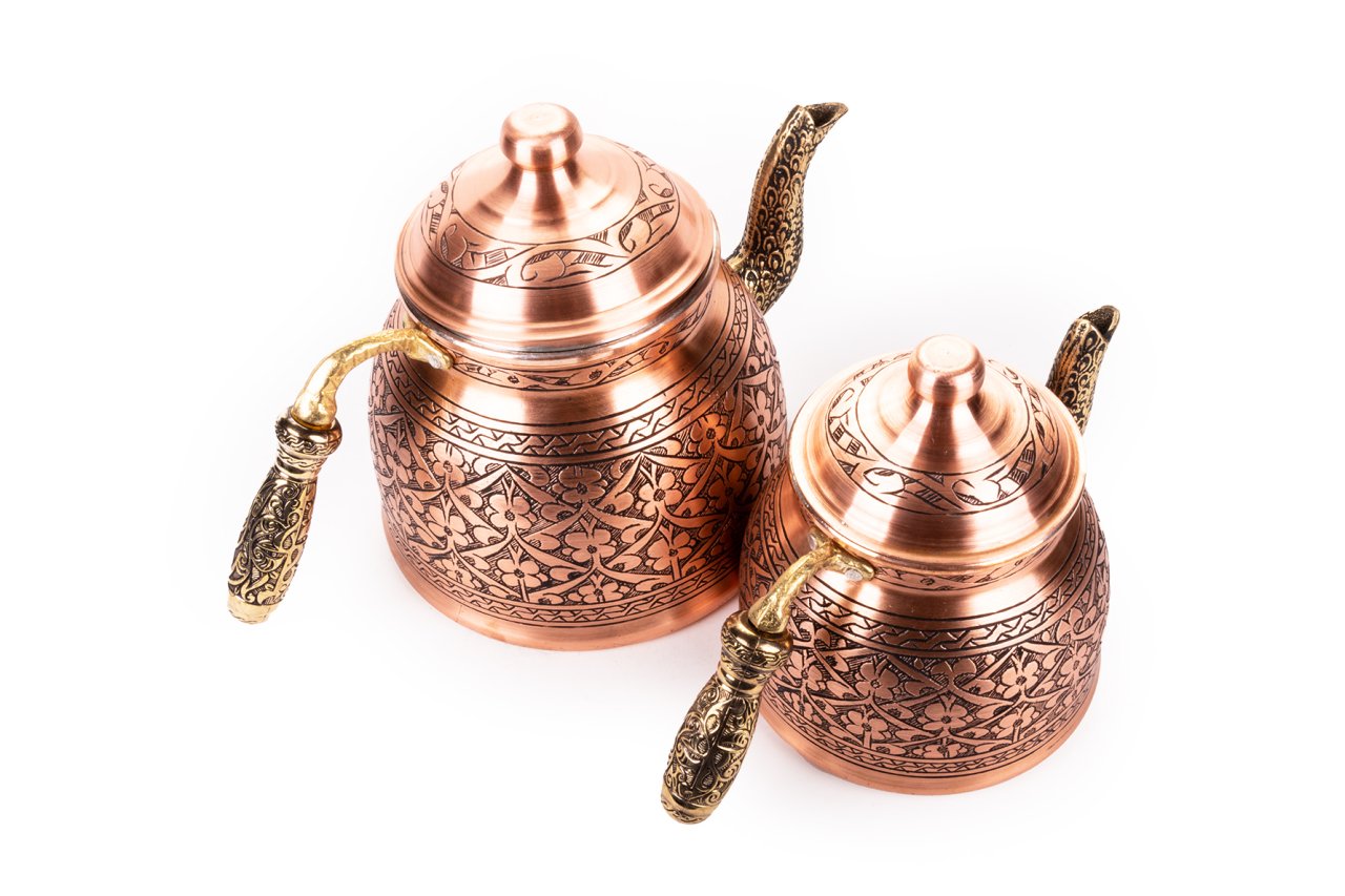 Handygoo Kırmızı Papatya Bahçesi Büyük Bakır Çaydanlık, lezzetli çaylar demlemeniz için kırmızı eskitme olarak tasarlandı. Bakır çaydanlık, kahvaltıda, ara öğünlerde, yemekten sonra, tatlının yanında...Hiç şüphesiz çay içmenin yeri ve zamanı yoktur. Bu doğrultuda da çay, pek çok insan için önem verilen içeceklerin başında gelir. Gün içerisinde kimi zaman bir bardak, kimi zaman ise bir demlik çay içilebilmektedir. Ortak bir çay demleme yöntemi bulunmamaktadır ancak bilindiği üzere bakır ürünlerde demlenen, servis edilen her içeceğin lezzetinin arttığı bir gerçektir. Çayınızı demlerken, bu ürün, şık ve otantik görüntüsü ile yine fark yaratmanızı sağlayacaktır. Klasik ürün modelinde yani iki ana kısımdan oluşmaktadır. Her iki kısım üzerinde ham bakır üzerine ustaca ve sabırla işlenmiş, harmoni oluşturan çiçek desen ve işlemeleri bulunmaktadır. Su ve demlik haznelerinin uçlarındaki işlemeler ise daha da detaylandırılmış ancak bu detaylar çaydanlık üzerindeki ana desenler ile son derece uyumlu hale getirilmiştir. Her iki parçanın da birbirinden bağımsız kapakları yer almaktadır. Eskitme olarak tasarlanmış çaydanlığın kulpları da yine eskitme olarak tasarlanmıştır. Bakır çaydanlık, evinize, ofisinize yada bulunduğunuz herhangi bir mekana zerafet ve şıklık getirecektir. Kendiniz yada hediye ettiğiniz sevdikleriniz çaylarını iki kat kayif ile yudumlayacaklardır. Çaydanlık su haznesi 2,8 litre su almaktadır. Üst demlik ise 1,8 lt su almaktadır. Geniş aileler ve işyerleriniz için son derece idealdir.