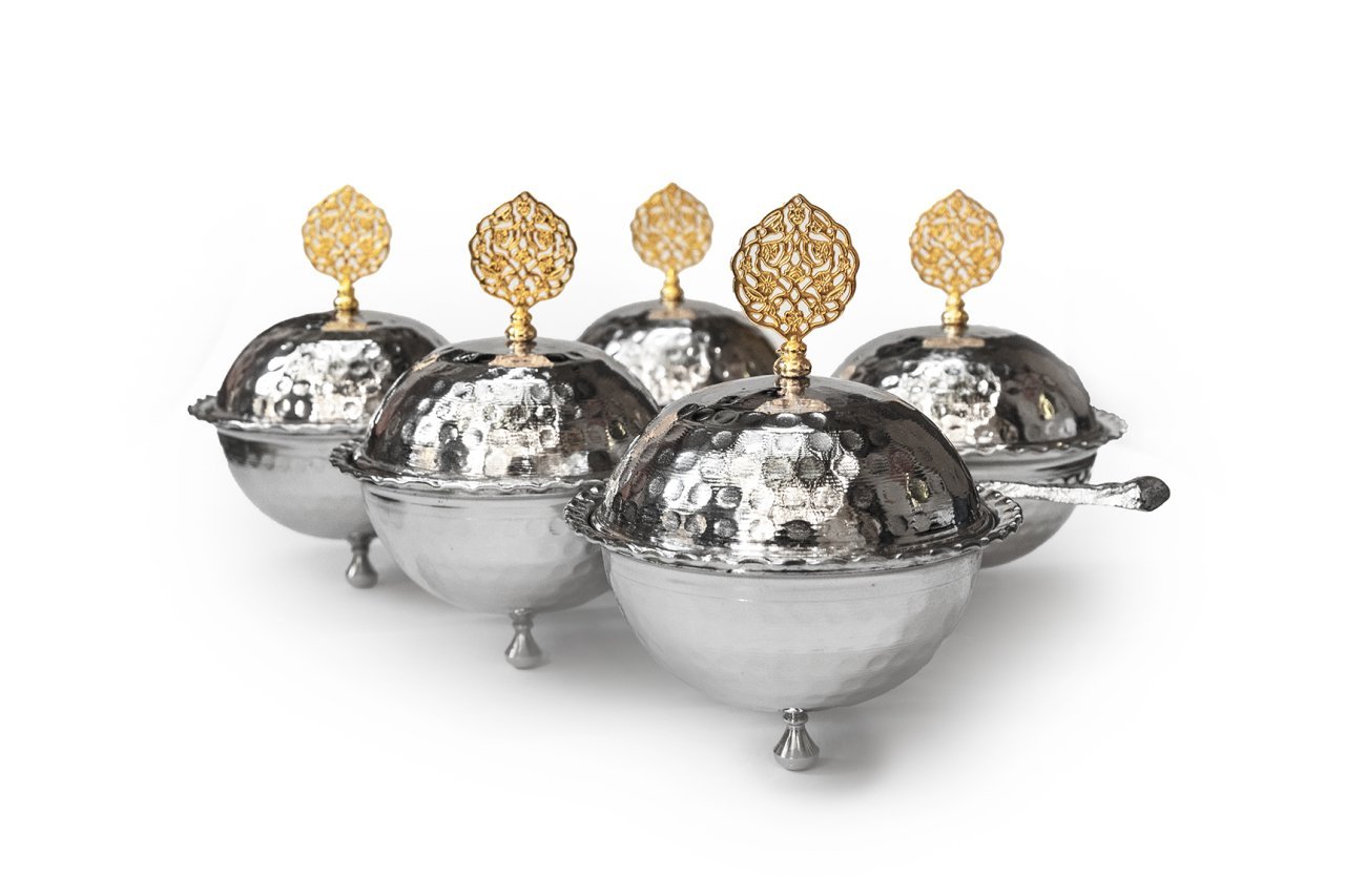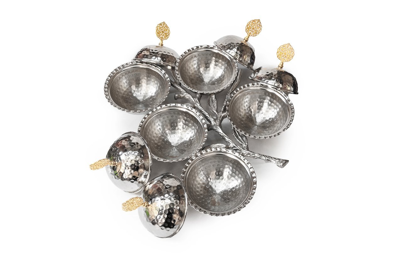 Handygoo Leaf Shaped Dövme Bakır Çerezlik, sunumlarınız için tasarladığımız bakır çerezlik setimizdir. yepyeni bir tarza sahip olmak isteyenler için tasarladığımız ürünümüz, aynı zamanda şekerlik vb. sunumlarınız içinde kullanılabilir. Dövme bakır çerezlik ürünümüz kalın bakırdan üretilmiştir ve kendi imalatımızdır. Parlak görünümü için nikelajlanmış olup kararma yapmamaktadır. Bakır çerezlik ürünümüzün her bir çerezlik çapı 10,5 cm, yüksekliği ise 3,5 cm dir. Ürünümüzün toplam yüksekliği 11,5 cm olup boyu 31 cm, eni ise 25 cm ölçülerine sahiptir. Sunumlarınız için ideal boyutlarda ürettiğimiz ürünümüzde, çerezlik başlıkları döküm malzemeden üretilmiştir. Ürünümüz, Gaziantep'li bakır ustalarımız tarafından elde dövülmüş olup tamamen el yapımıdır. Sitemizde yer alan diğer tüm bakır ürünlerimiz ile kombin edilebilir. Evinize ve iş yerlerinize bambaşka bir hava getirecek olan ürünümüzü aynı zamanda sevdiklerinize hediye de edebilirsiniz. Tüm kredi karları ile güvenle alışveriş yapabileceğiniz sitemizde tüm ürün kategorilerini incelemenizi tavsiye ederiz.