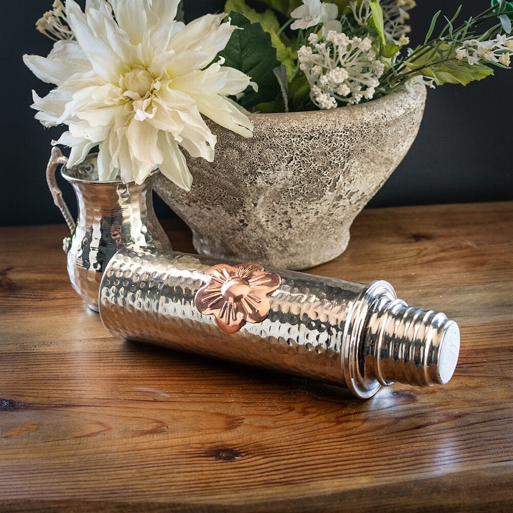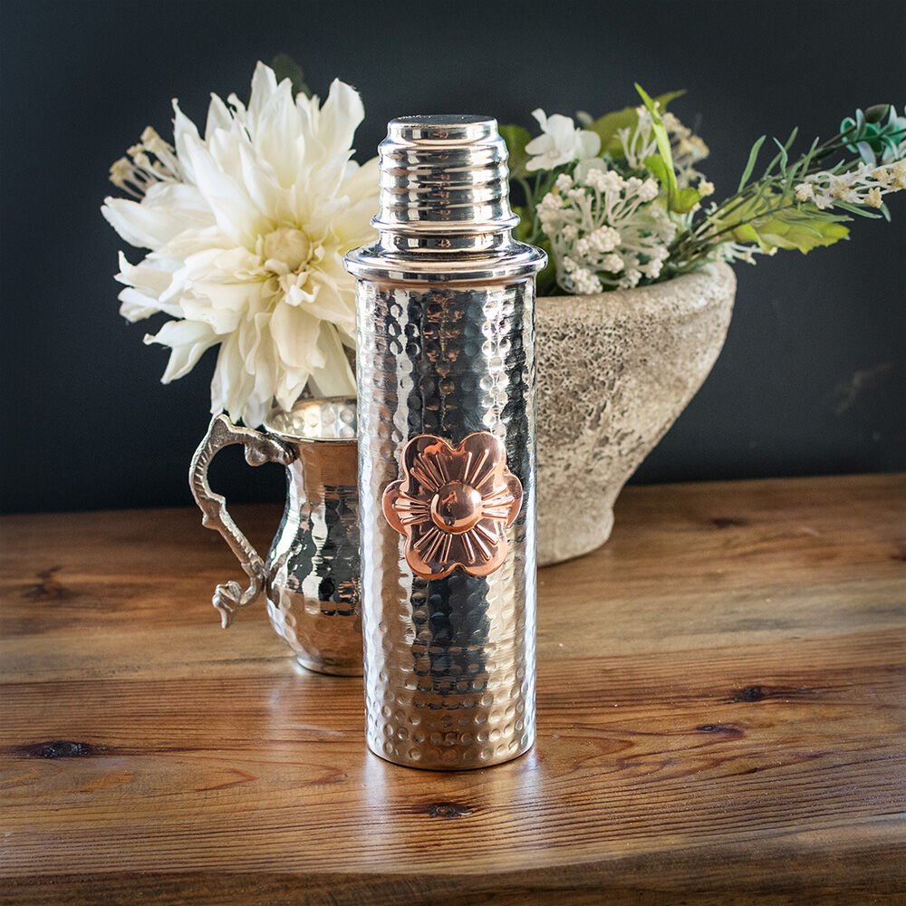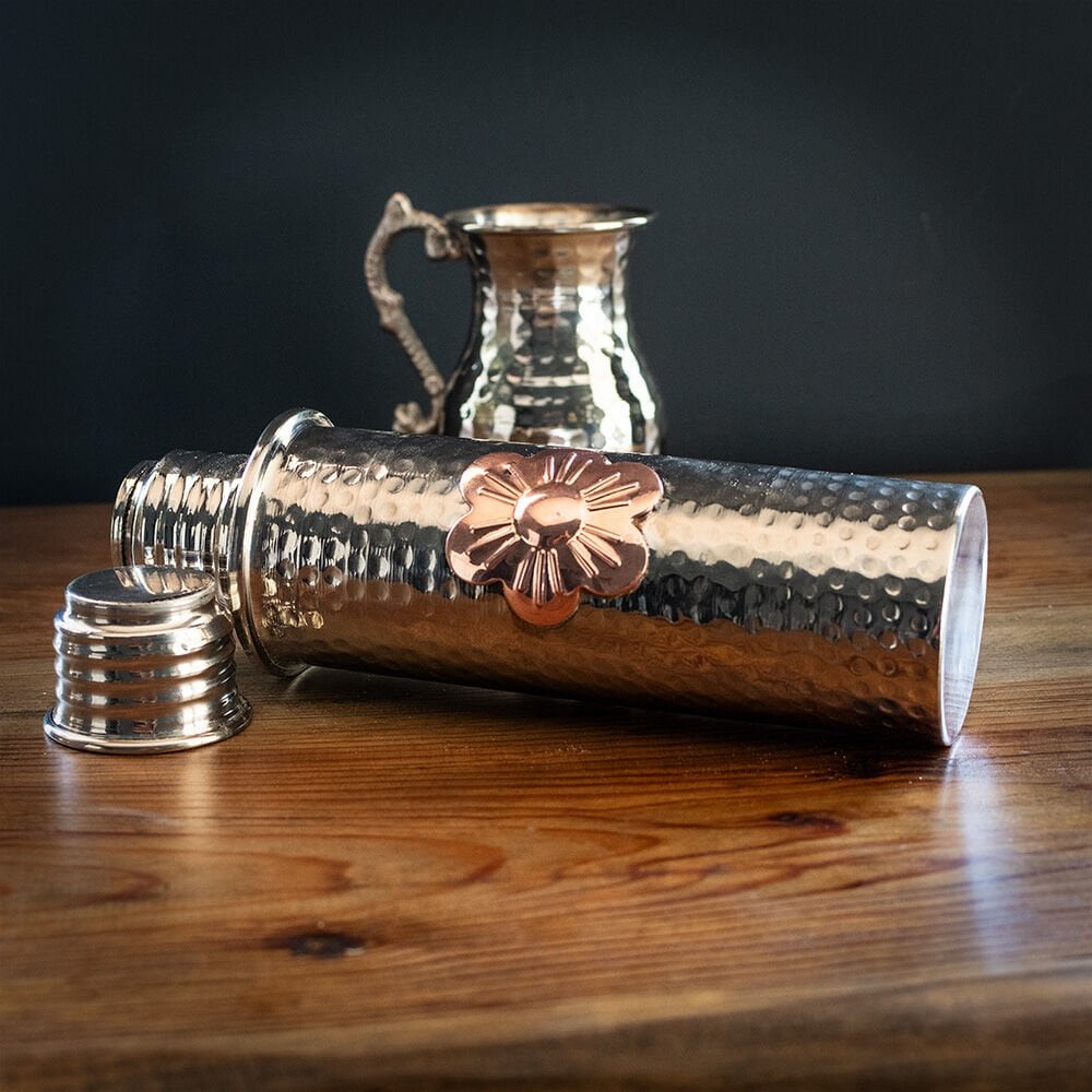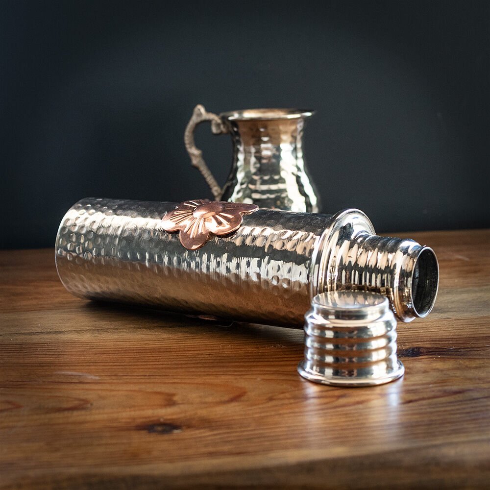 El yapımı ve dövme bakır tekniği ile tasarlanmış olan Handygoo Lisa Dövme Bakır Su Matarası, evde, ofisde, çantanızda kısacası artık her yerde. Sağlığımız için günde bol miktarda su tüketmek son derece önemli. Şimdi suyunuzu bu el yapımı bakır su matarası ile tüketmek hem sağlıklı hem de çok havalı. Günümüzde pek çok su arıtma metodu bulunmakta olup herkes tarafından kullanılmamaktadır. Ancak pek çok kaynaktan da erişebileceğiniz ve inceleyebileceğiniz üzere, bakırın su üzerinde pek çok olumlu etkisinden bahsedilmektedir. Bunlar için de en önemlileri su içerisindeki bakteri, küf ve mantar gibi yaşamların bakır kullanımında azalıyor olması ve su içmeyi daha sağlıklı hale getiriyor olmasıdır. El yapımı bakır su matarası boyu kapak kısmı ile 28,5 cm olup, kapaksız 24 cm dir. 750 ml su almaktadır. Çapı 6,5 cm dir. Ağız çapı ise 3,5 cm dir. İç kısmı güvenle kullanmanız için tamamen kalaylanmıştır. El yapımı ürün, pet şişelerin yada plastik ürünler ile kıyaslanamayacak şekilde şık ve ilgi çekici. Kendinizden söz ettirmek isteyenler için tasarlandı ve üretildi.
