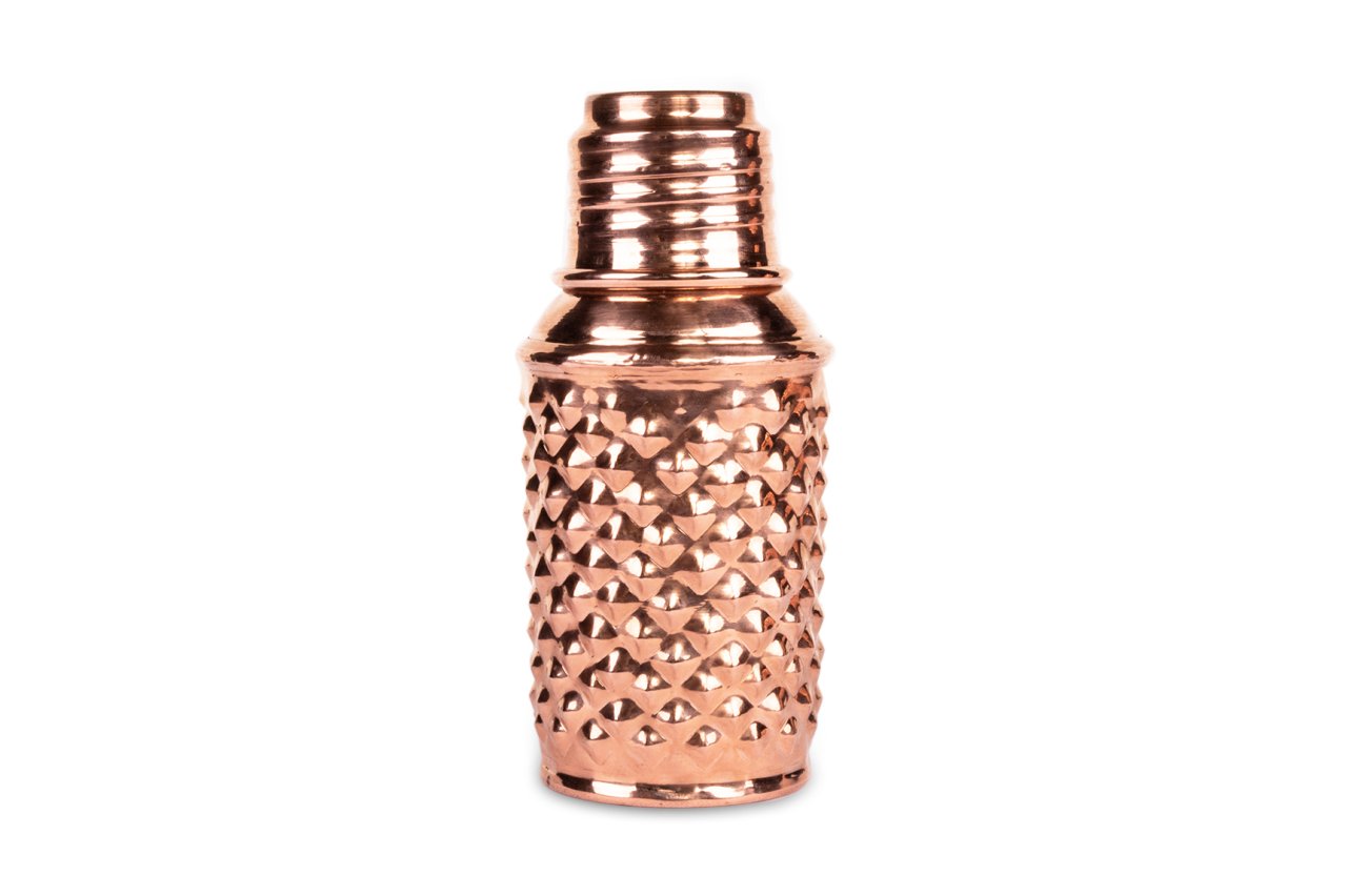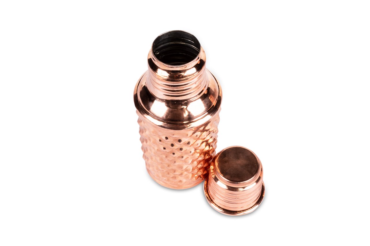 Handygoo Little Bottle Bakır Matara, su, meyve suyu, kokteyl ve benzeri tüm soğuk içeceklerinizi muhafaza etmenin, çantanızda taşımanın ve içmenin en yeni, en havalı yoludur. Kendi imalatımız olup %100 bakırdan üretilmiştir. İçi kalaylıdır. Sızdırma yapmaz. Sadece soğuk içecekler için tasarlanmıştır ve termos özelliği bulunmamaktadır. 400 ml hacminde olup, üzerindeki piramit desenleri ve gövdesi tamamen el yapımıdır. Bakır matara ürünümüzü, 6,5 cm taban çapı ve 17 cm boy ölçüsü ile el çantanızda, sırt çantanızda kolayca taşıyabilirsiniz.
