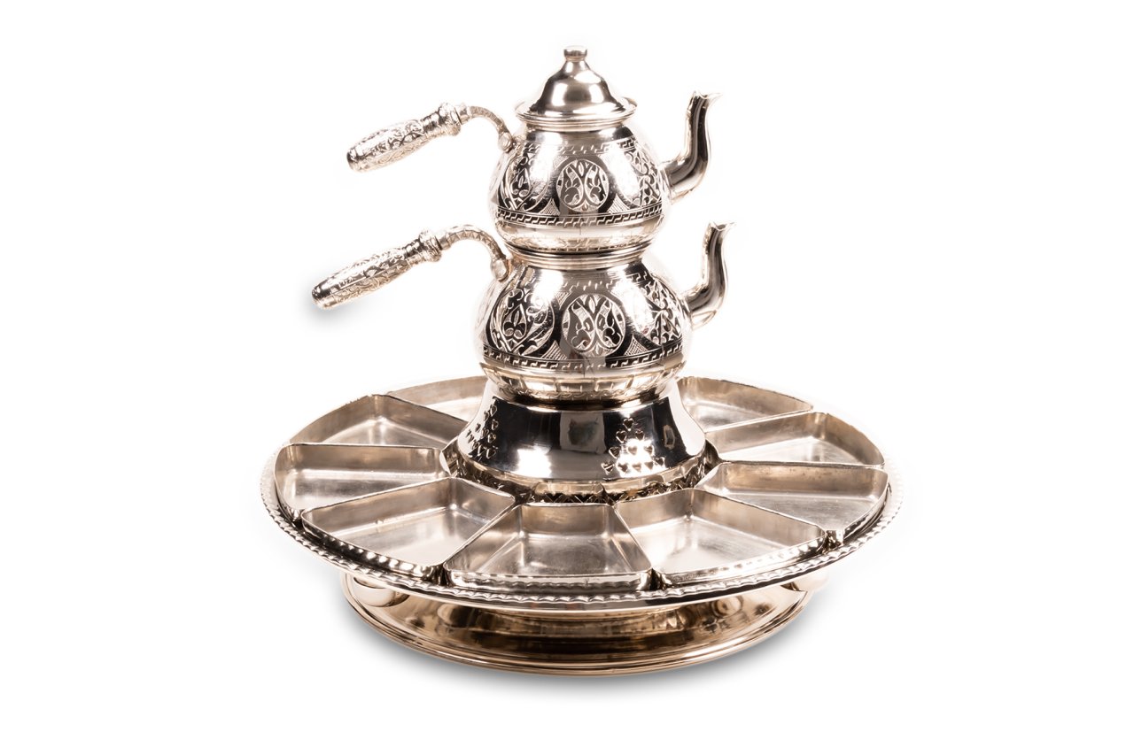 Handygoo Lucky of Breakfast El Yapımı Bakır Kahvaltı Seti, daha önce hiç tanışmadığınız yepyeni bir kahvaltı sunum şekli. Tamamen el yapımı olan bakır kahvaltı seti, kahvaltı tutku ve sevginizi bambaşka bir boyuta taşıyor. El yapımı bakır kahvaltı seti, temel olarak 3 katmandan oluşmaktadır. Sete dahil olan çaydanlık, tamamen el işlemesi ve el yapımı bakır çaydanlıktır. Çaydanlık alt haznesi 1,8 lt hacmindedir. Kahvaltı setinin orta kısmında ise, bakır çaydanlığın üzerine oturtulduğu kaide yer almaktadır. Bu kaidenin en önemli özelliği içerisinde tealight mum kullanabileceğiniz yada jel ile alev verebileceğiniz kısmının yer almasıdır. Çaydanlık yerine bakır sahan yada bakır tava da kullanabileceğiniz bu kısım ile çay ve yumurta gibi servislerinizin kahvaltınız boyunca sıcak kalmasını sağlayabilirsiniz. Kahvaltılıklarınızın yerleştirileceği kap kısımları toplam 10 tanedir. Bu kısımların her biri hareket edebilir ve yer değiştirebilir durumdadır. Kapların içleri kalaylıdır. El yapımı bakır kahvaltı seti içerisinde belkide en büyük özellik, tepsi kaidesinin dönebiliyor olmasıdır. Bu sayede yerinizden kalkmadan bakır kahvaltı setini kaidesi üzerinde döndürerek sofranızdaki herkesin istediği kahvaltılığa kolayca ulaşmasını sağlayabilirsiniz. Yepyeni el yapımı bakır kahvaltı setinin, evinize, iş yerinize ve kullanıldığı her mekana çok farklı bir doku, çok farklı bir dokunuş ve hava katacağı kesindir. Ürün kendi imalatımızdır. Ürünün çapı 48 cm dir. Kahvaltı tabakları ise 13 cm boy, 11,5 cm en ve 2 cm derinliğe sahiptir. Ürünün çaydanlıksız yüksekliği ise 11 cm dir. Sizde zevkinize göre, sitemizdeki farklı çaydanlık modelleri ile kombin edilmiş yada çaydanlıksız el yapımı bakır kahvaltı setlerini ücretsiz kargo ve kredi kartına taksit imkanları ile güvenle satın alabilirsiniz.